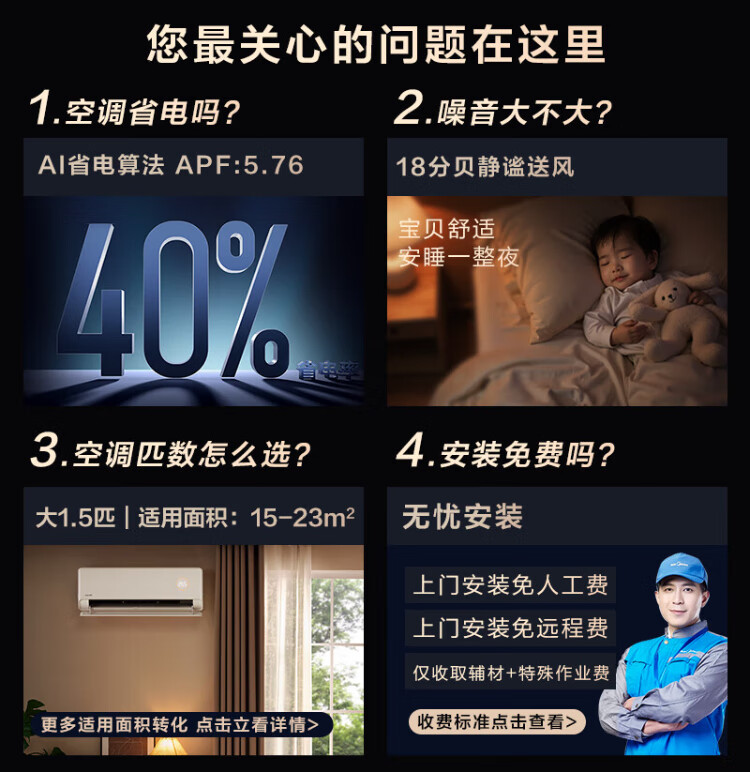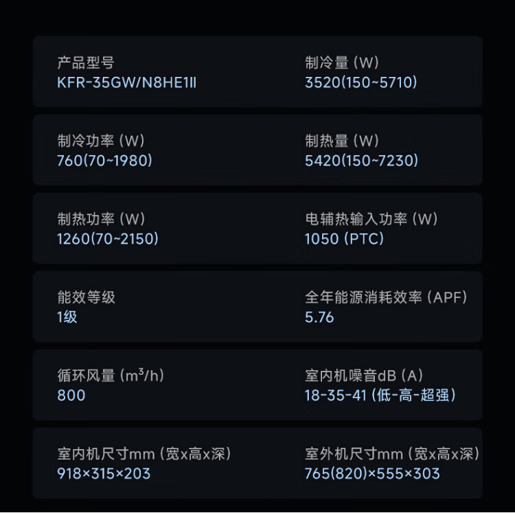 Hualing air conditioner, 1.5 HP, large air outlet, double-row god machine second generation comfortable air, variable frequency heating and cooling, super first-class energy efficiency KFR-35GW/N8HE1, national subsidy