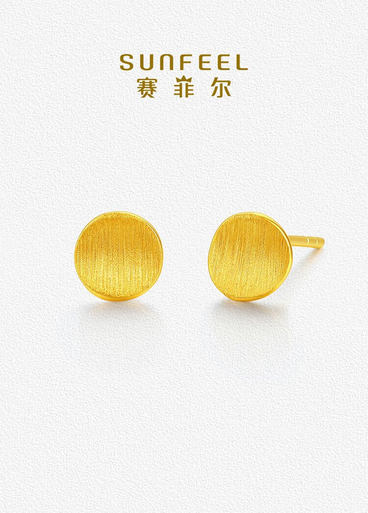 Safir birthday gift 18K gold earrings for women, fashionable polka dot brushed birthday gift for girlfriend, a pair of about 0.95 grams