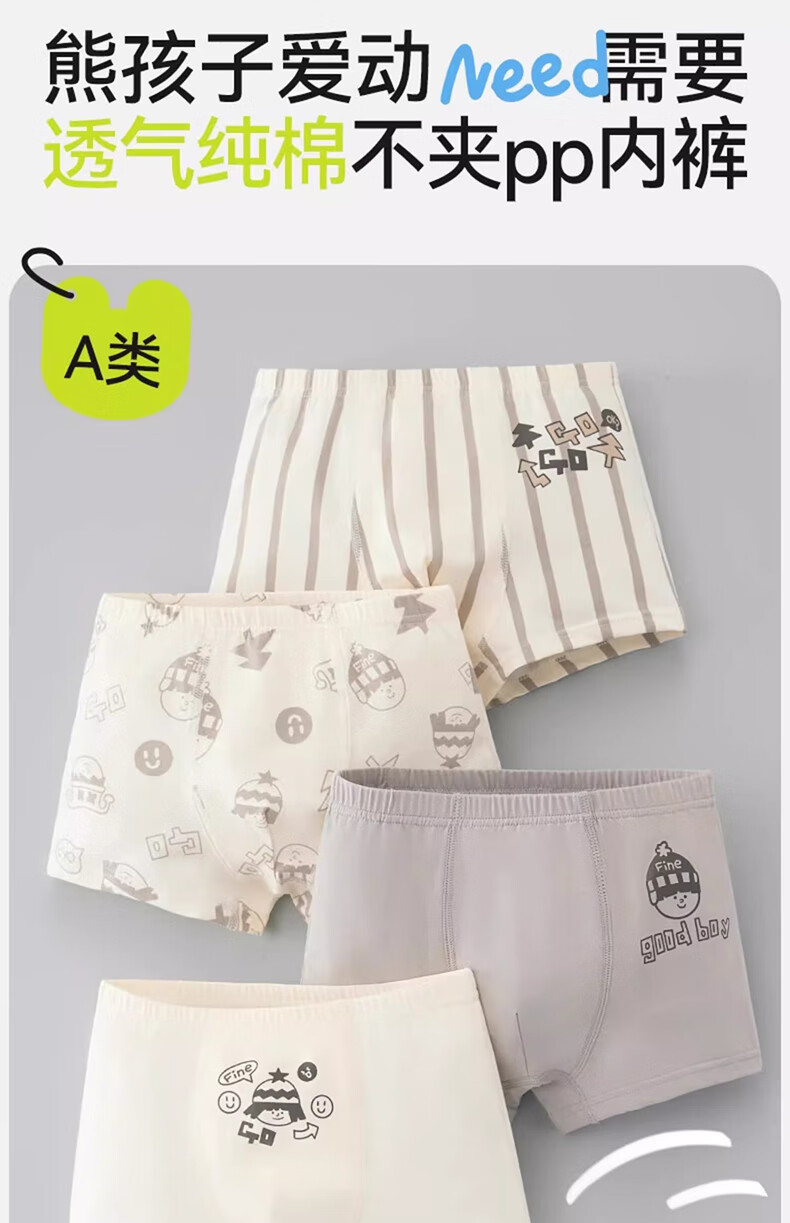 Mianqi Xiong boys' underwear autumn and winter thin 2025 new children's cotton breathable boxer 4-pack-G002-XXL