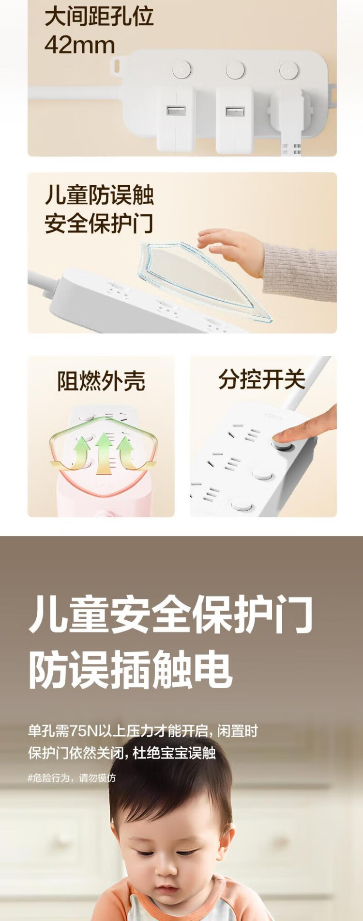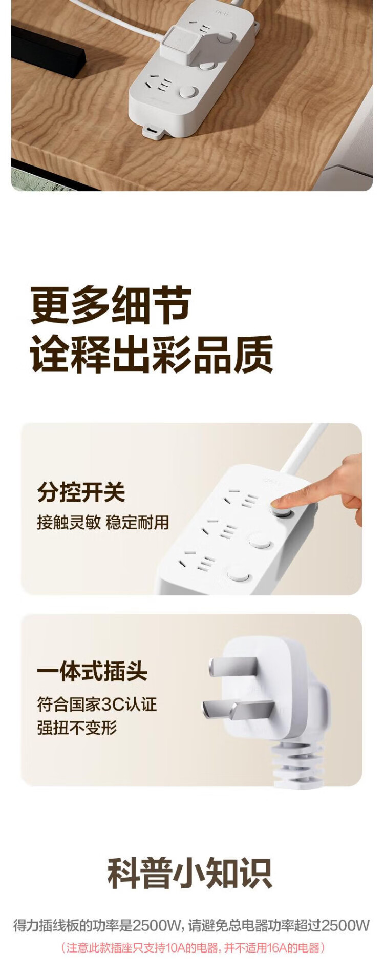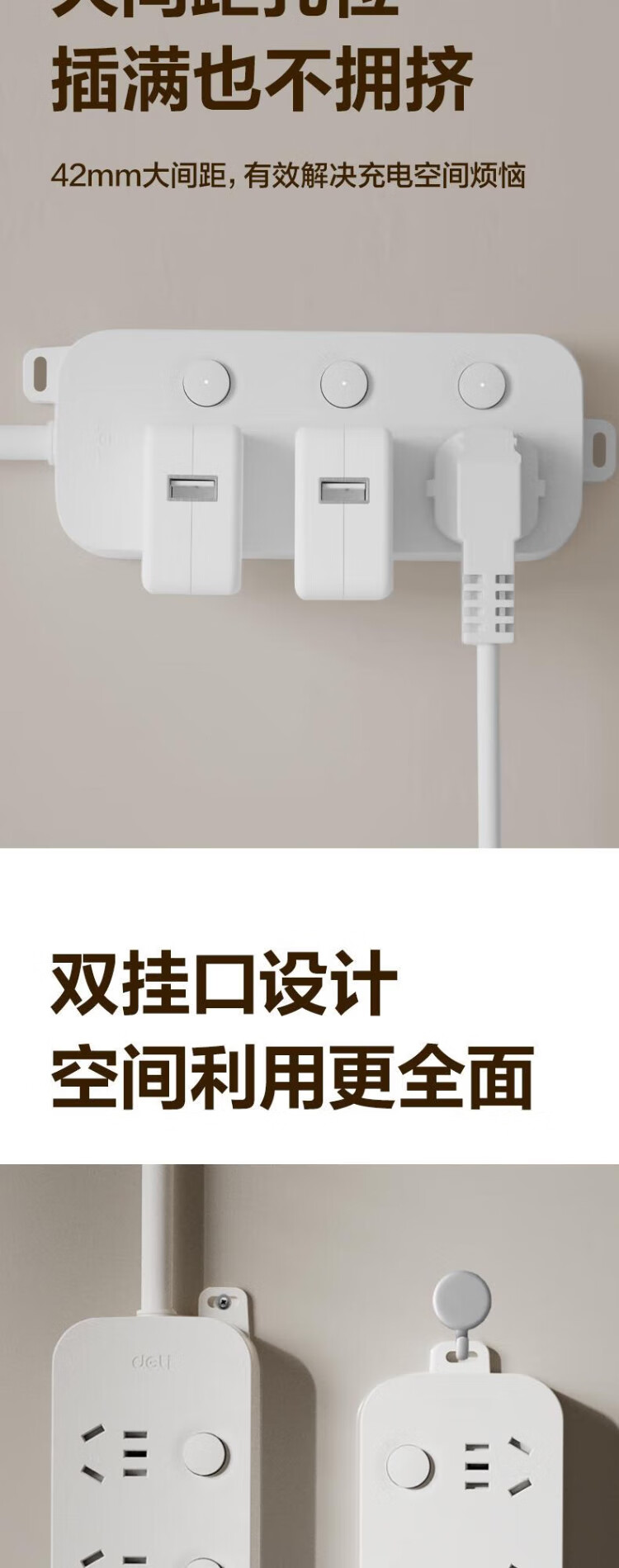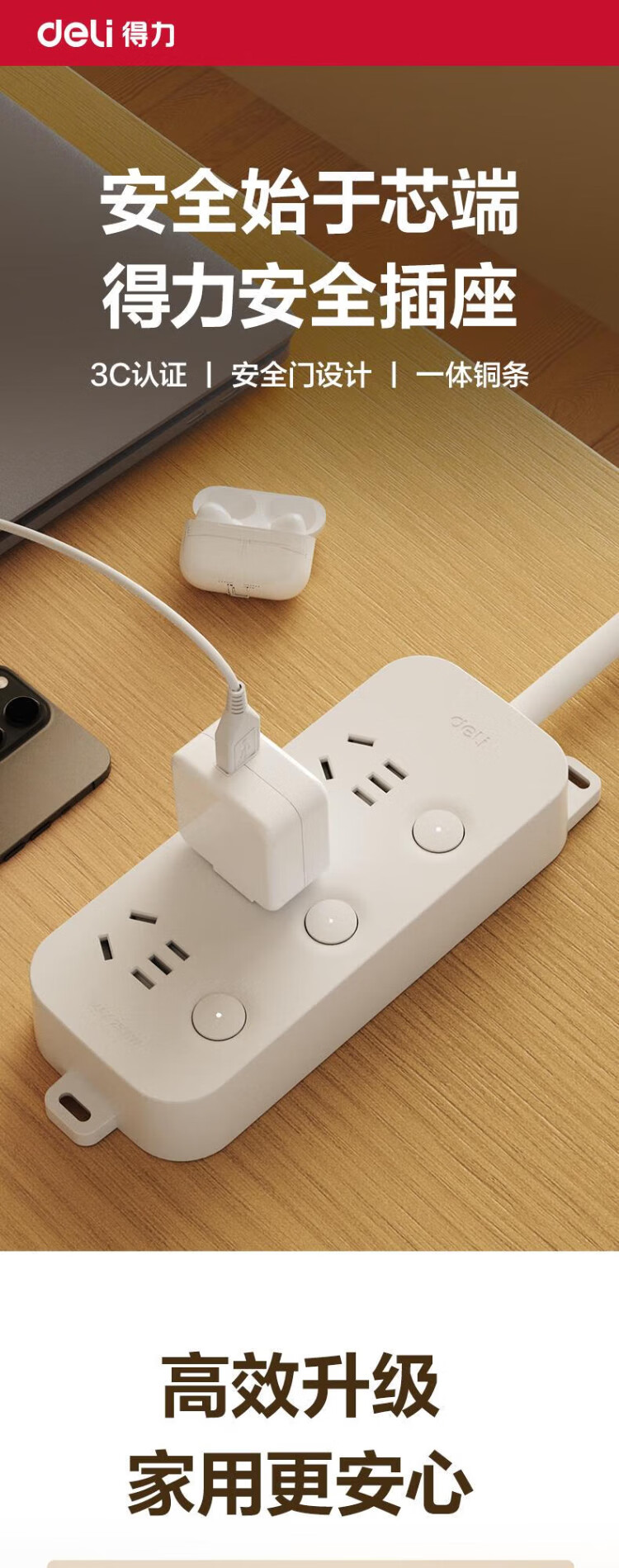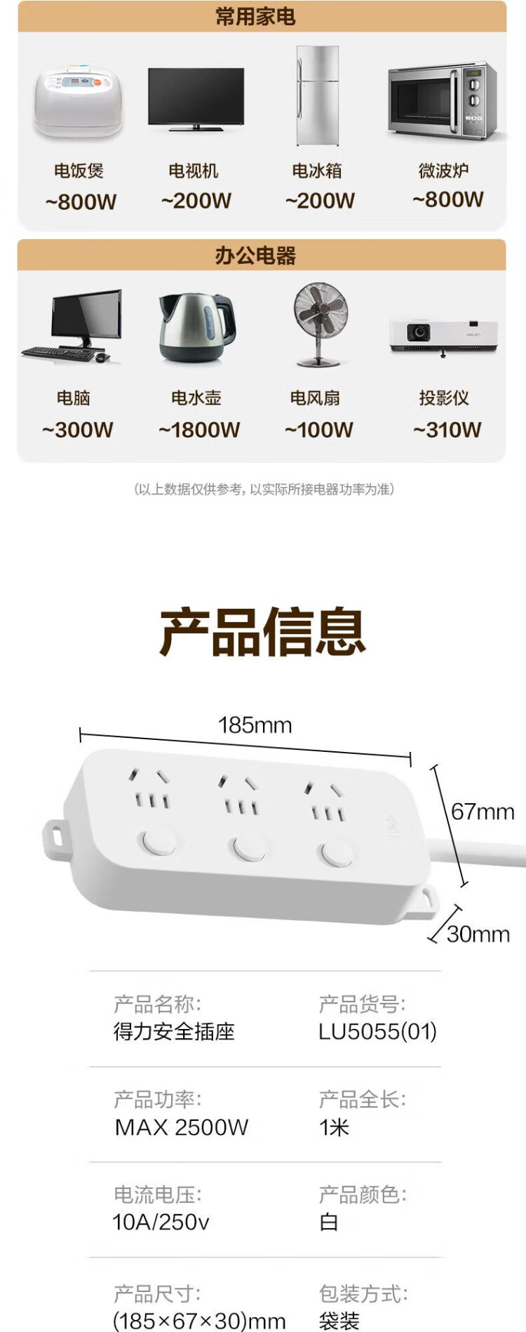 Deli (deli) 3C certified national standard safety socket plug board/socket strip/socket strip/socket board/wiring board/trailer board extension cord independent switch separate control 3 positions 1 meter LU5055