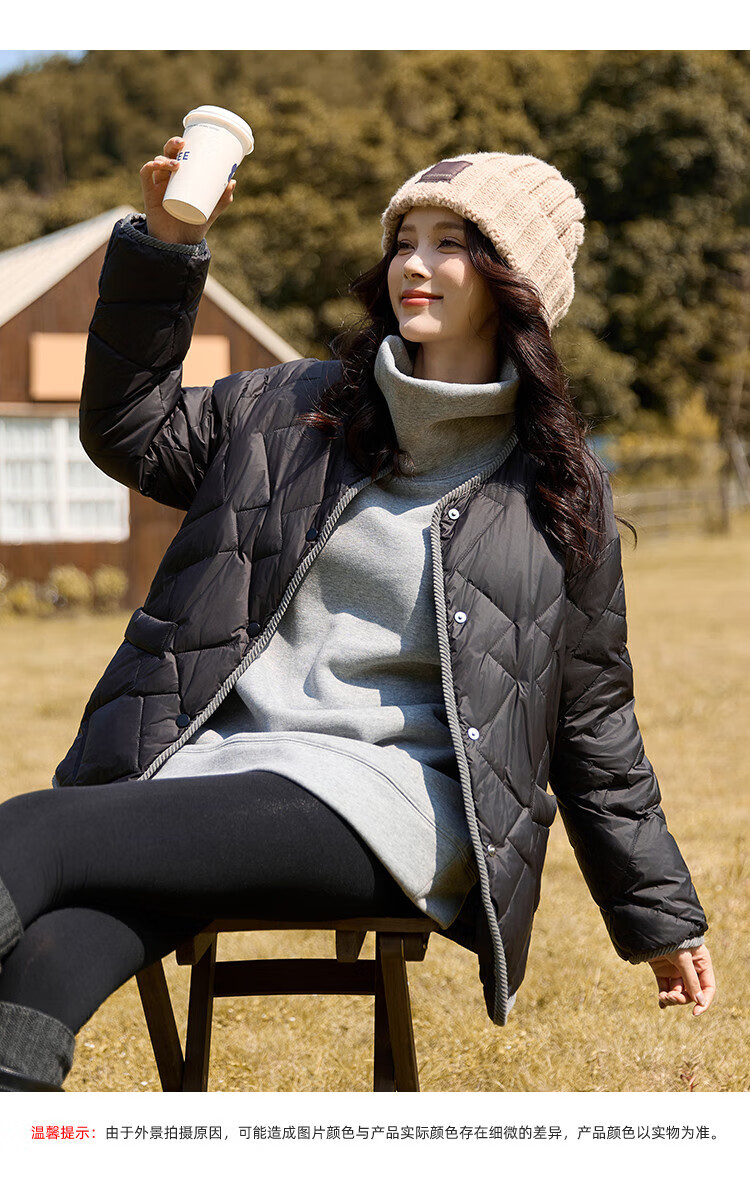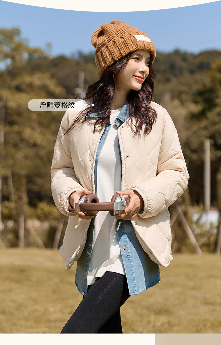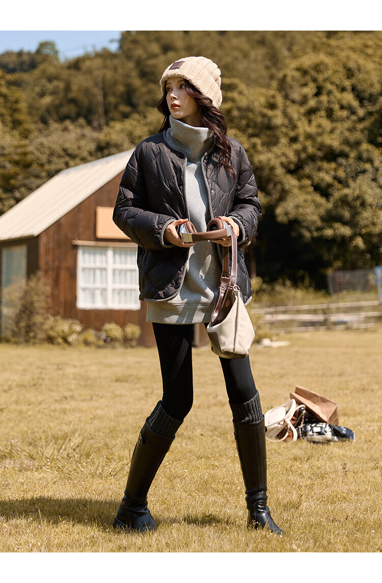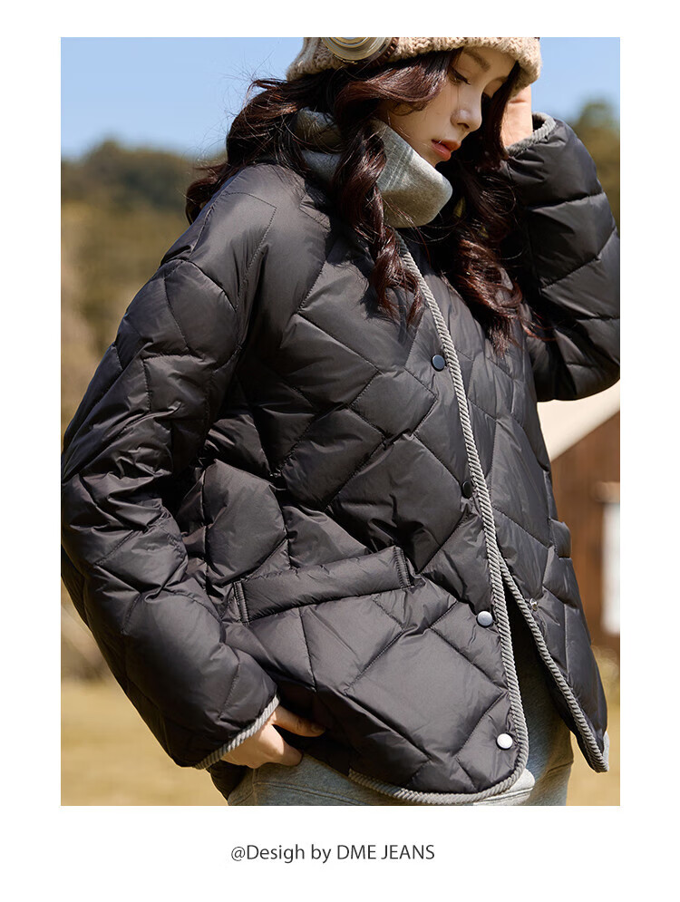 Demana 90 velvet elegant and light down winter new loose diamond pattern simple plus velvet thickened short down jacket for women