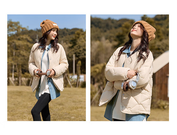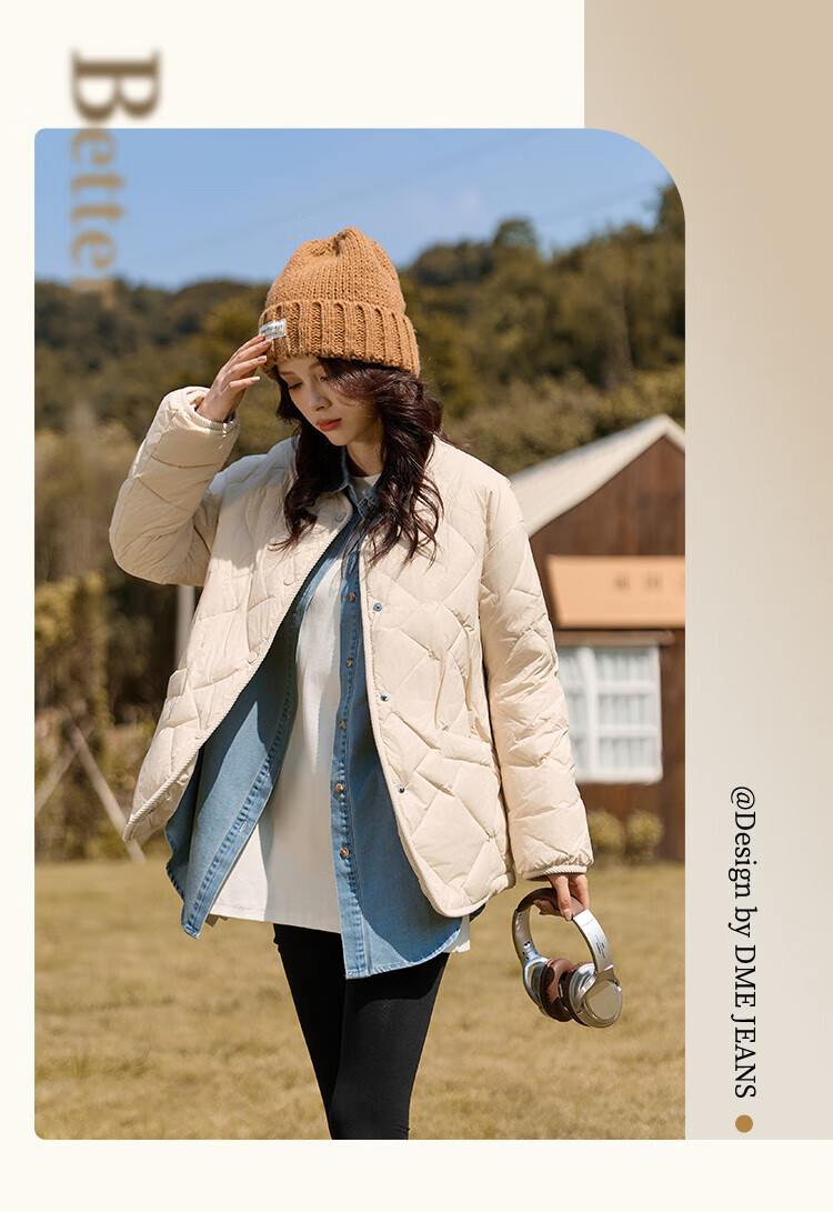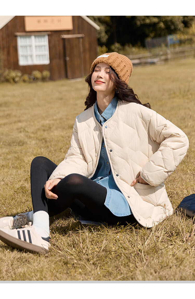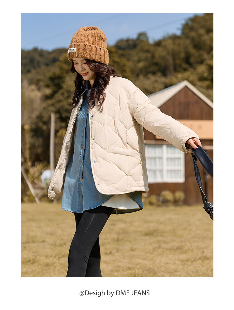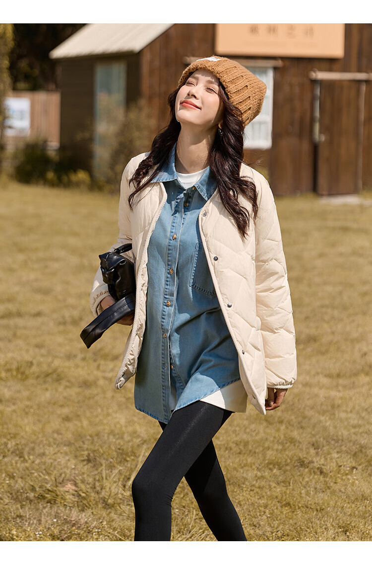 Demana 90 velvet elegant and light down winter new loose diamond pattern simple plus velvet thickened short down jacket for women