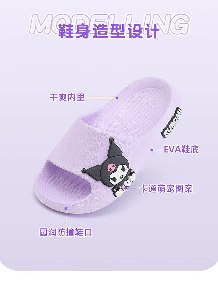 Hello Kitty children's shoes girls slippers Kuromi slip-on girls bathroom home shoes cute sandals 5862A purple 28