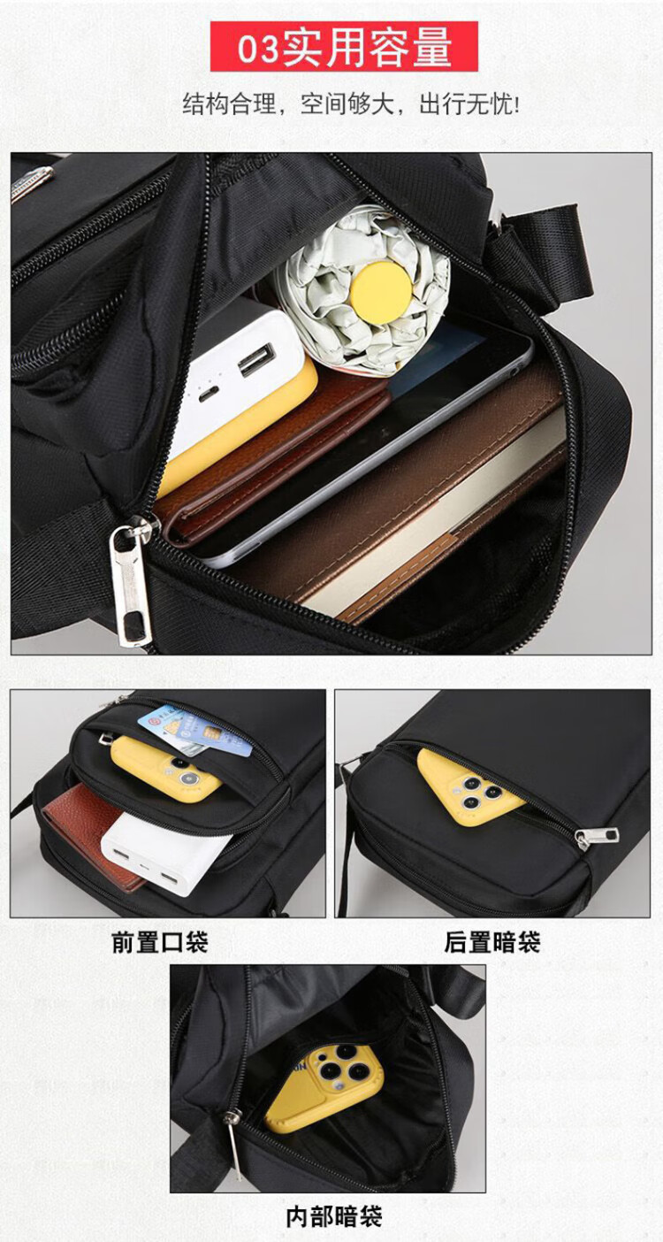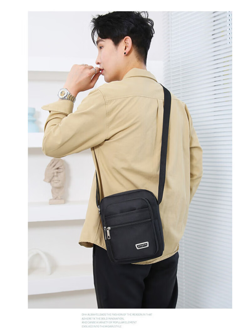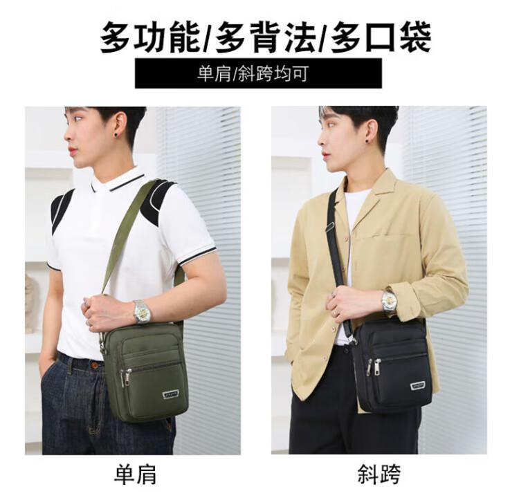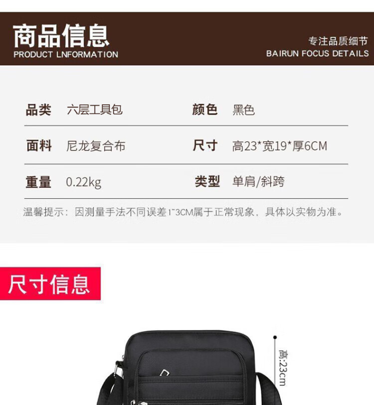 LeCali Oxford cloth shoulder bag six-layer zipper tool bag men's crossbody bag casual backpack small bag business briefcase