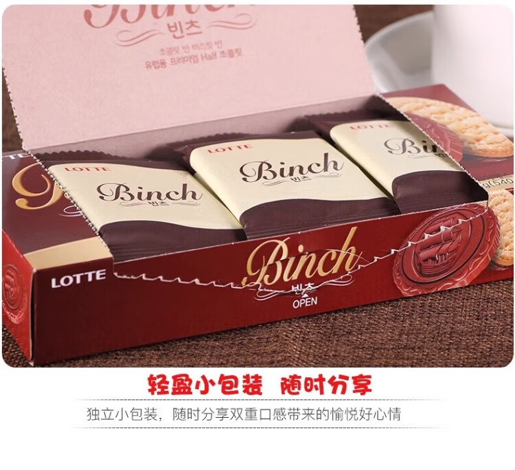 LOTTE Binchi chocolate sandwich biscuits 102g imported from South Korea independently packaged office snacks