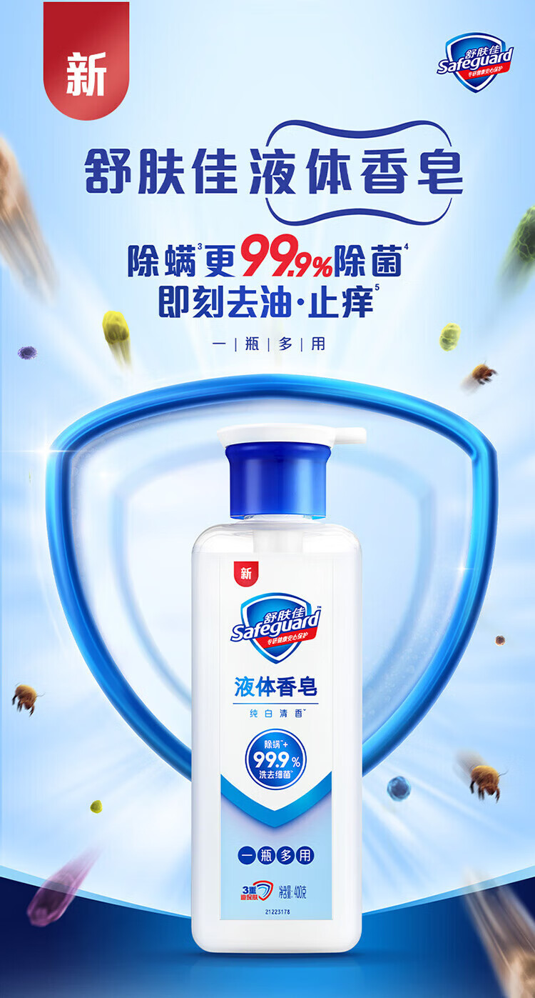 Shufujia Multifunctional Liquid Soap Pure White Fragrance 400g Removes Mites, Removes Bacteria, Removes Oil, Hands, Face, and Bath, Final Clearance