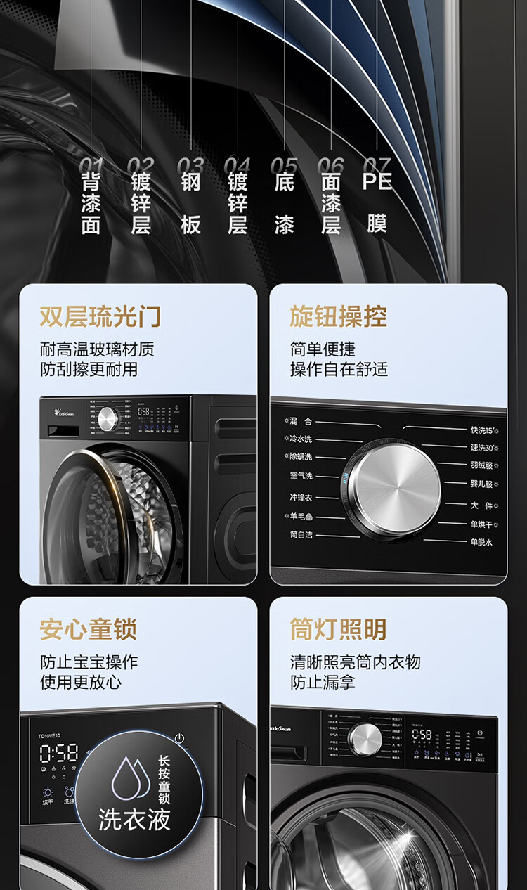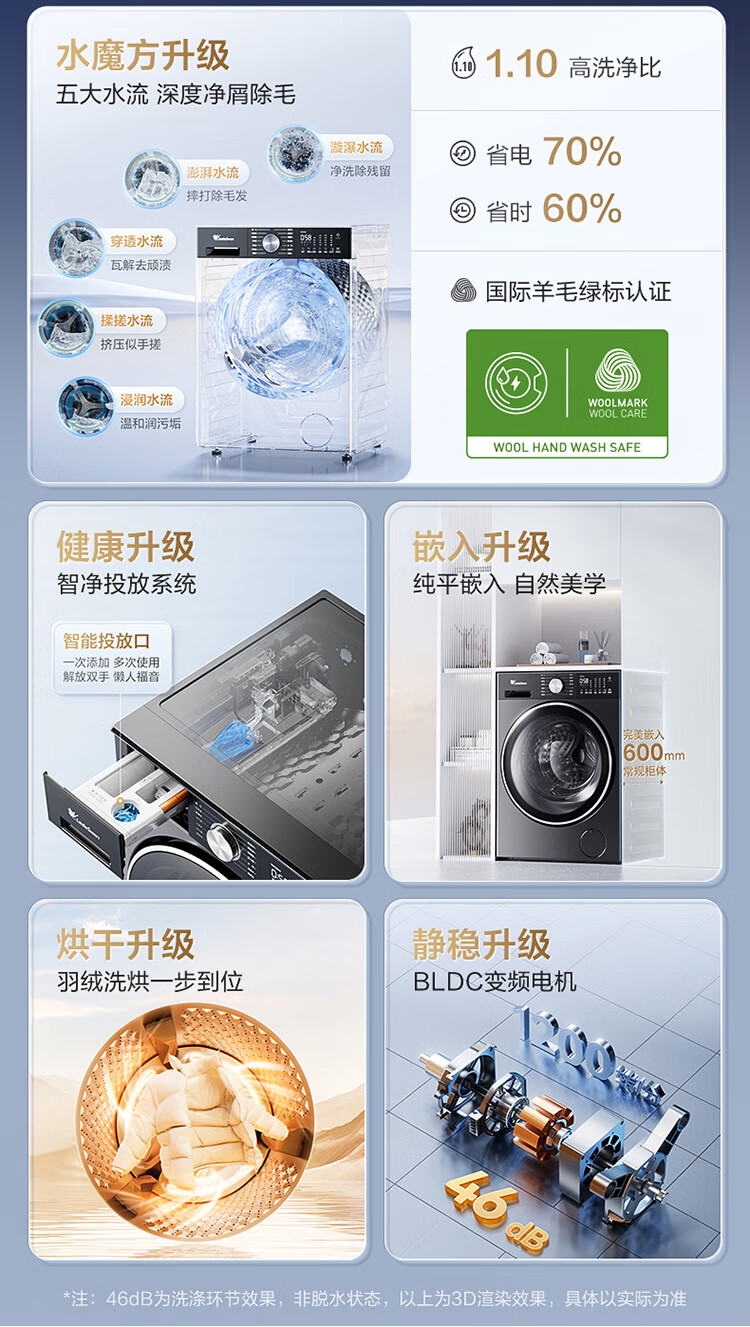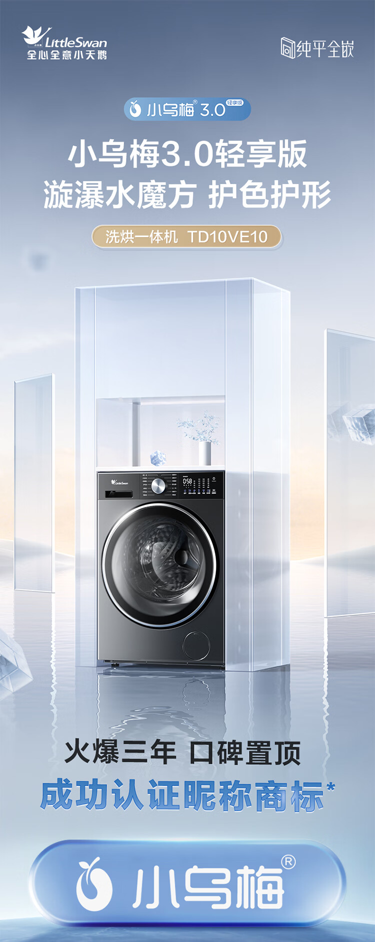 LittleSwan Xiaowumei 3.0 light version, fully automatic front-loading washing machine with dryer and washing machine, 10KG water cube, ultra-thin TD10VE10, trade-in, national subsidy