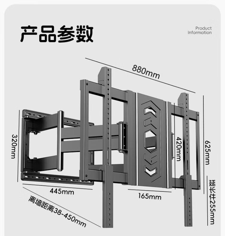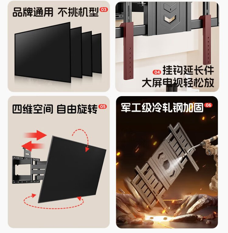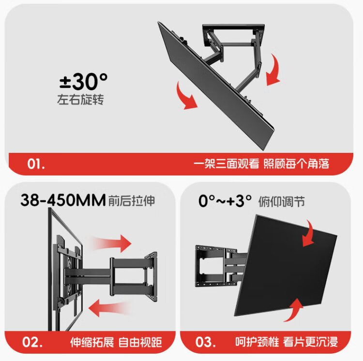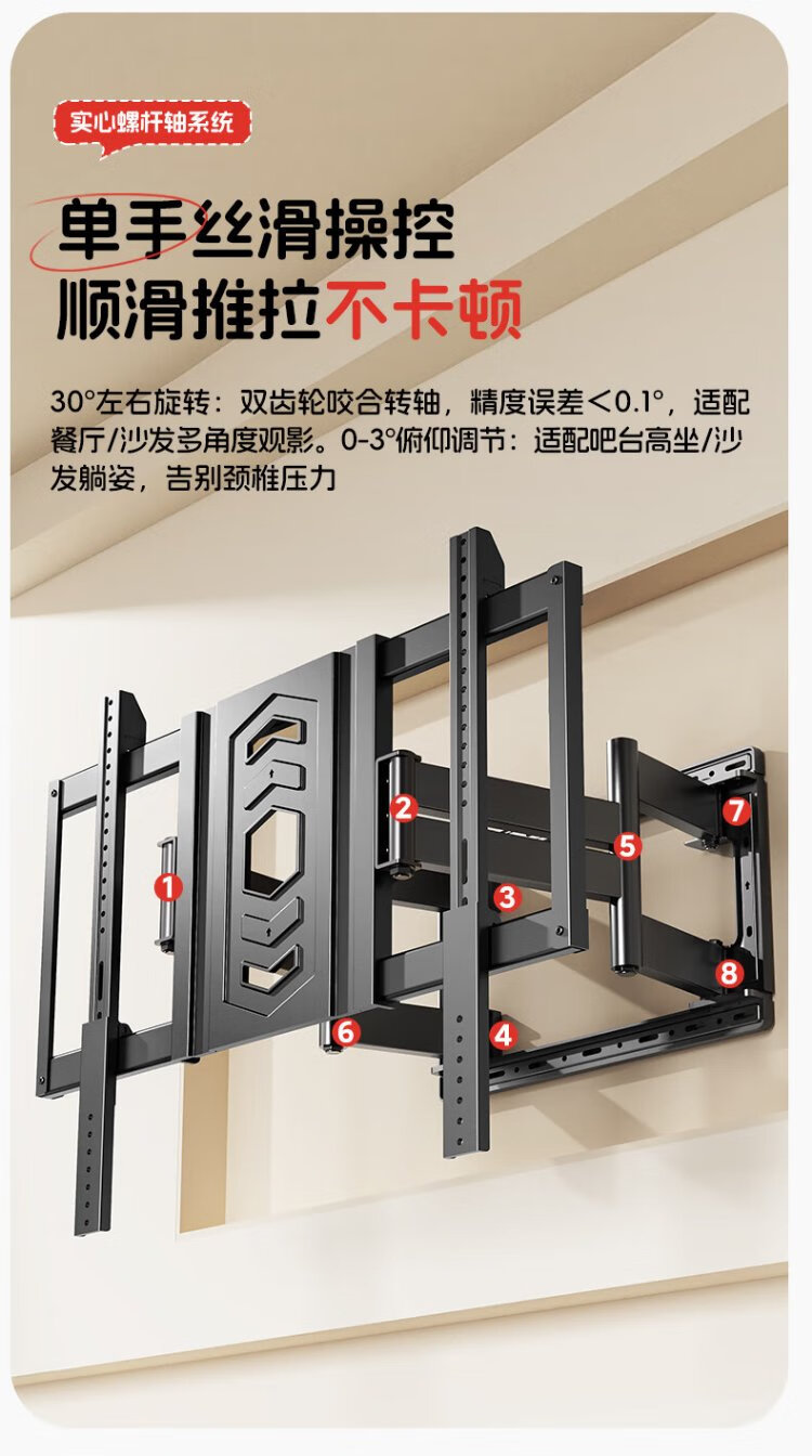 Behind the Scenes Hero 50-100-inch Universal TV Stand Telescopic Rotating Hanger Eight Arms Built-in Ultra-Thin TV Stand Folding Wall Mount Wall Stand Suitable for Hisense TCL Sony Huawei, etc.