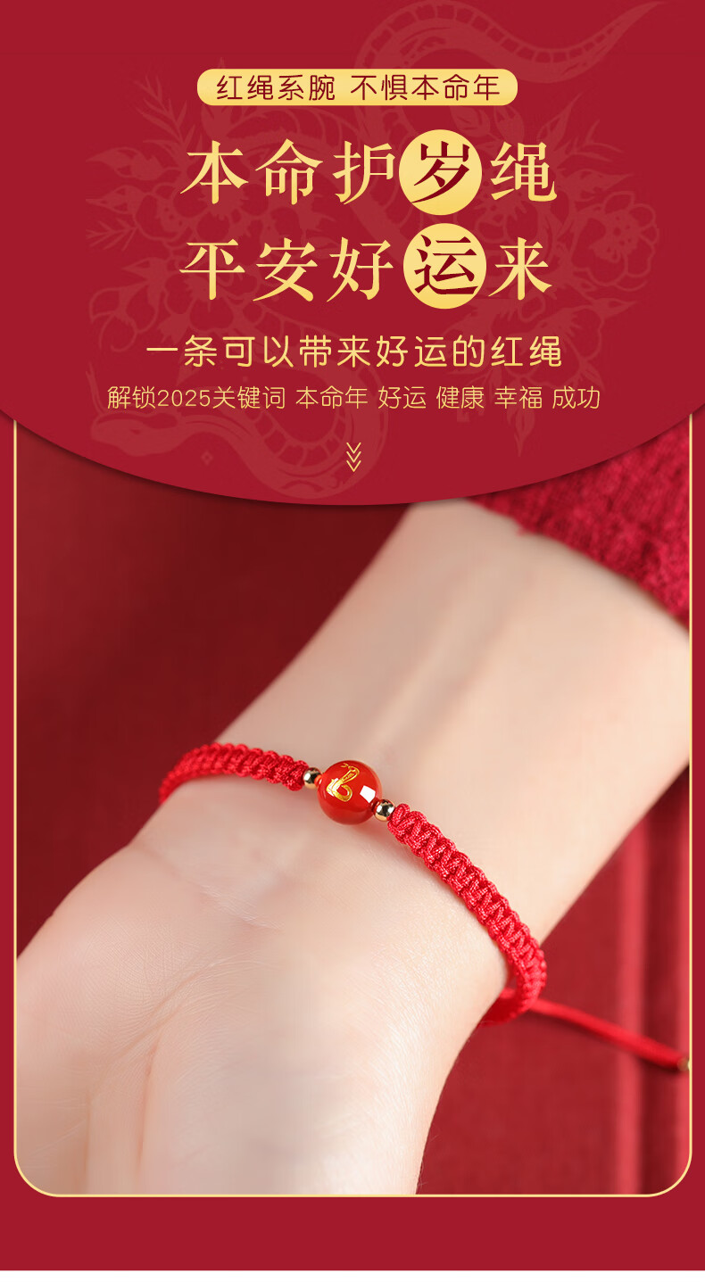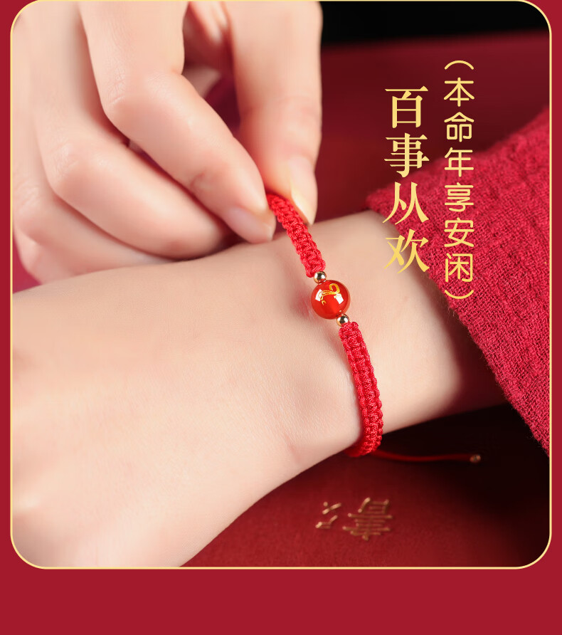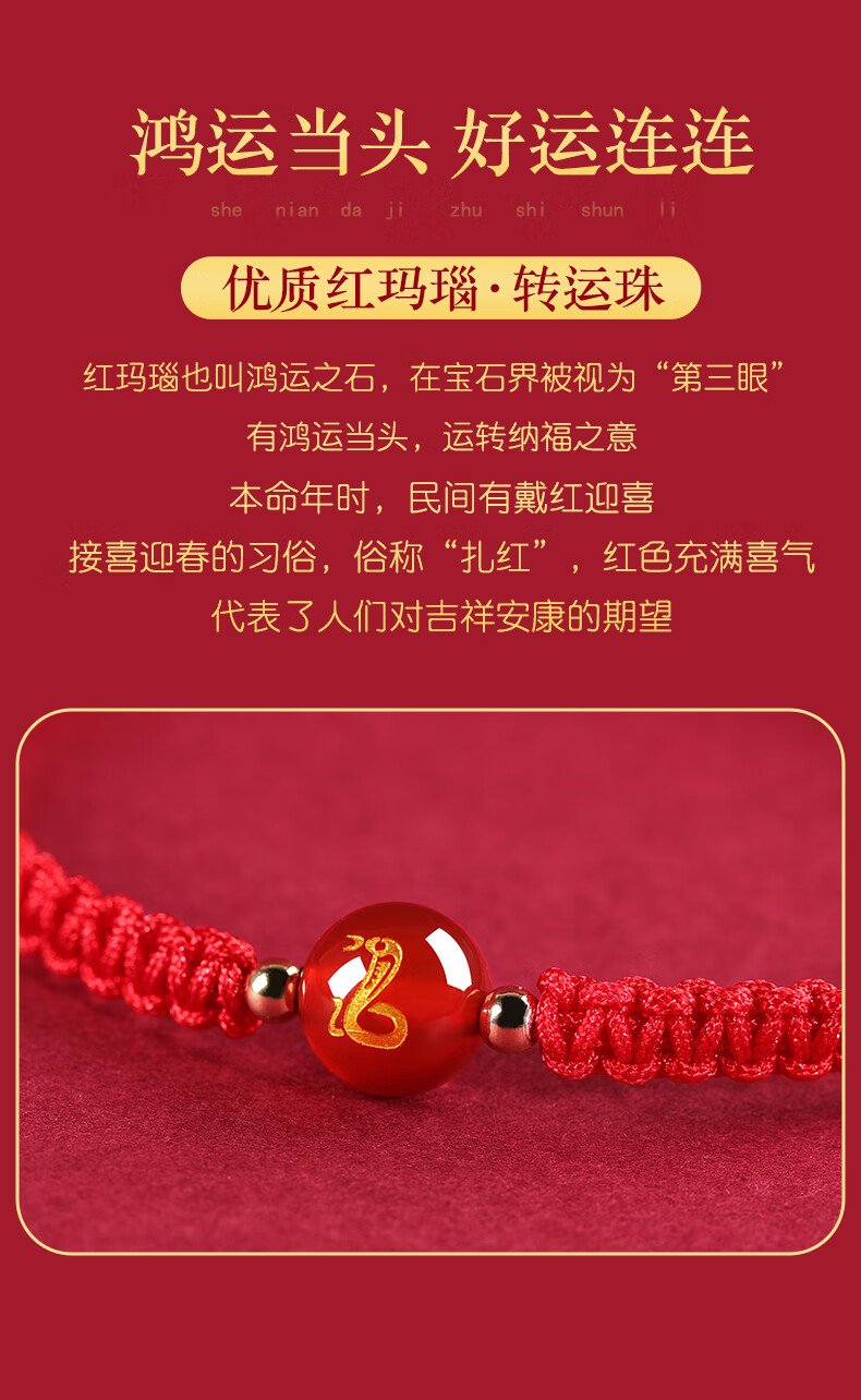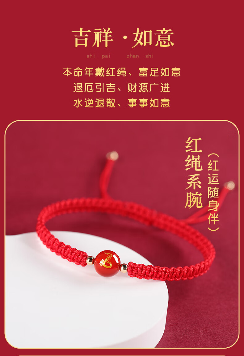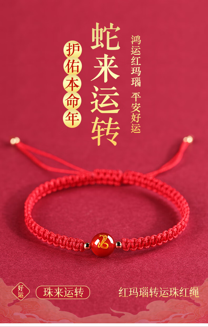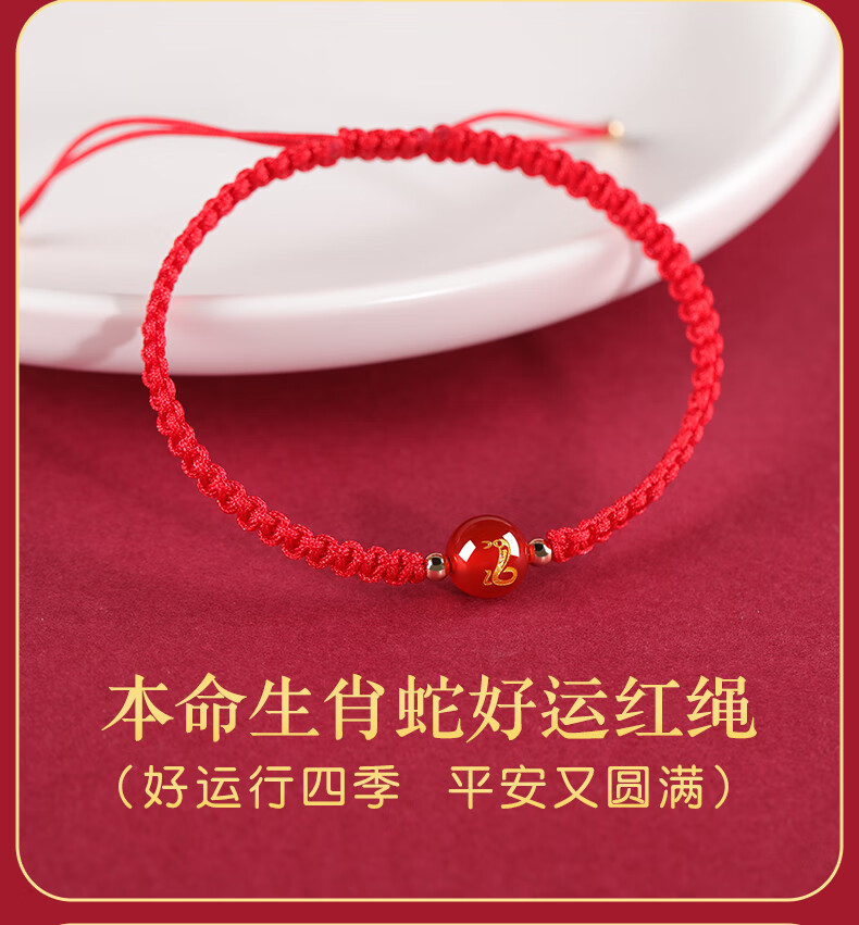 Gold Stone Spirit Red Agate Bracelet Amulet Zodiac Snake Transport Red Rope Bracelet Couple Bracelet Zodiac Year Snake Year Men and Women 2025