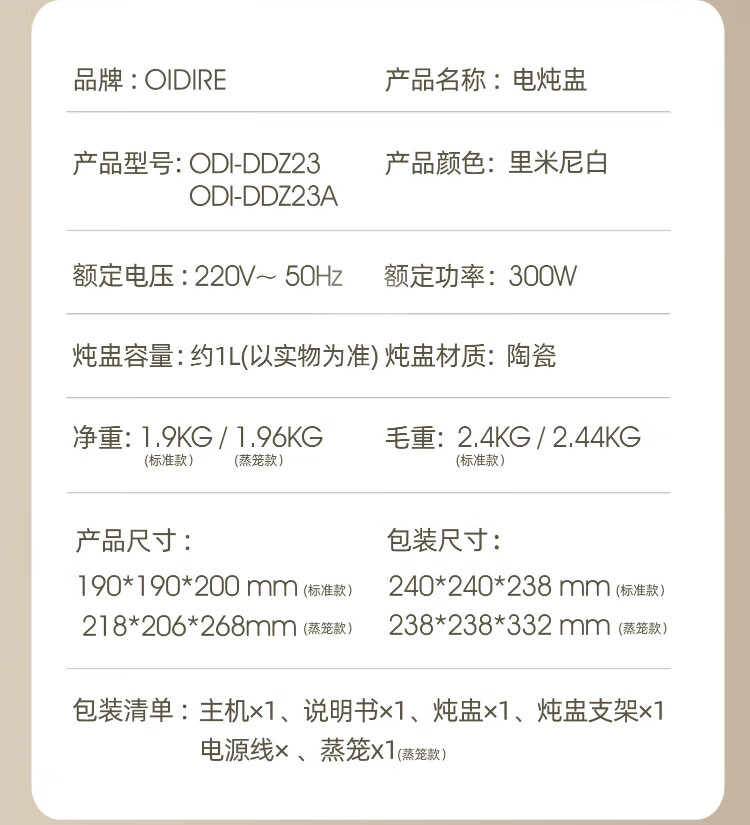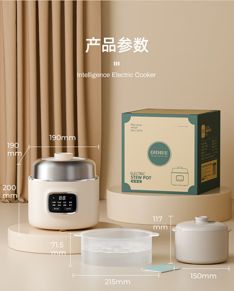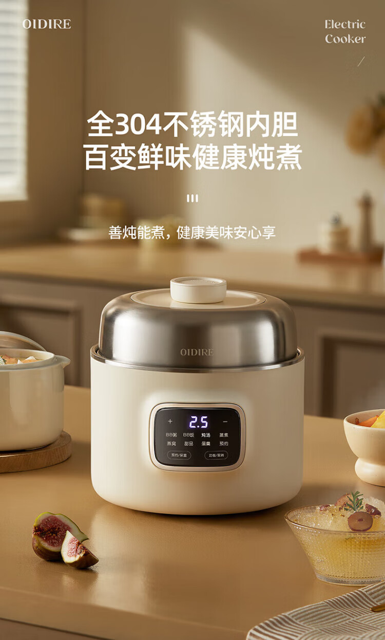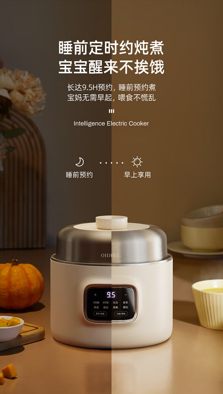 OIDIRE (Odd) electric stew pot, electric stew pot, water-proof stew pot, soup pot, health pot, fully automatic ceramic gallbladder bird's nest stew pot, supplementary food pot ODI-DDZ23A steamer style