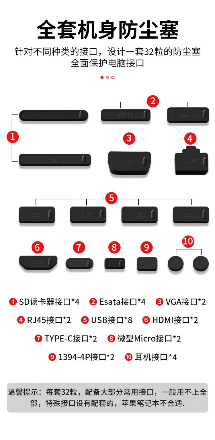 Liantuo Laptop Dust Plug USB Interface Dust Cover Apple Lenovo Dell Huawei Asus Universal Protective Cover Laptop Universal Dust Plug Transparent 32 PCs