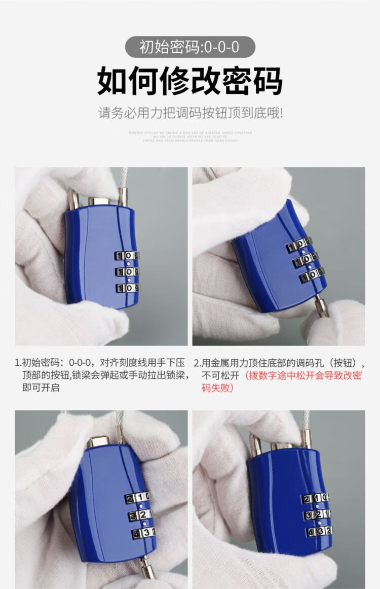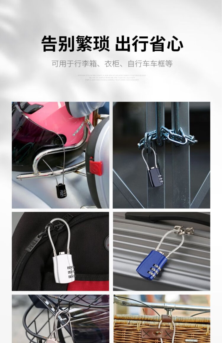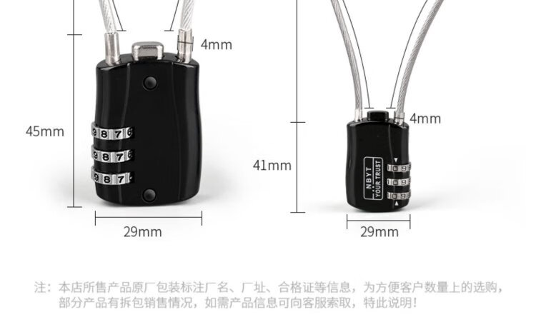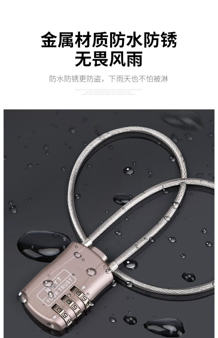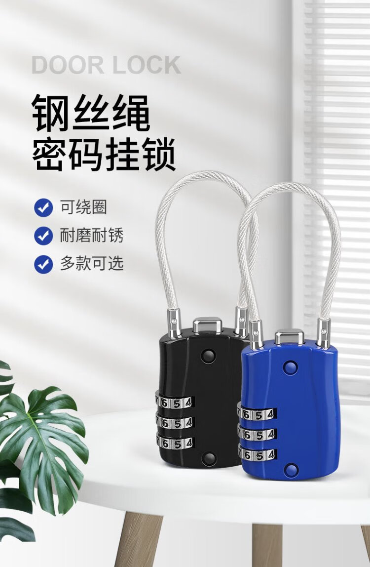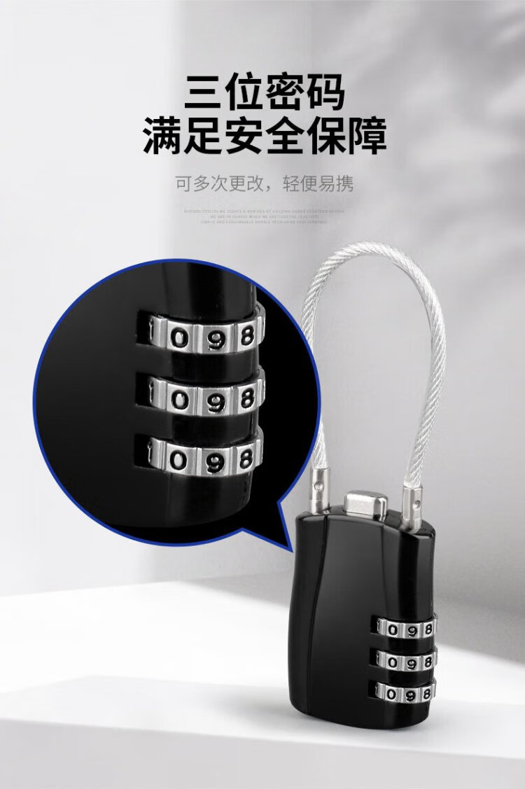Sheng Fuyong Steel Wire Code Padlock Small Suitcase Outdoor Car Basket Waterproof Rope Lock Three-Digit Code Black CW748110