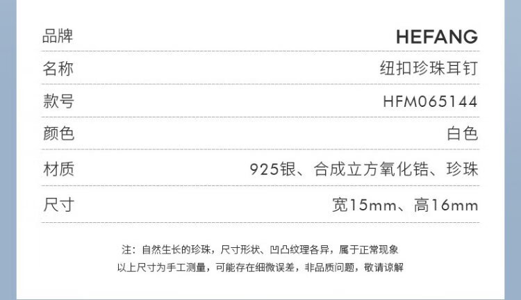 HEFANG He Fang Jewelry Button Pearl Earrings Simple Earrings Women's High-end Birthday Gift for Girlfriend