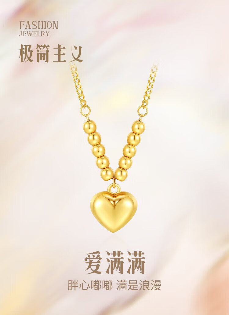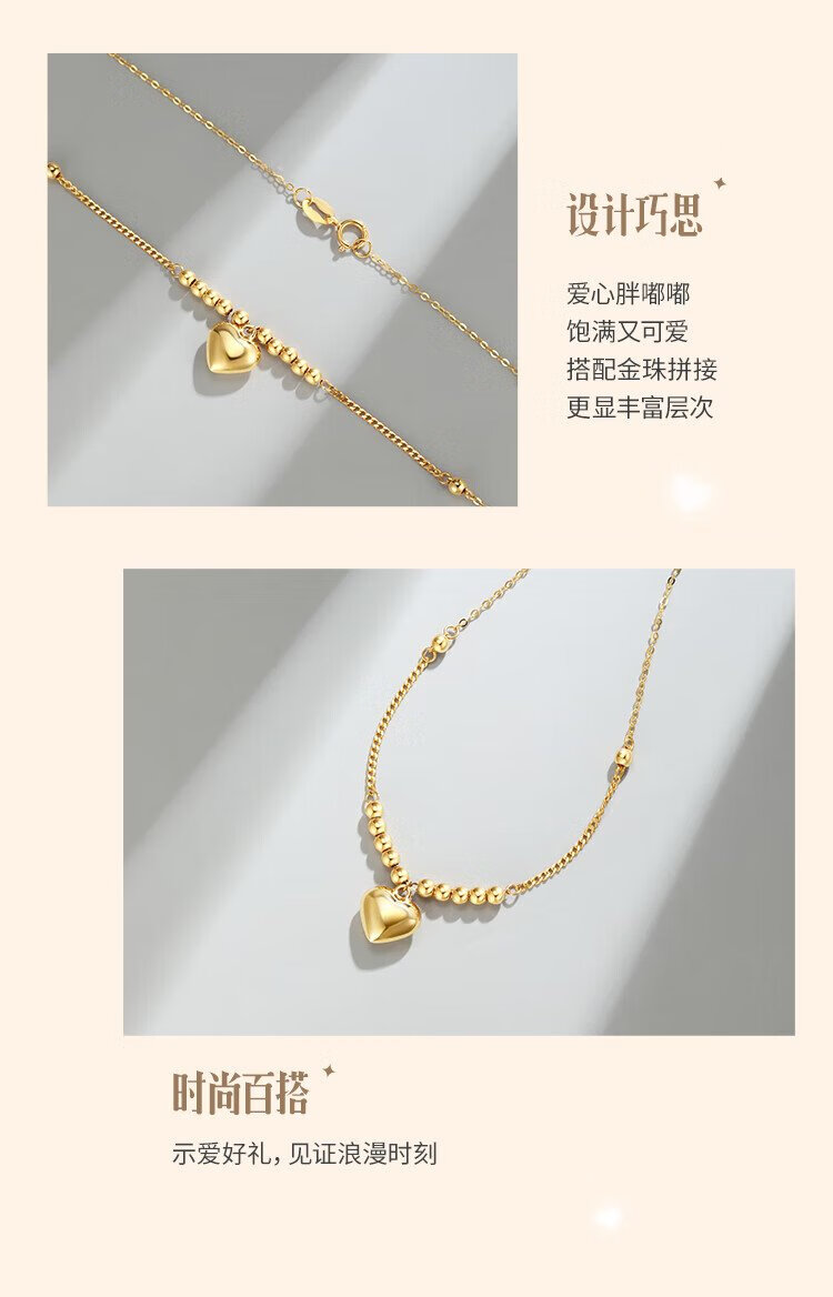 Safir birthday gift 18K gold necklace female love gold bead set chain for girlfriend birthday gift rose gift box
