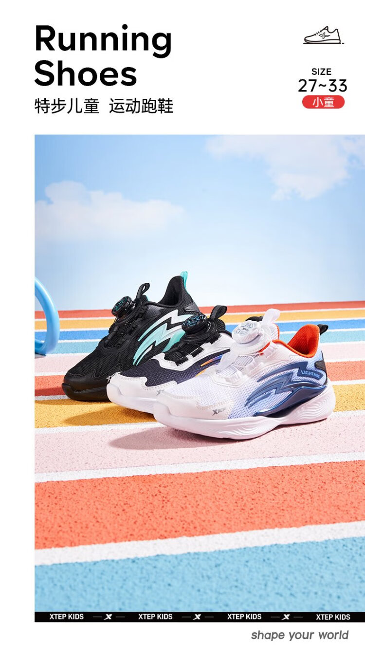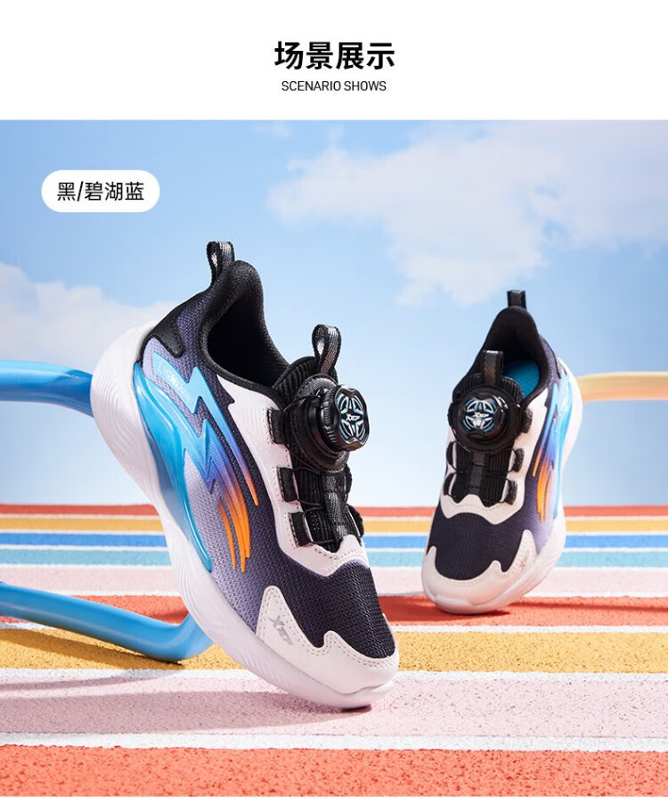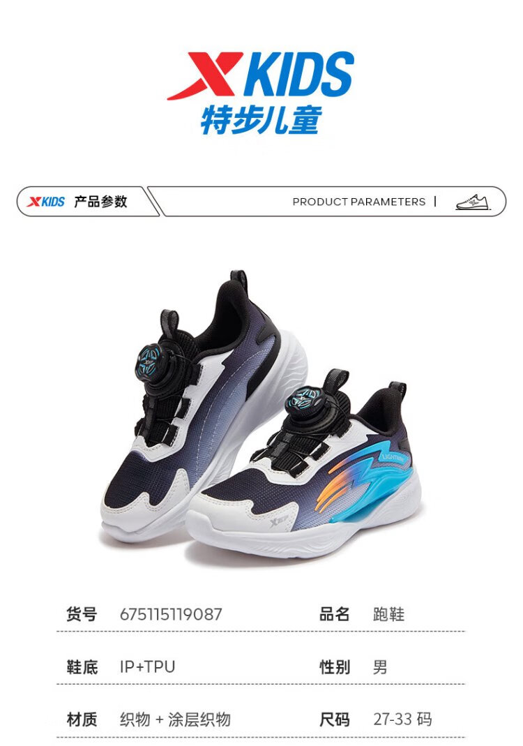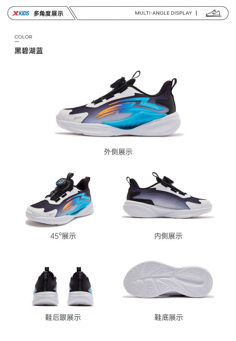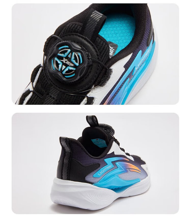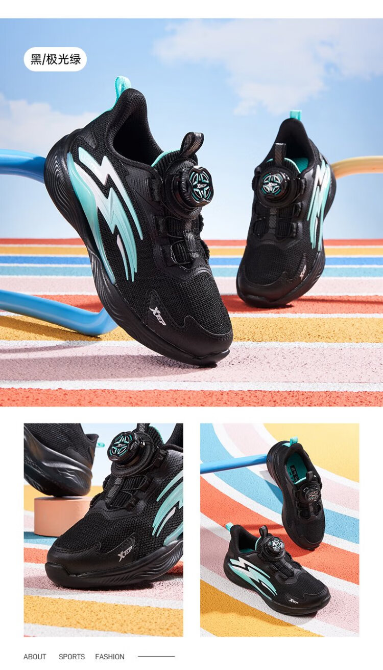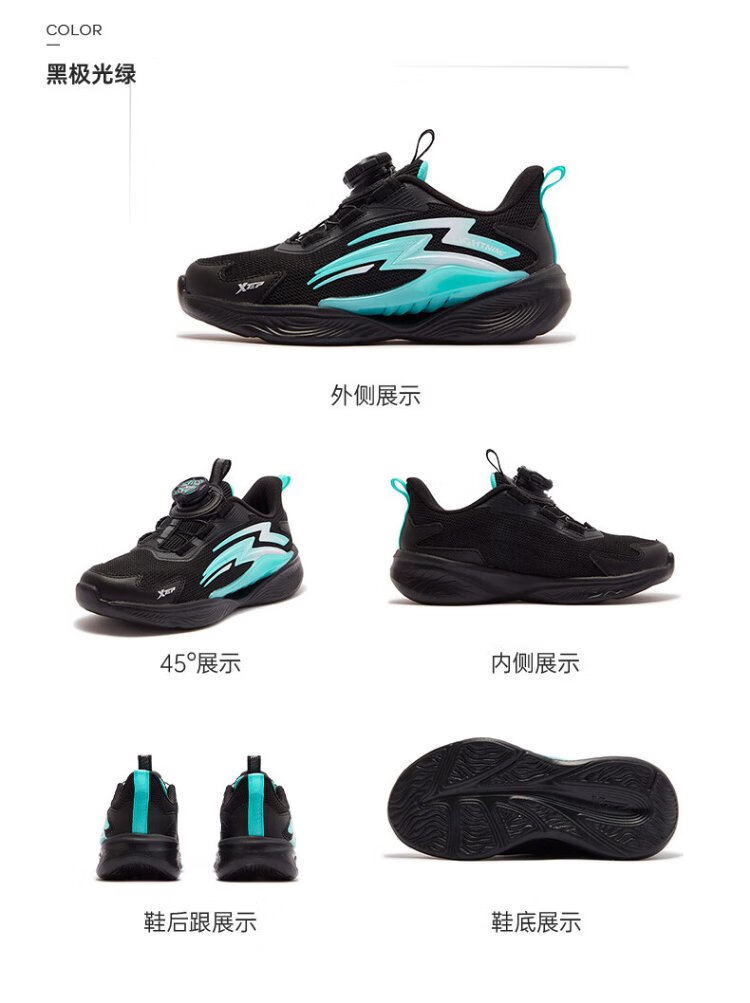 XTEP Children's Shoes for Boys and Toddlers Rotating Buckle Lightweight and Breathable Running Shoes Black/Aurora Green Size 33