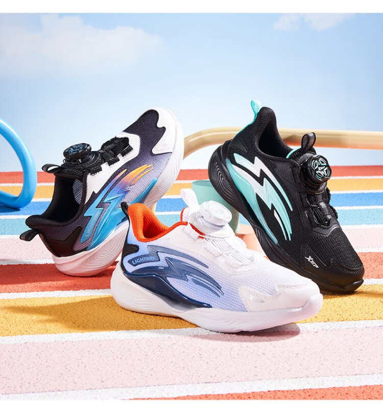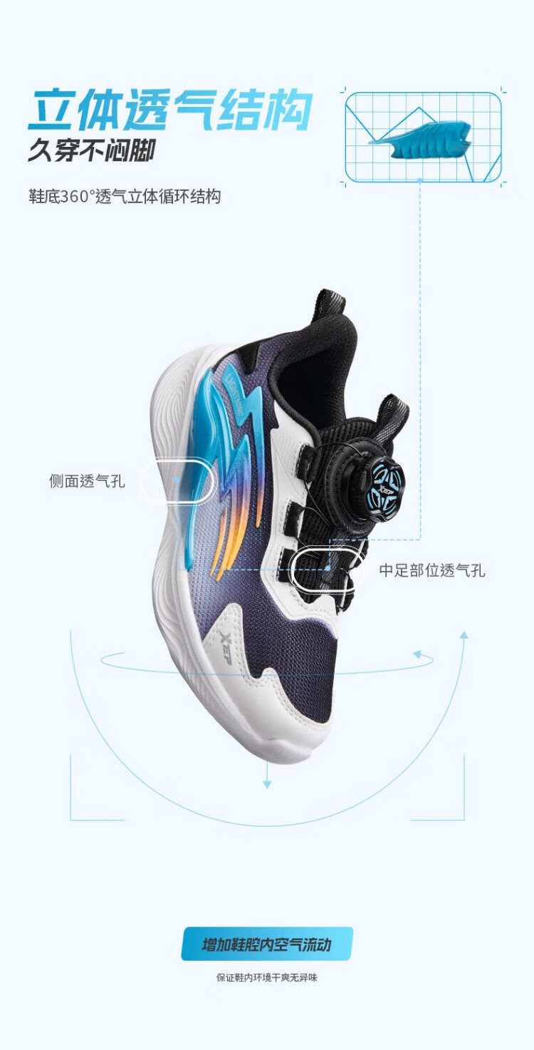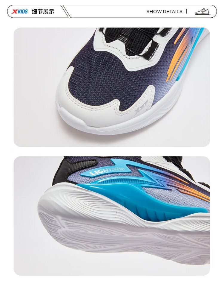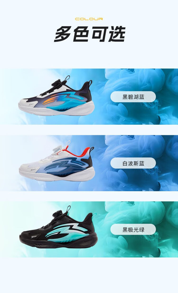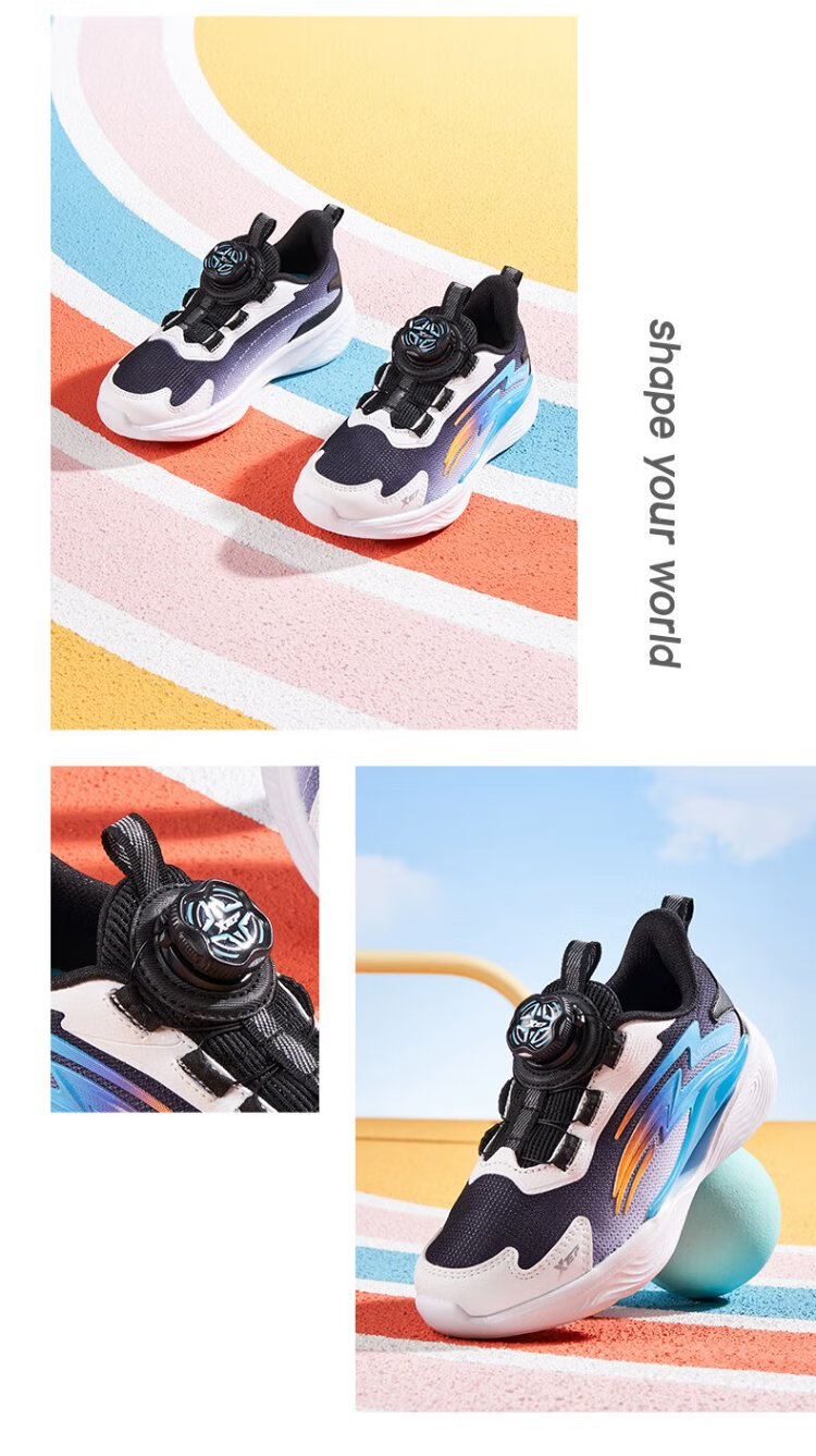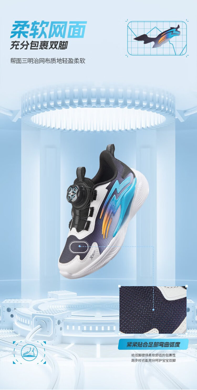 XTEP Children's Shoes for Boys and Toddlers Rotating Buckle Lightweight and Breathable Running Shoes Black/Aurora Green Size 33