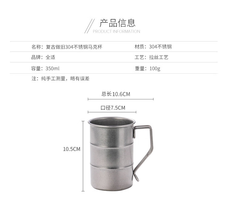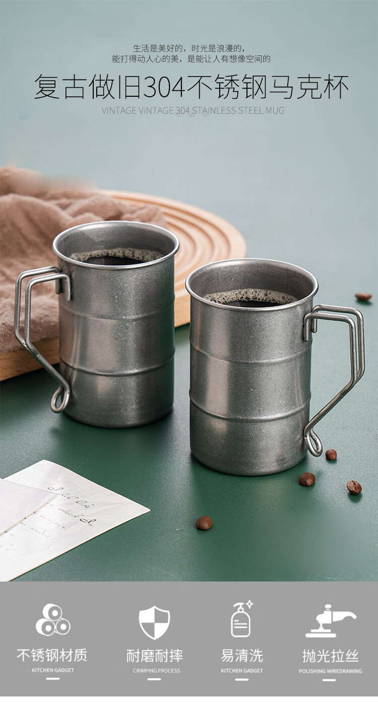 Quanshi 304 stainless steel retro beer mug direct drinking mug beverage juice cup cold water cup coffee tea cup 350ml