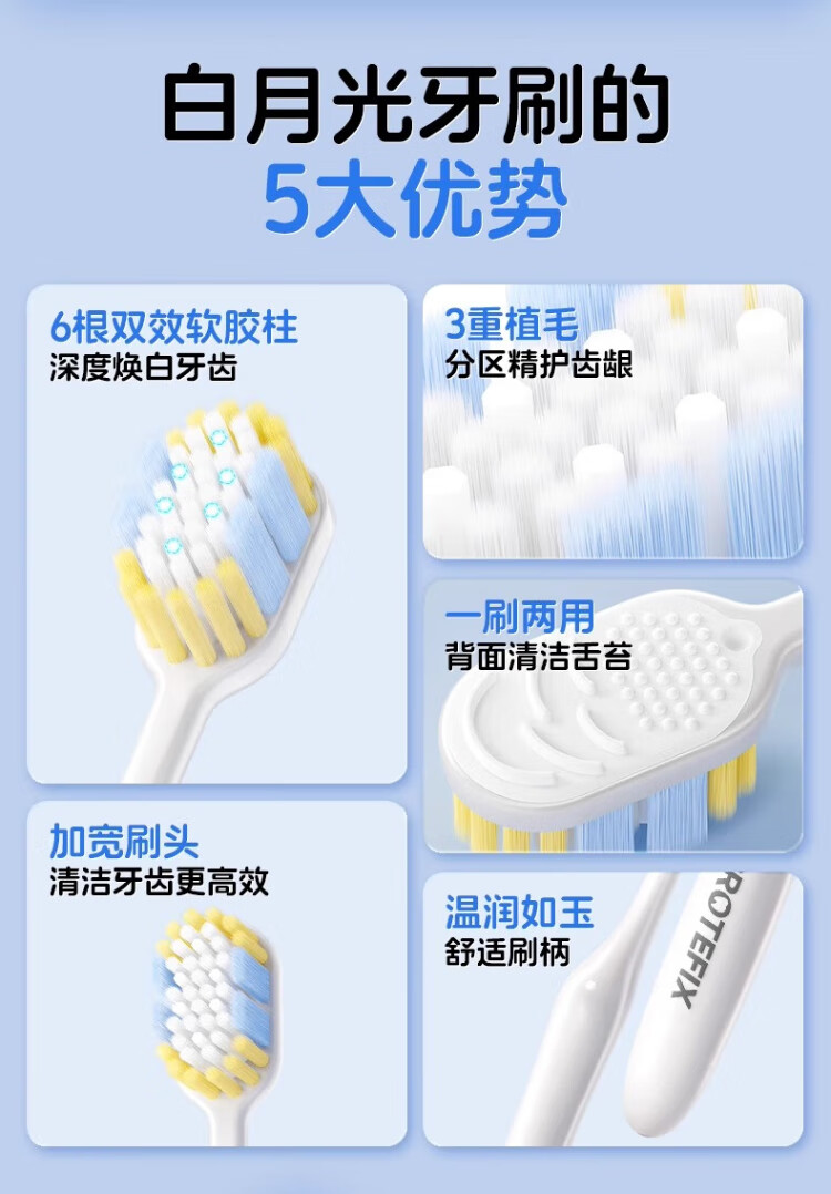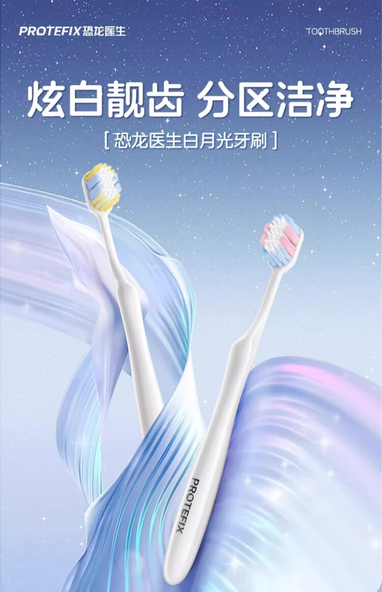 Dinosaur Doctor (PROTEFIX) Adult Toothbrush Teenagers Wide Head Partitioned Hair Transplant Dazzling White Soft Hair Filament White Moonlight Toothbrush 2 Pack