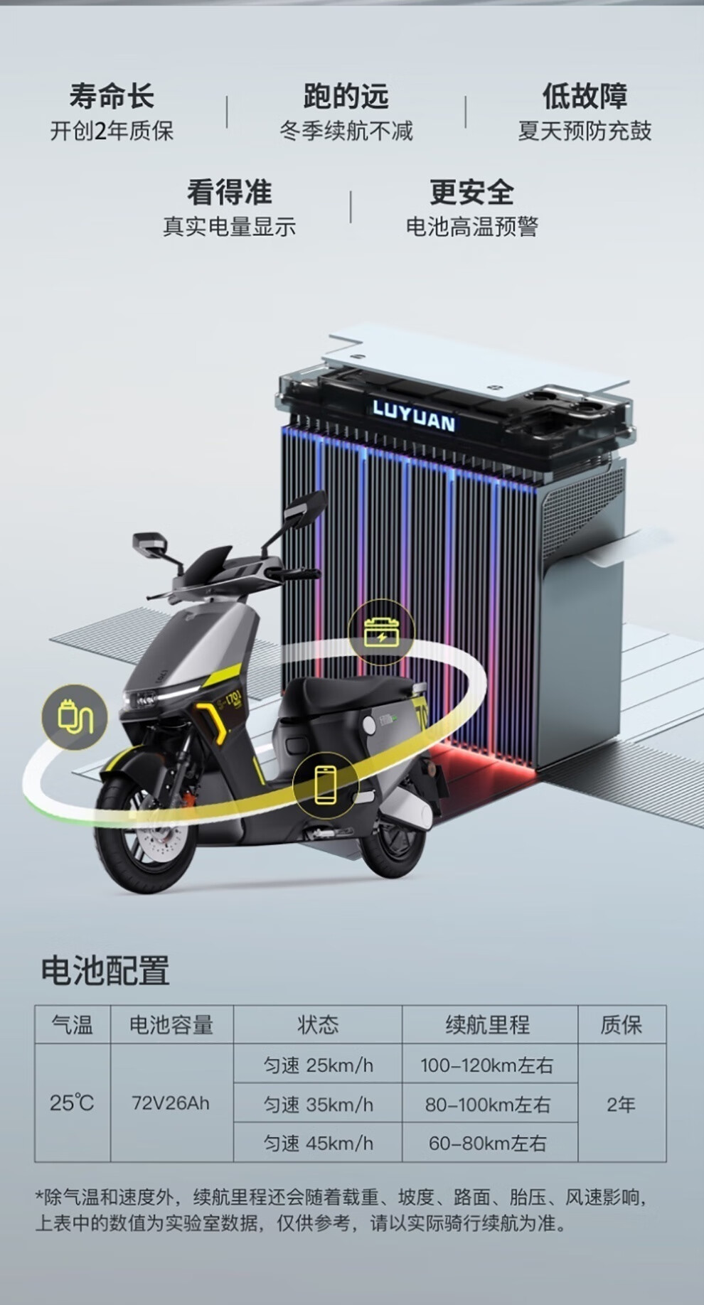 Luyuan Electric Motorcycle S70, 86 km range, 6 lead-acid batteries, 72V26Ah, 1200W motor, 30L seat bucket, household car, liquid-cooled motor, ten-year warranty, white