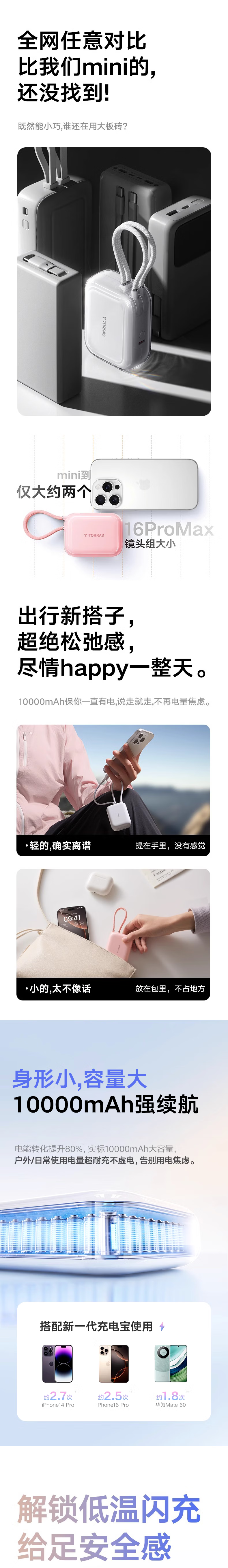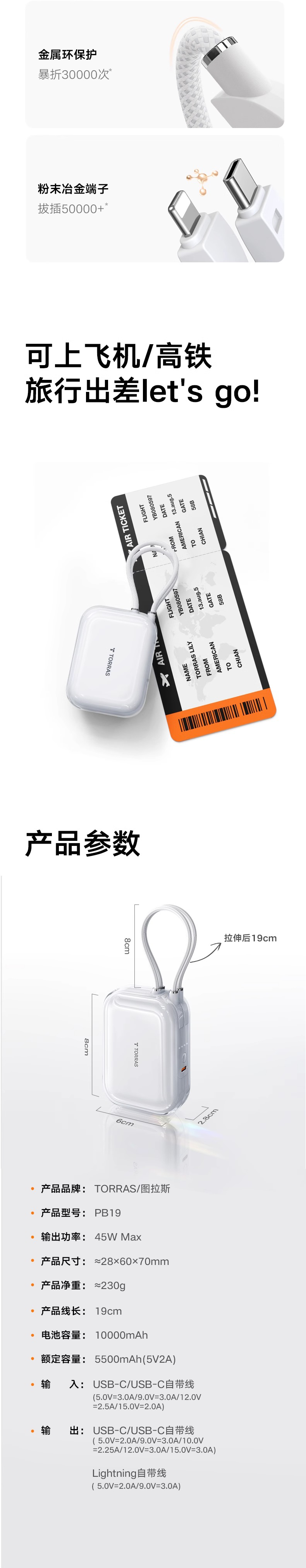 Tulas Power Bank Mini Small Cube 3C certified for boarding airplanes comes with dual-wire 45W low-temperature fast charging 10000 mAh suitable for Apple 17-6 Huawei Android mobile power supply