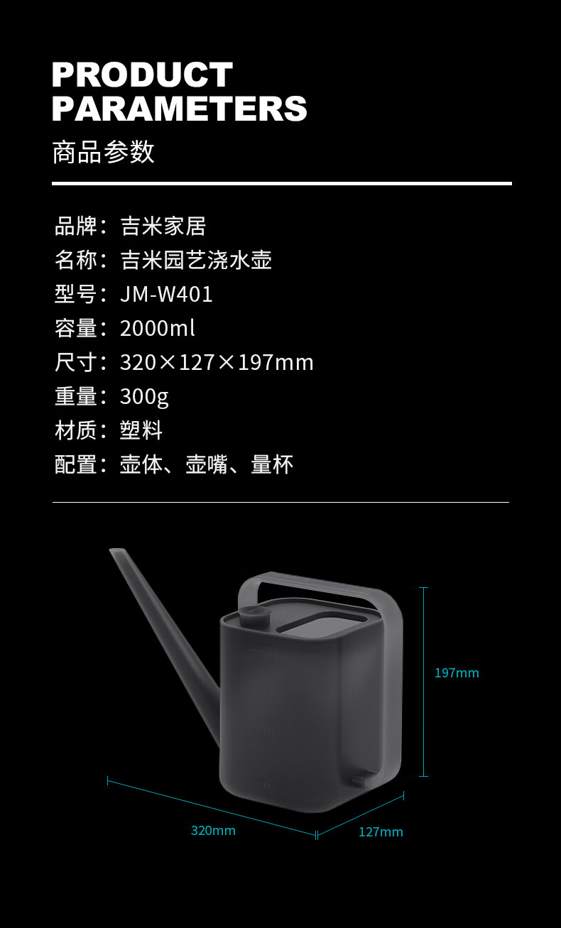 Jimmy home household long-mouth shower kettle flower watering kettle thickened plastic watering kettle gardening vegetable watering kettle flower drenching kettle JM-W401