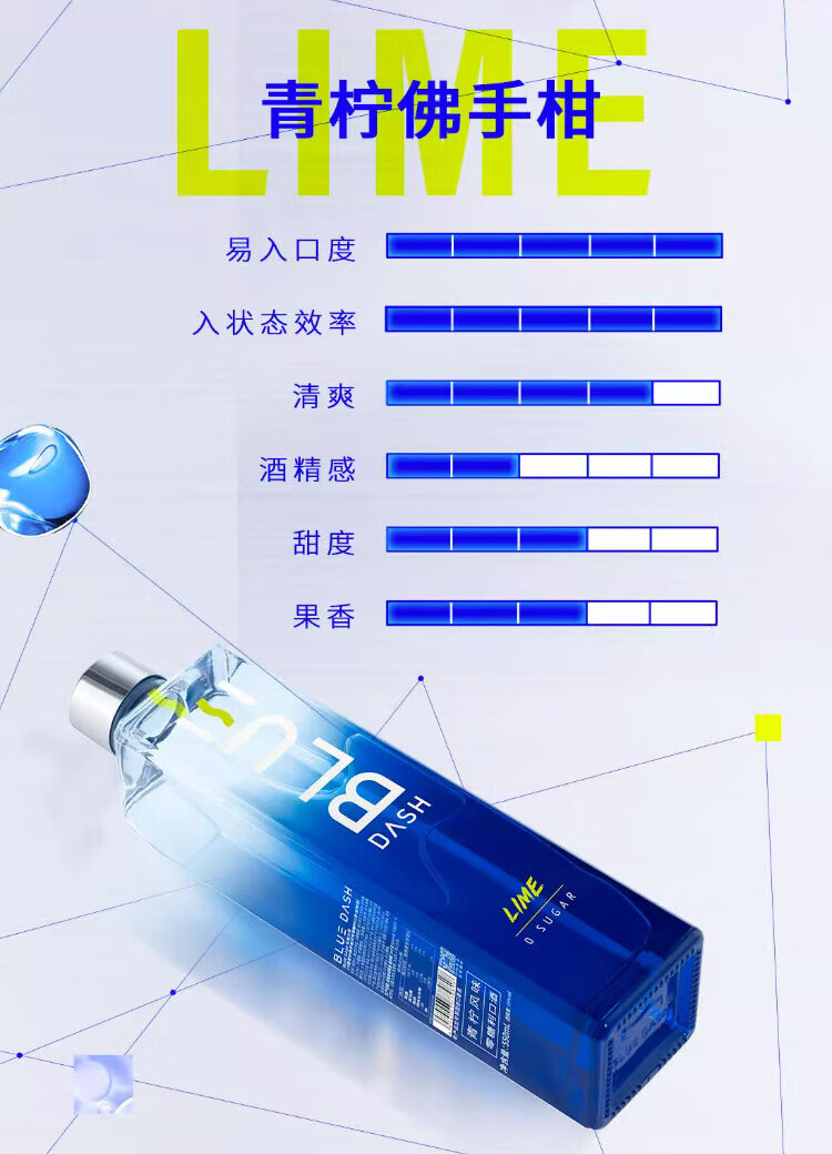 BLUE DASH 0 sugar 0 fat 15% lime flavored liqueur 550ml party