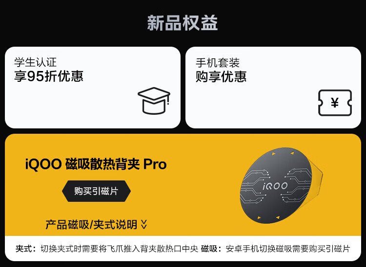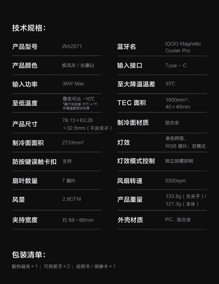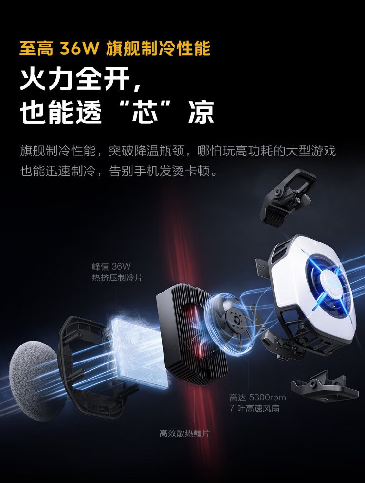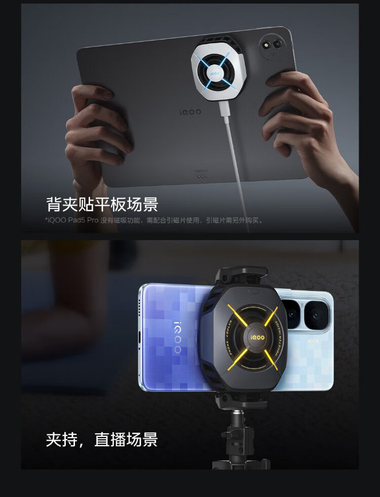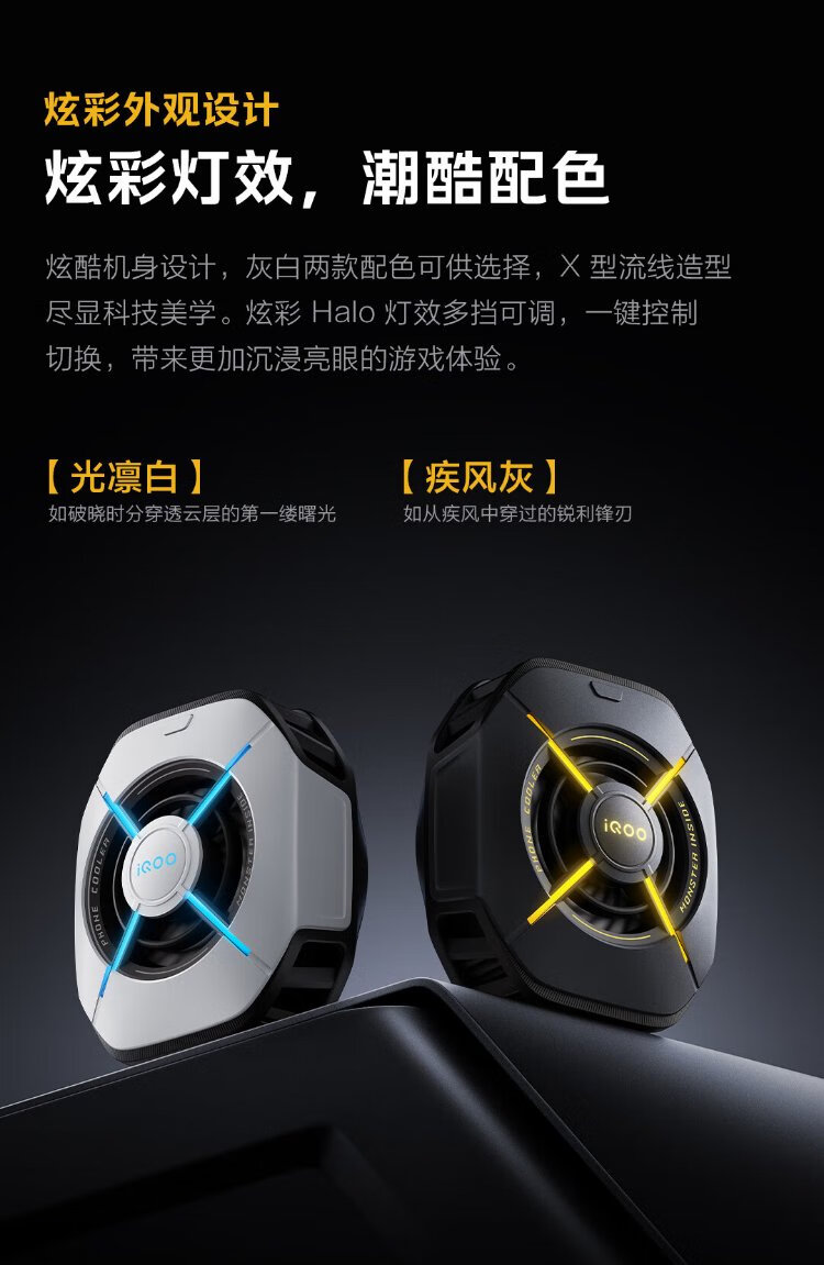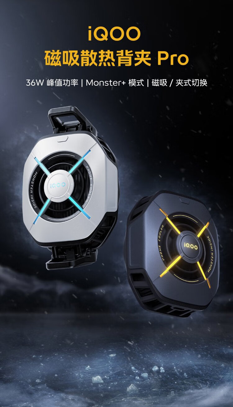 Vivo iQOO Magnetic Cooling Back Clip Pro Guanglin White Peak 36W Magnetic Clip Type Can Switch Monster+ Mode at Any Time Live Broadcast Cooling Artifact Suitable for Apple Tablet Xiaomi