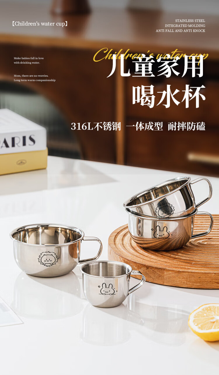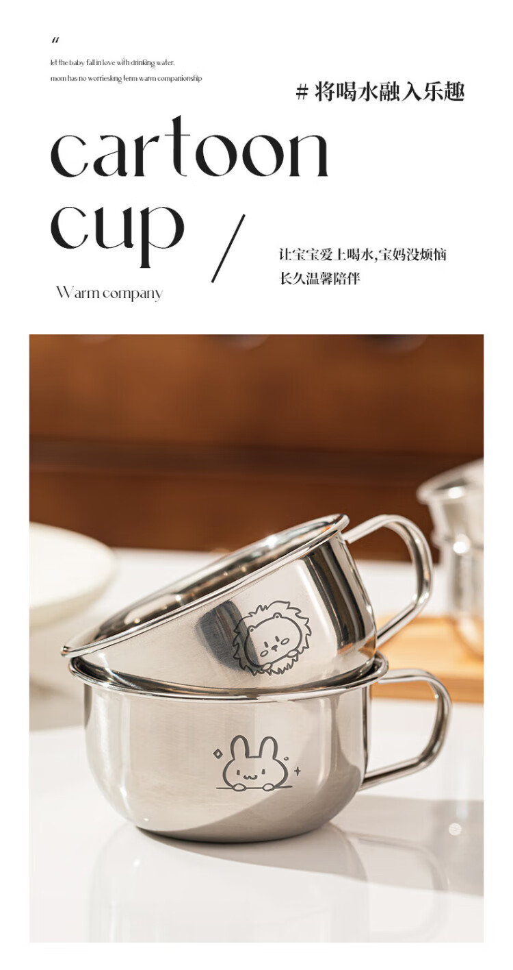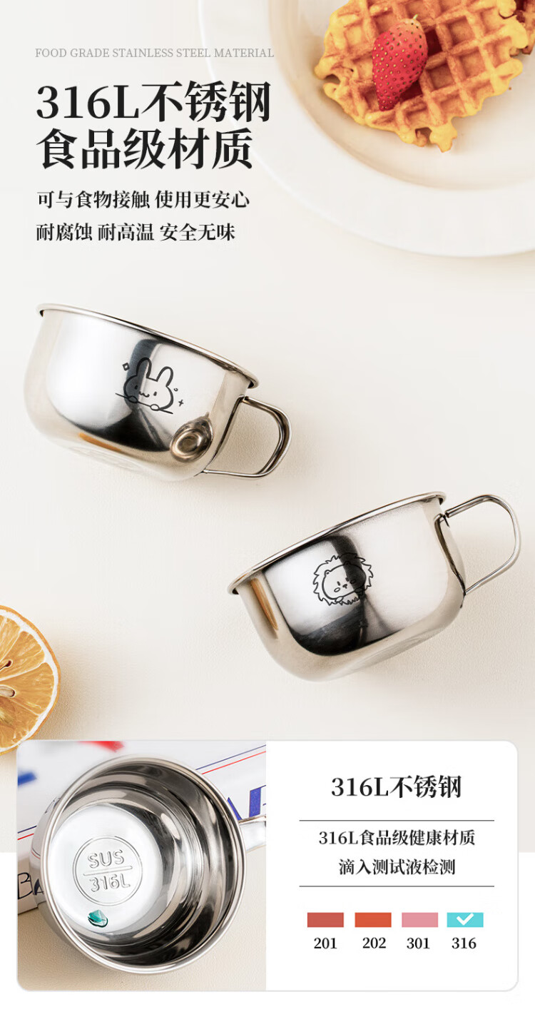 TREEJACK 316L stainless steel milk cup cartoon children baby student kindergarten home open tea drink mug