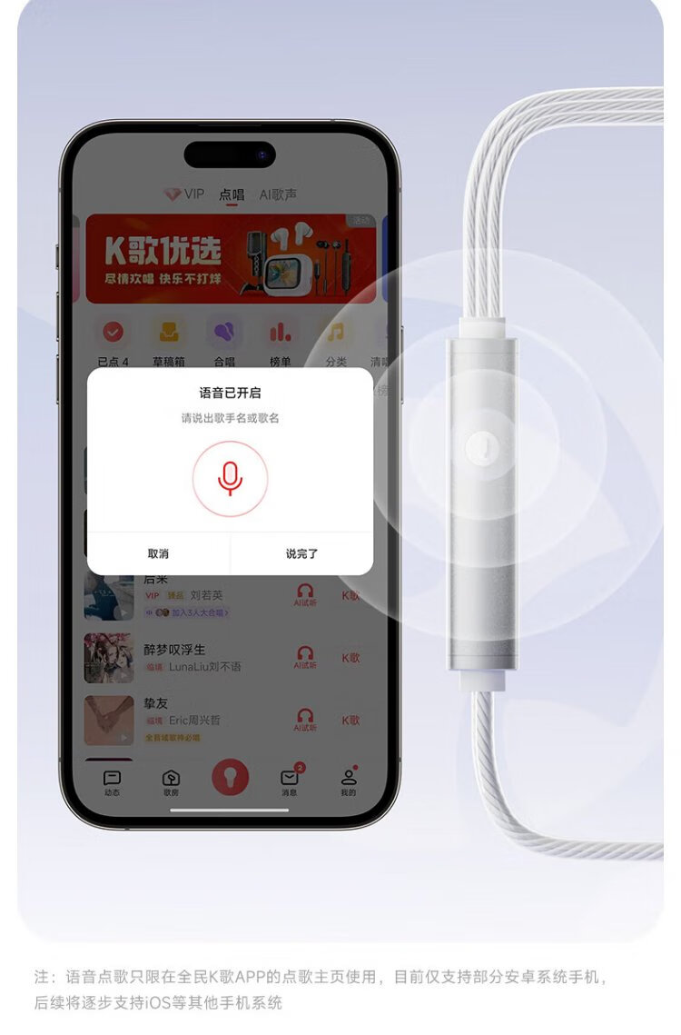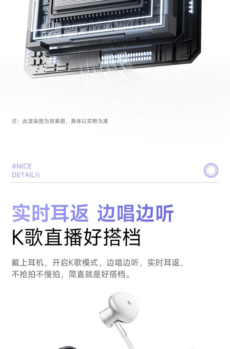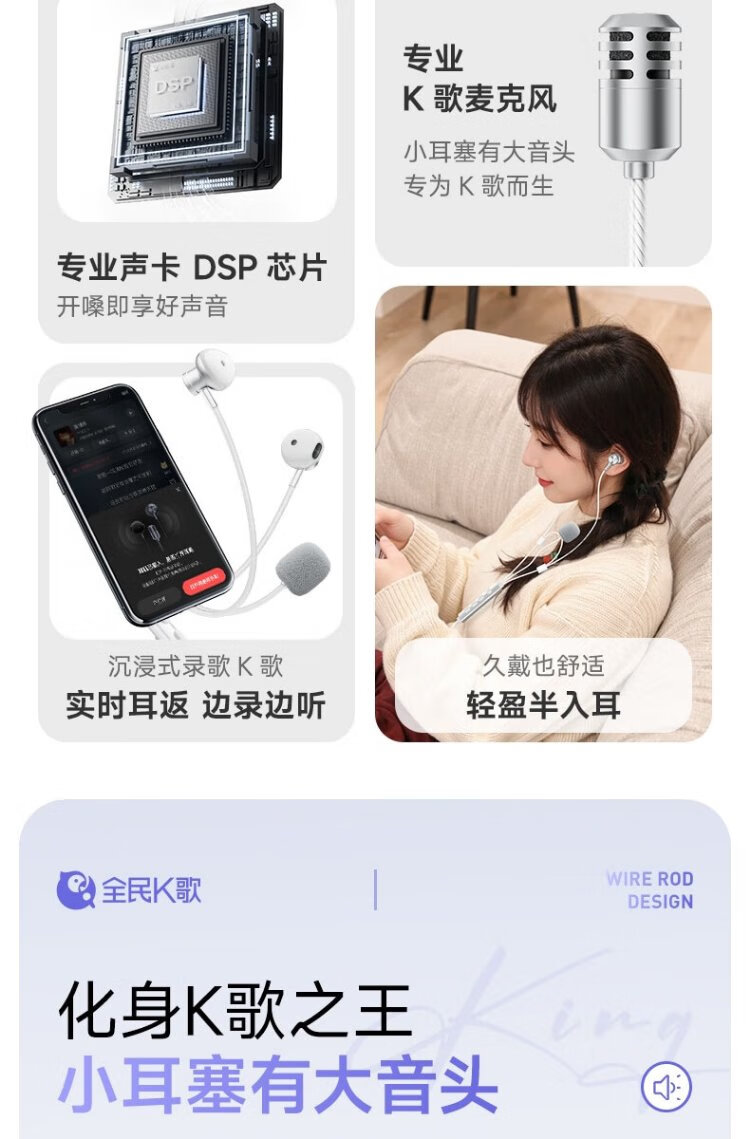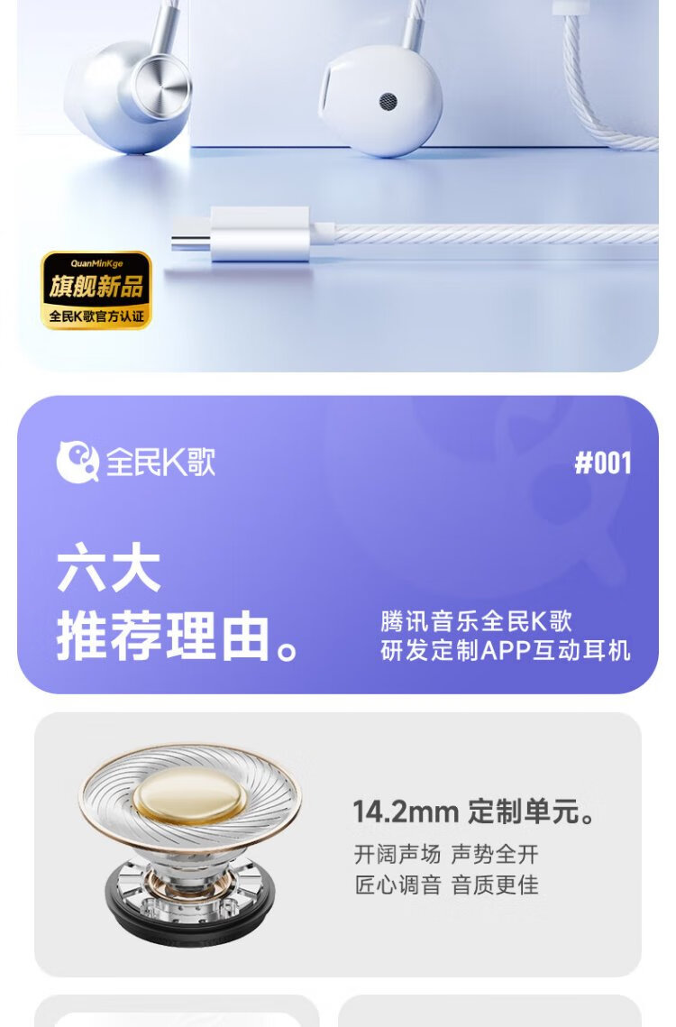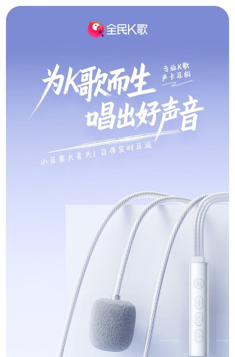 National karaoke Tencent Music jointly customized computer sound card speakers line-controlled karaoke headphones and microphones with built-in ear feedback scoring live singing recording suitable for Apple and Huawei gifts