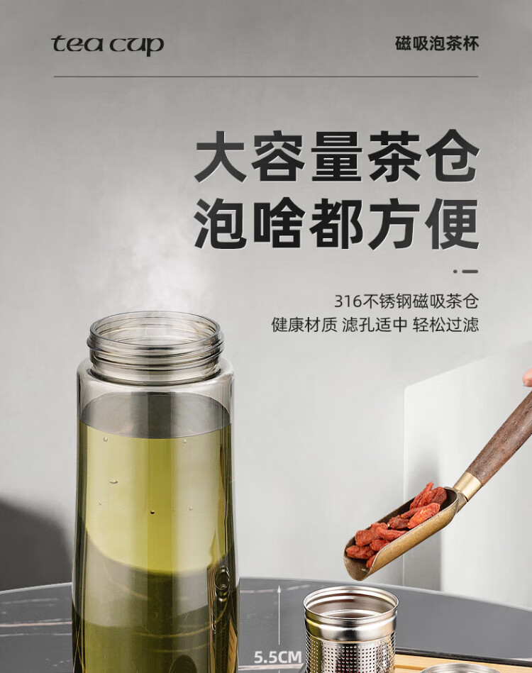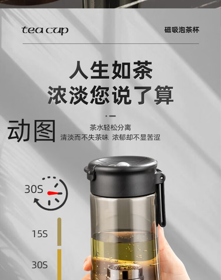 HOOMEY magnetic tea cup men's tea separate cup tritan large capacity water cup water cup fitness portable cup summer