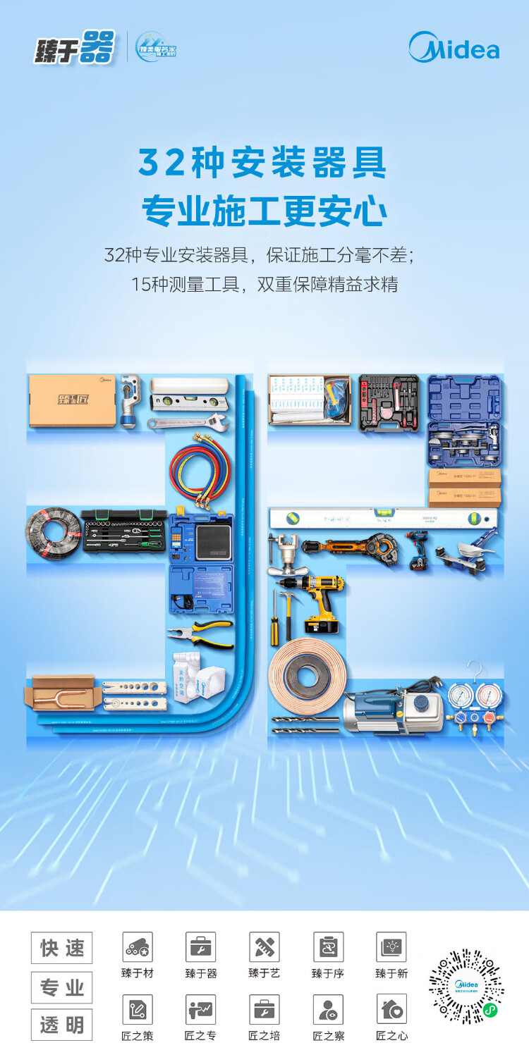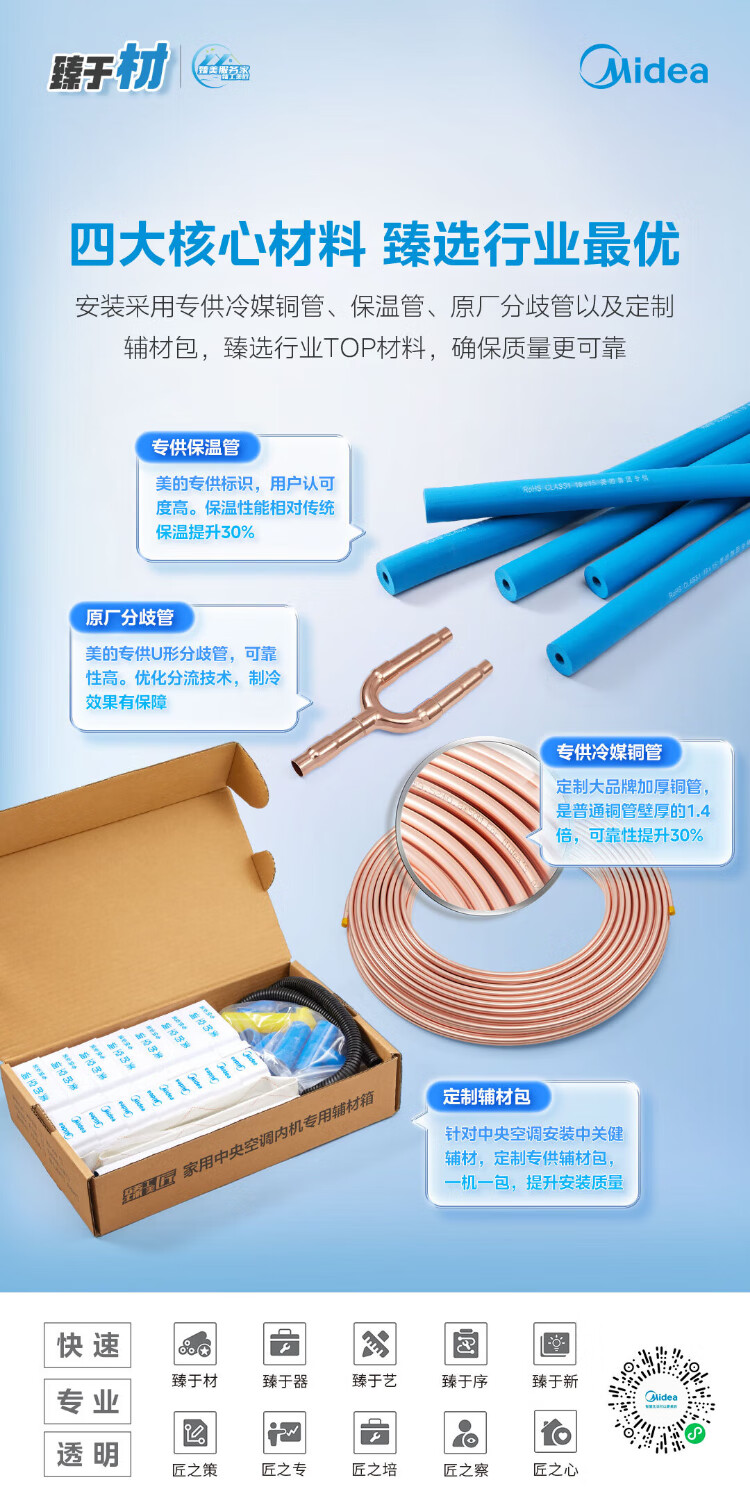 Midea central air conditioner one-to-four multi-connection 5-horsepower Starlight PRO, energy saving upgrade 20%, 25 years, double wind turbines, small three bedrooms and one living room, suitable for 80~110