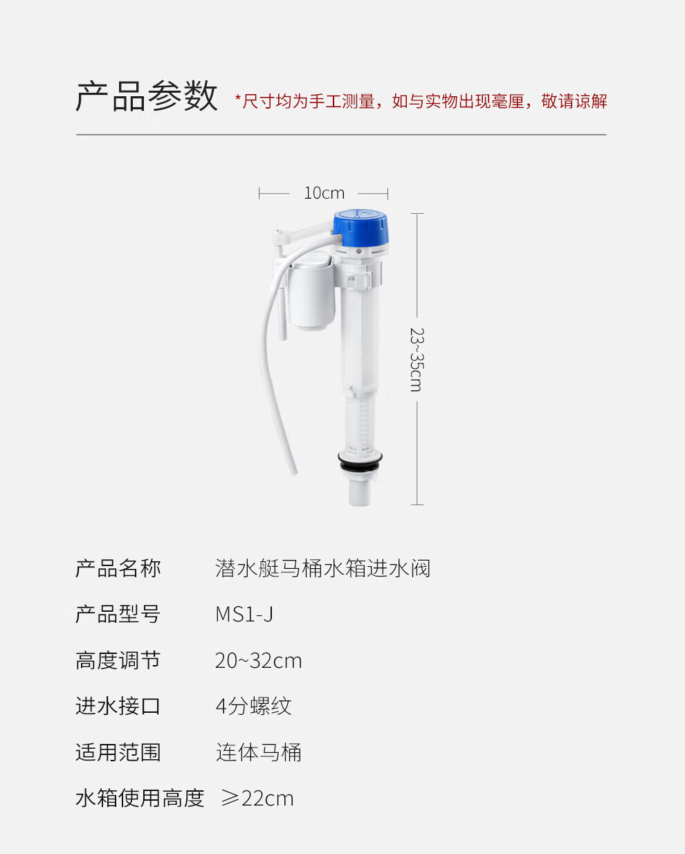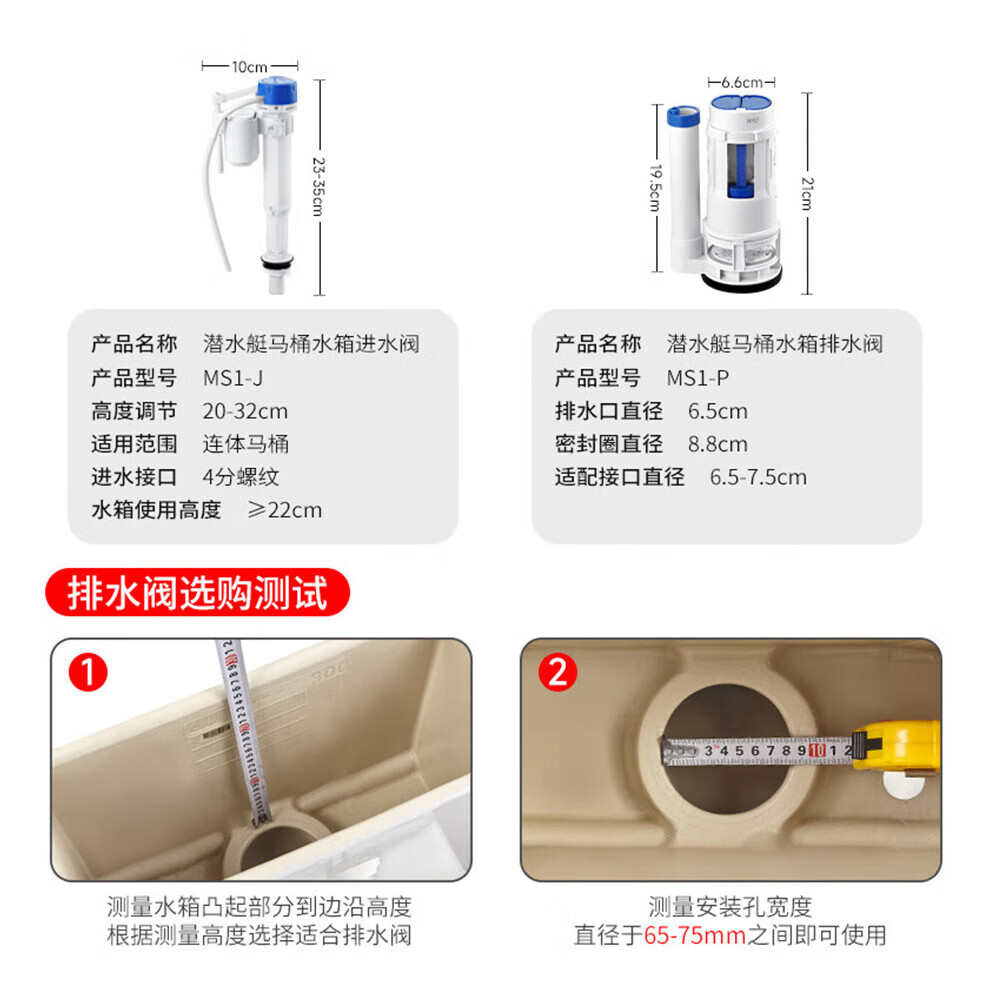 Submarine MS1 old-fashioned toilet water tank float inlet valve + drain valve accessories set 21CM