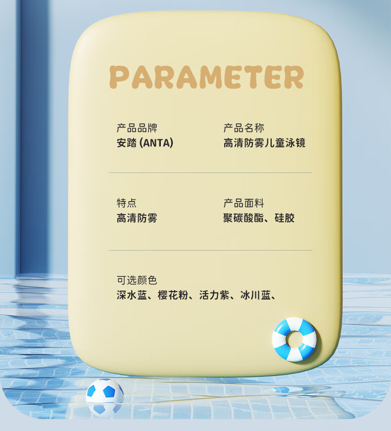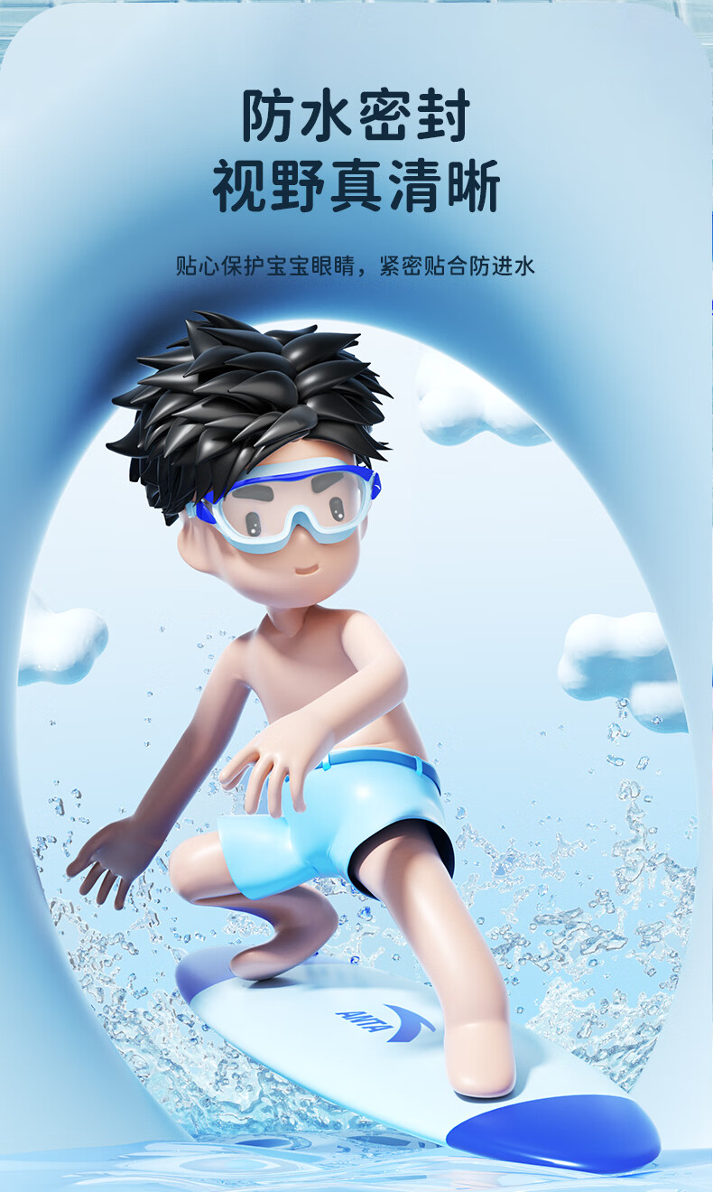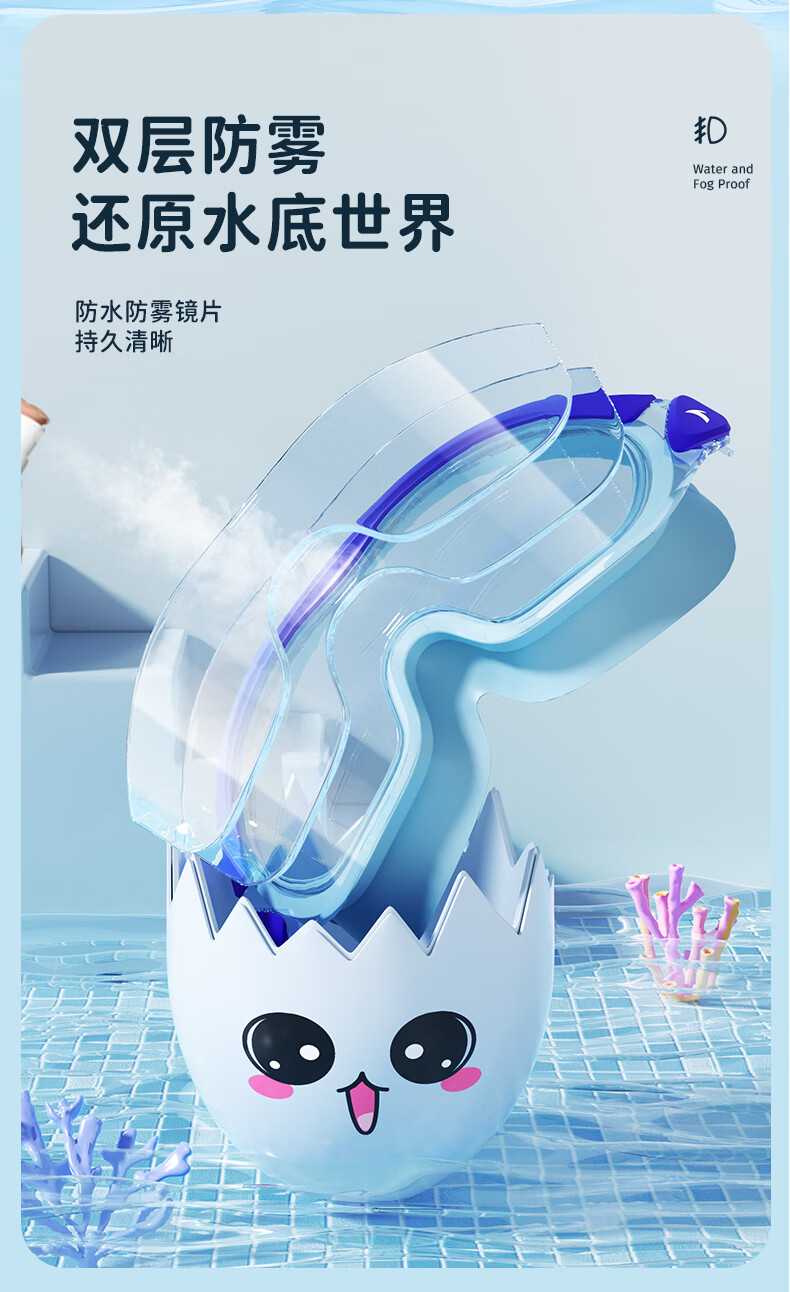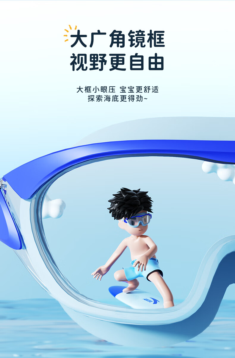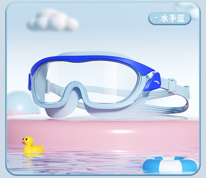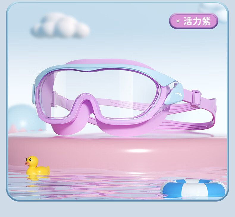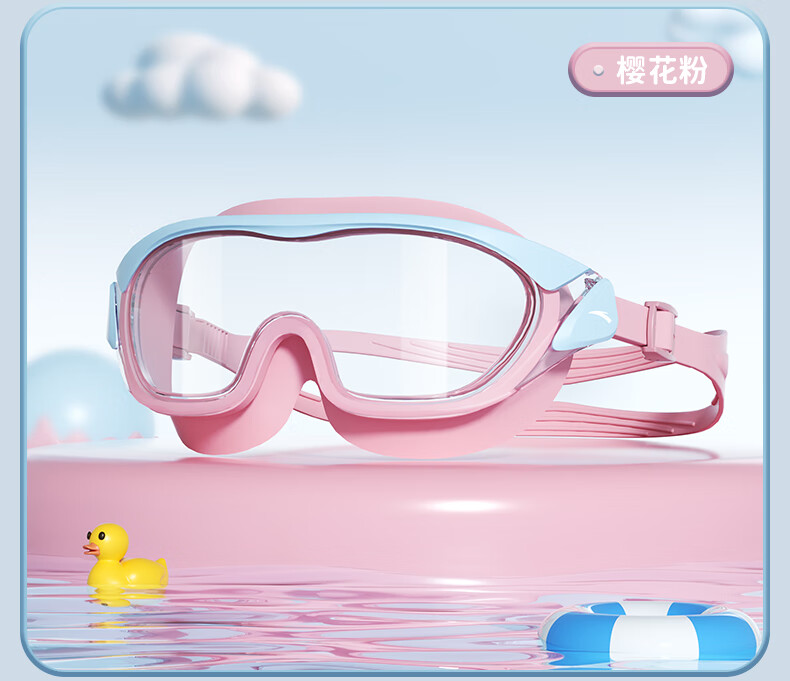 ANTA children's swimming goggles high-definition anti-fog waterproof large frame boys and girls professional swimming goggles swimming cap equipment cherry blossom pink