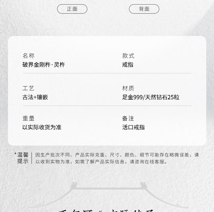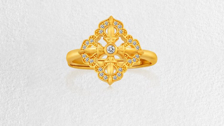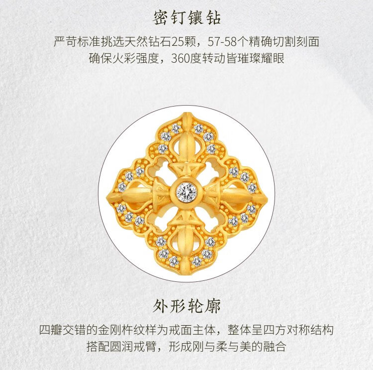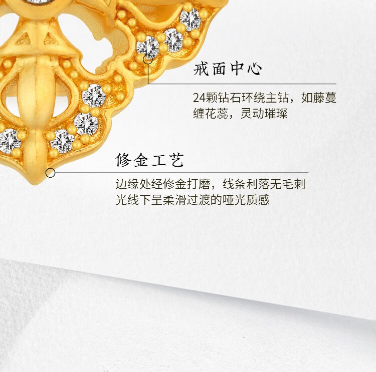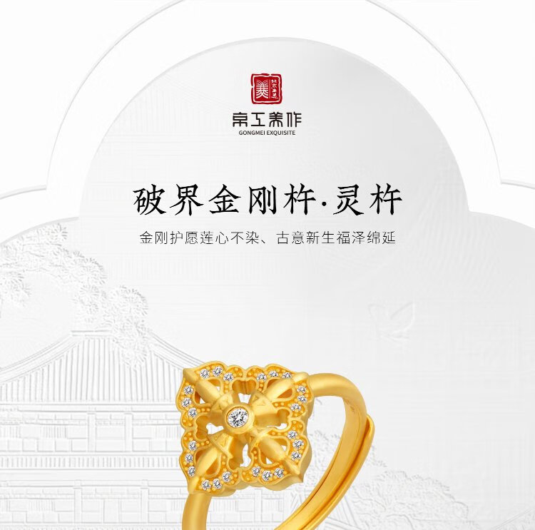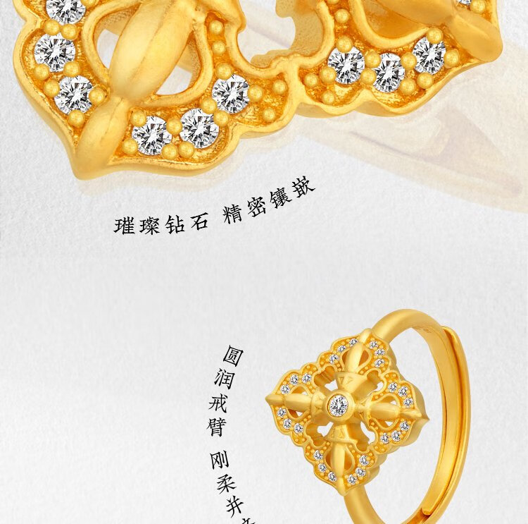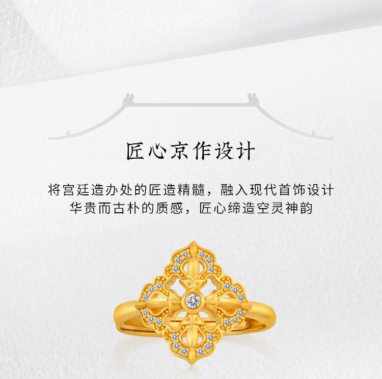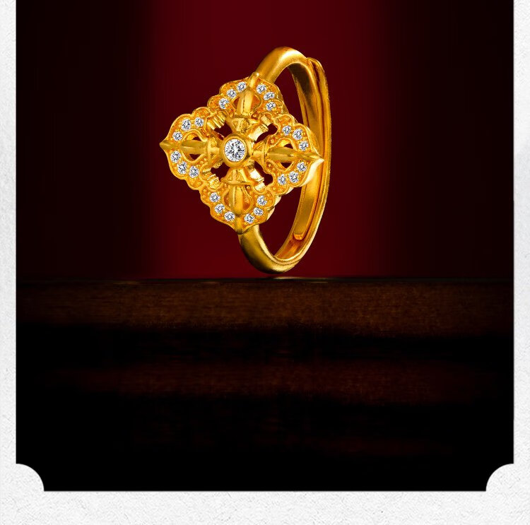 Jinggong Meizu ancient gold ring pure gold 999 inlaid with diamond ring live girlfriend birthday gift for wife spirit pestle 5.72g
