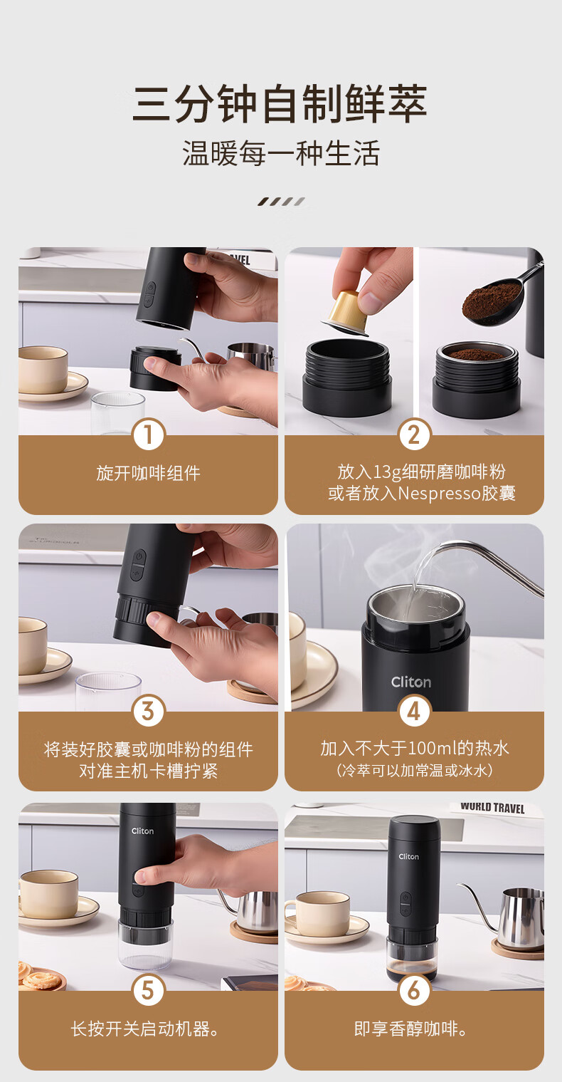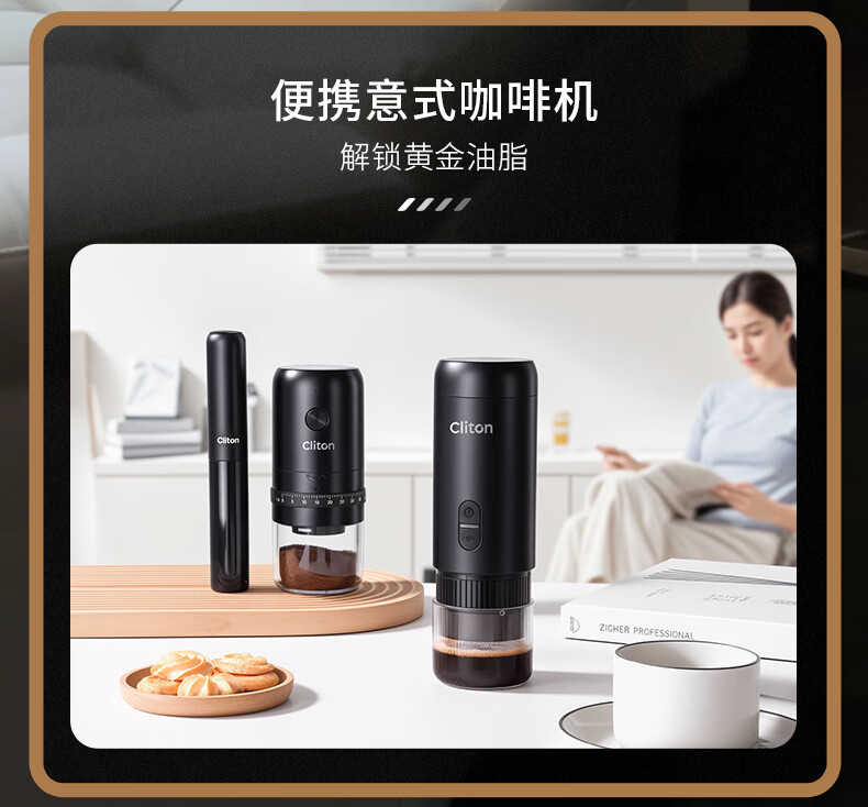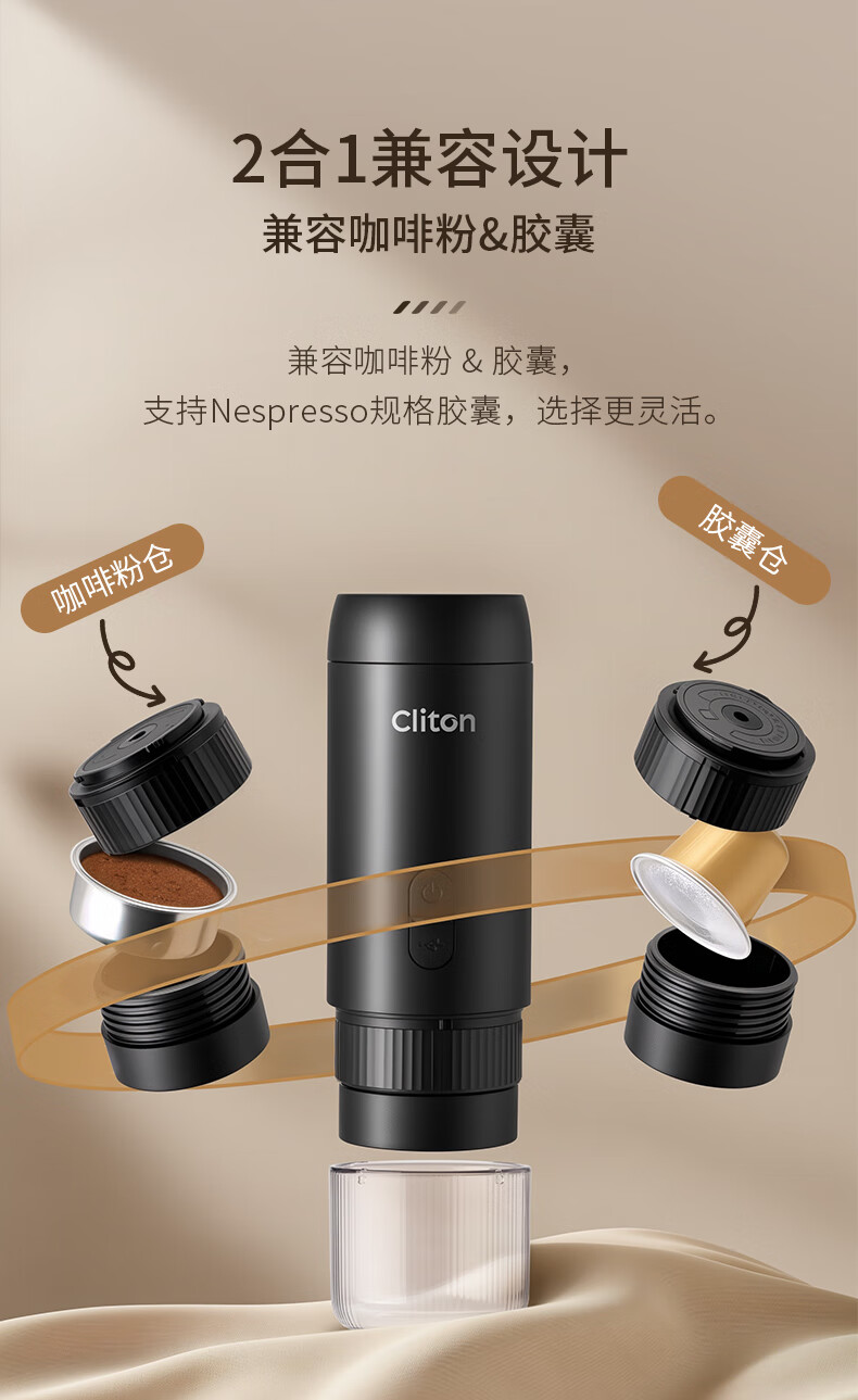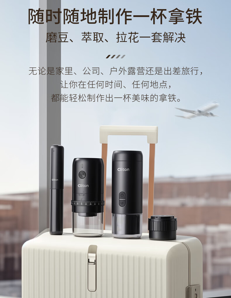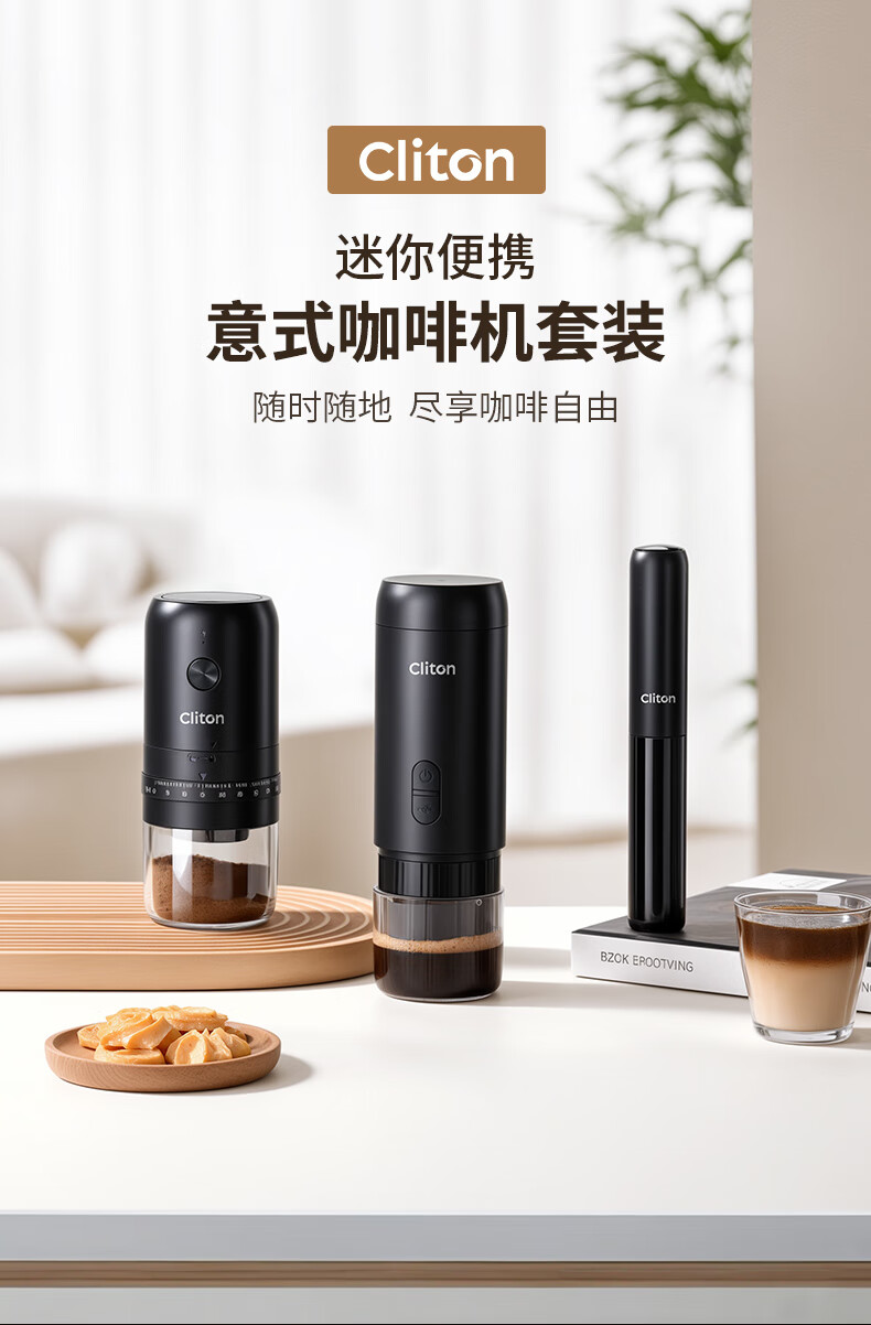 CLITON portable coffee machine car wireless handheld espresso semi-automatic coffee machine grinder milk frother camping