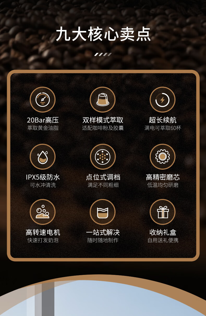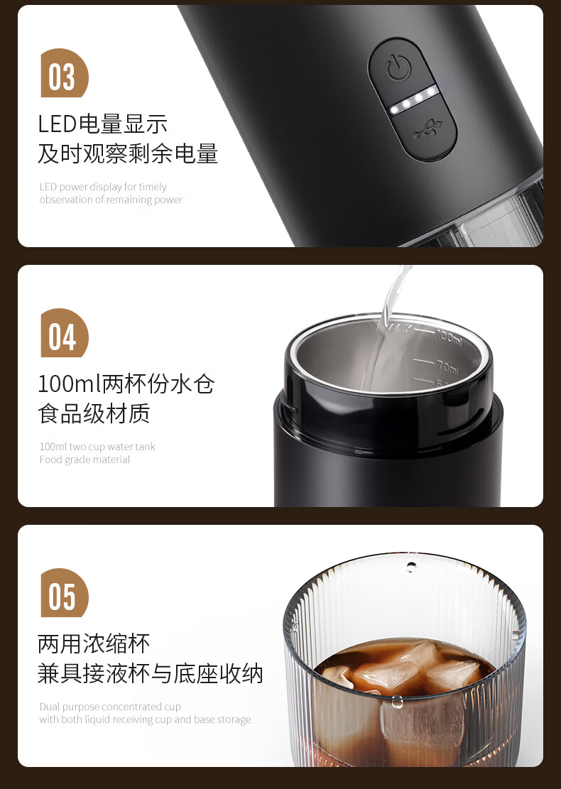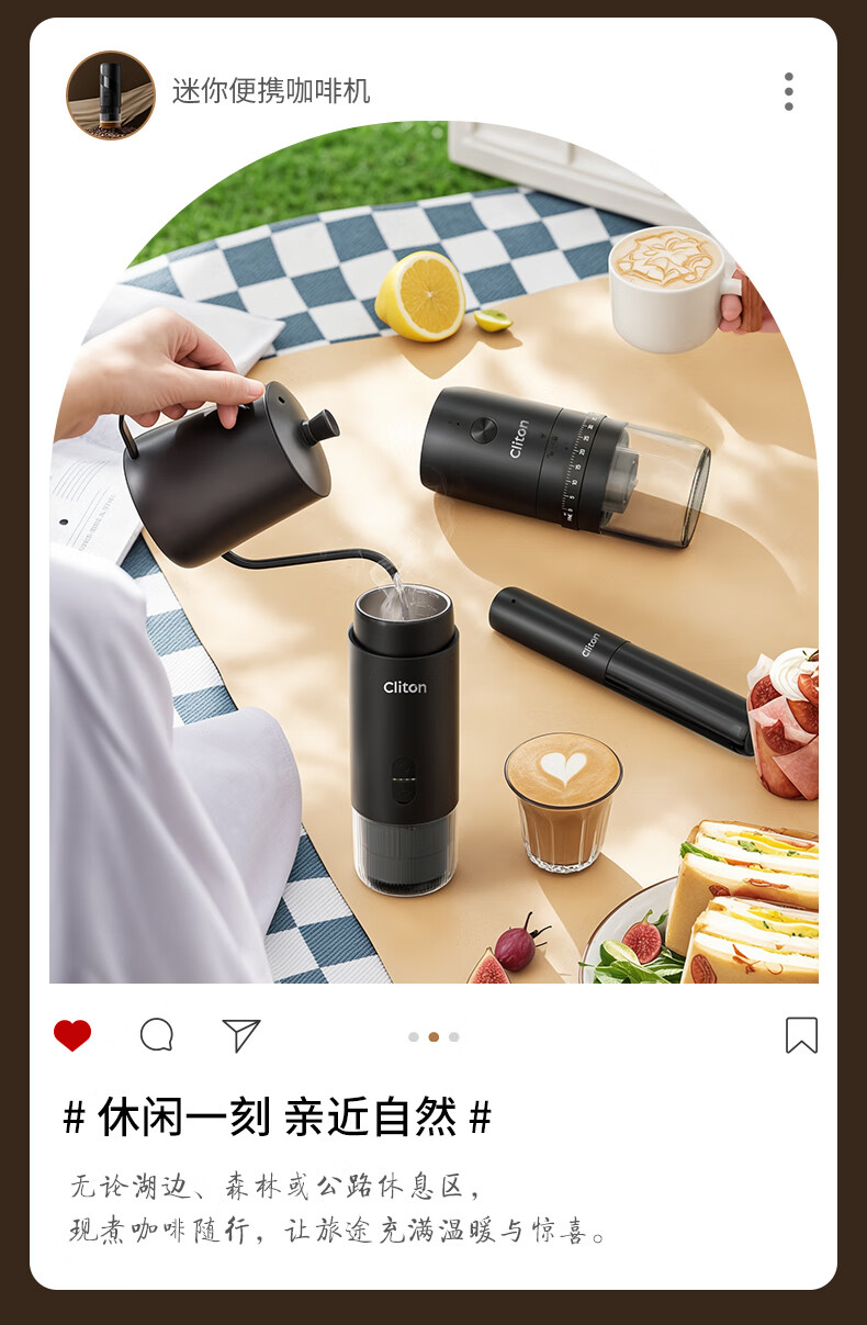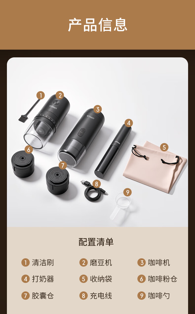 CLITON portable coffee machine car wireless handheld espresso semi-automatic coffee machine grinder milk frother camping