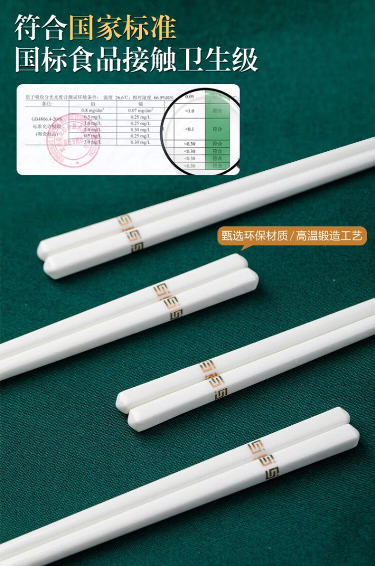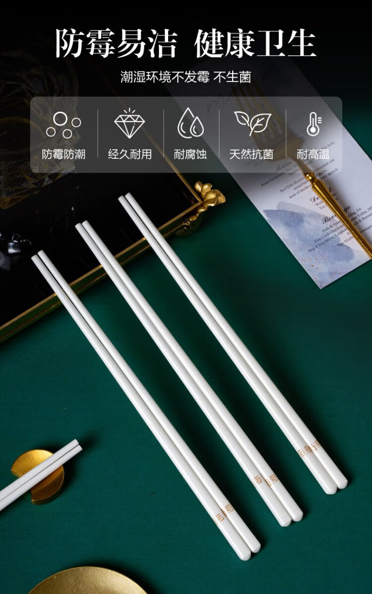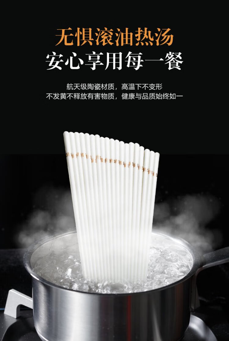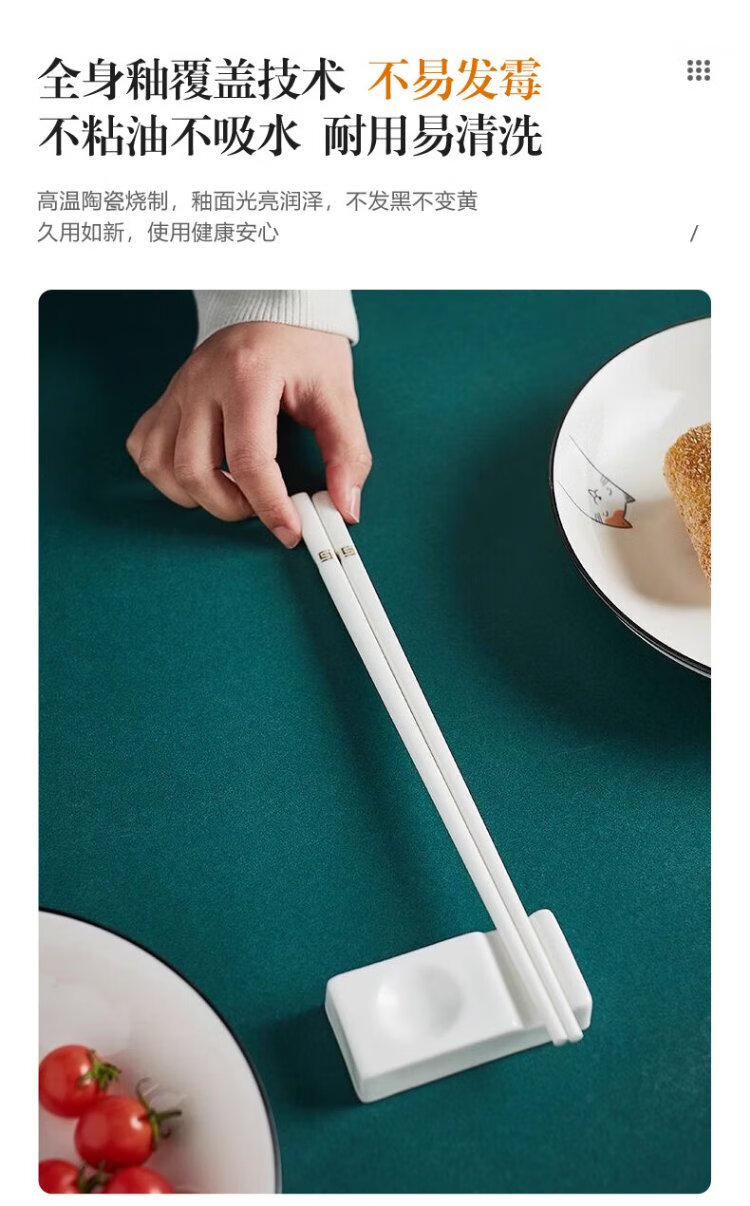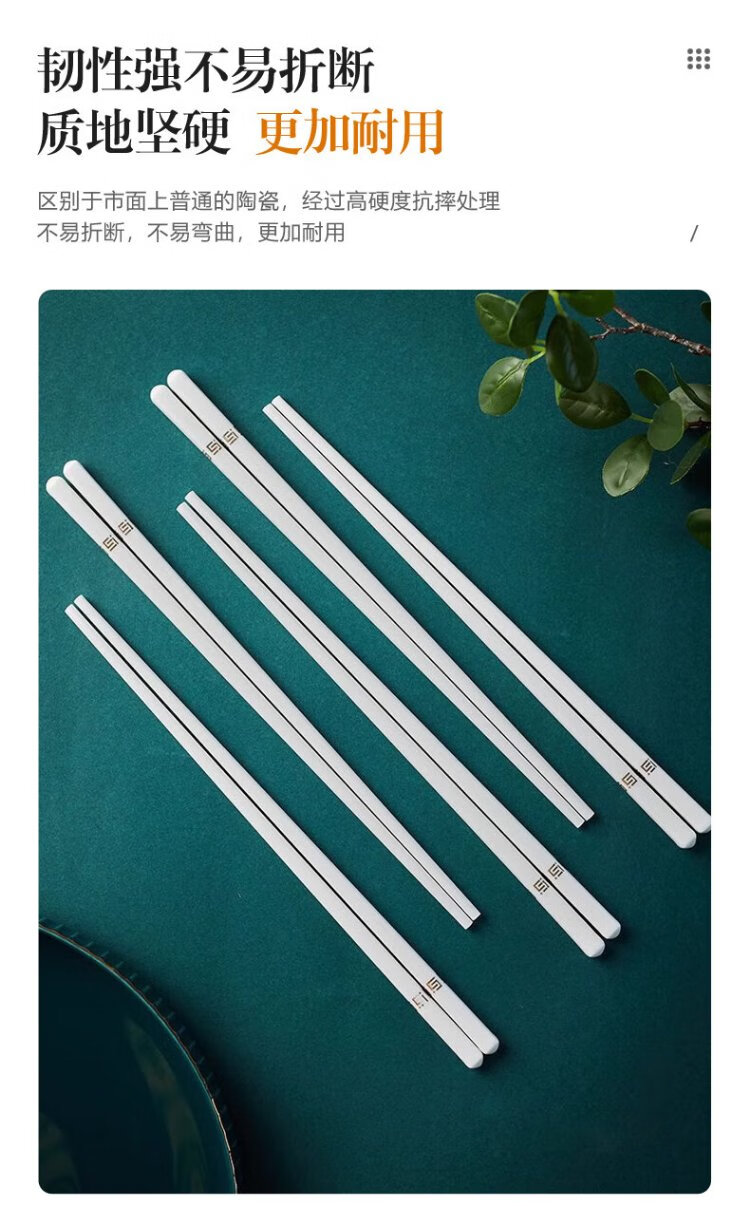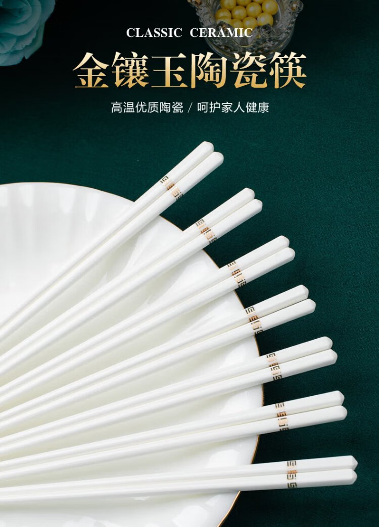 KANGQIN Douyin same style ceramic chopsticks Jingdezhen household high-end mildew-resistant, high-temperature resistant, non-deformable, simple 10 pairs
