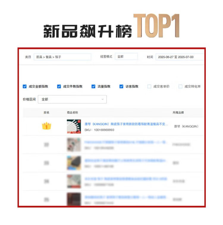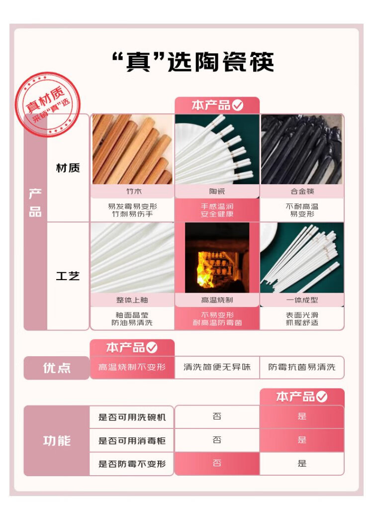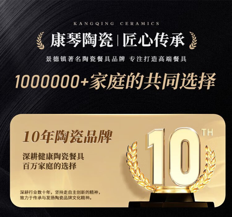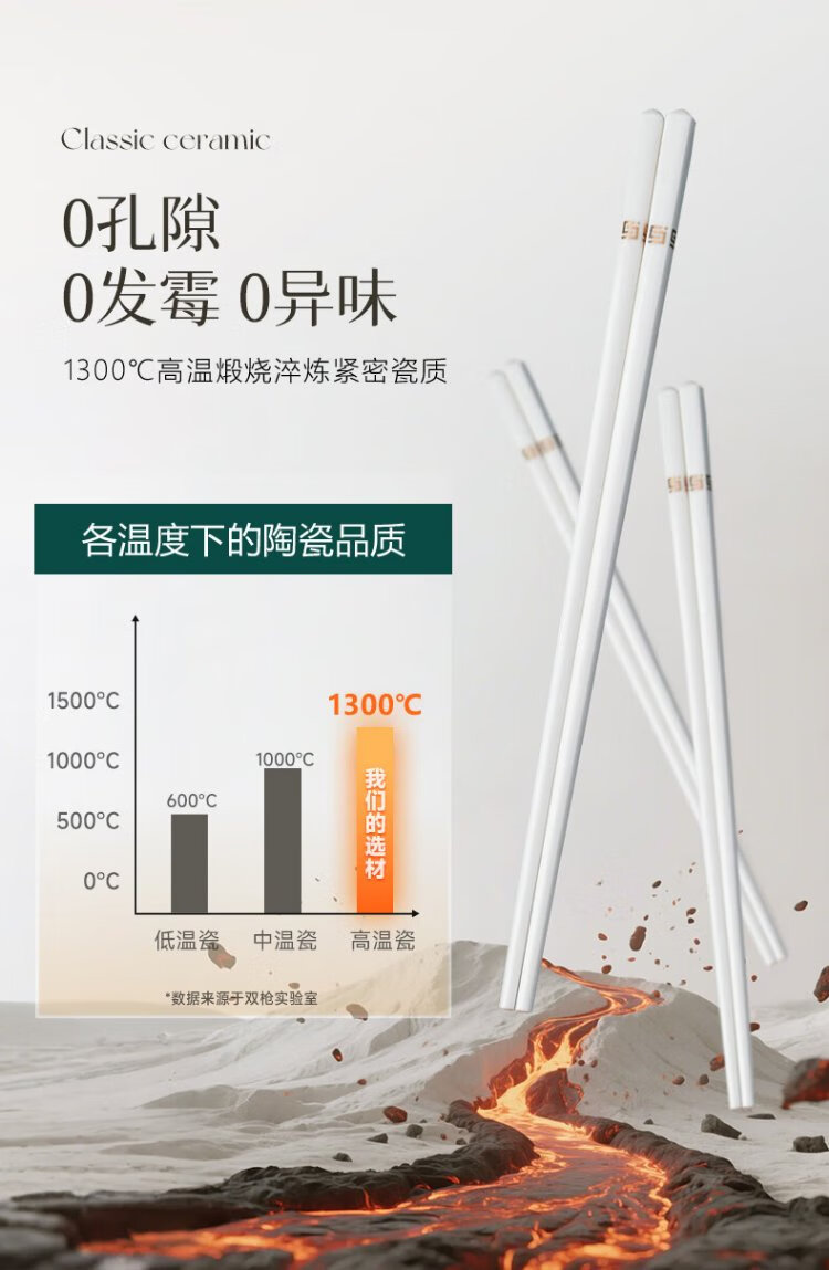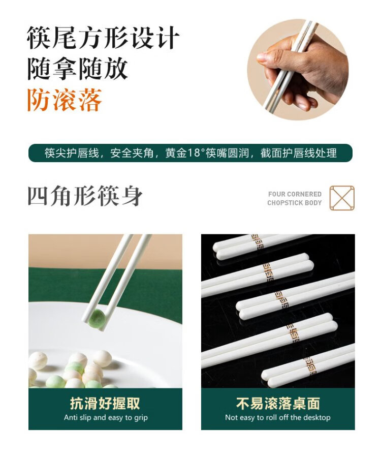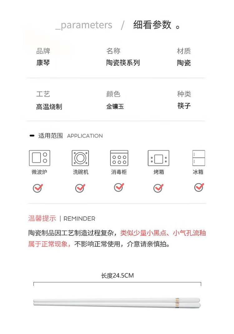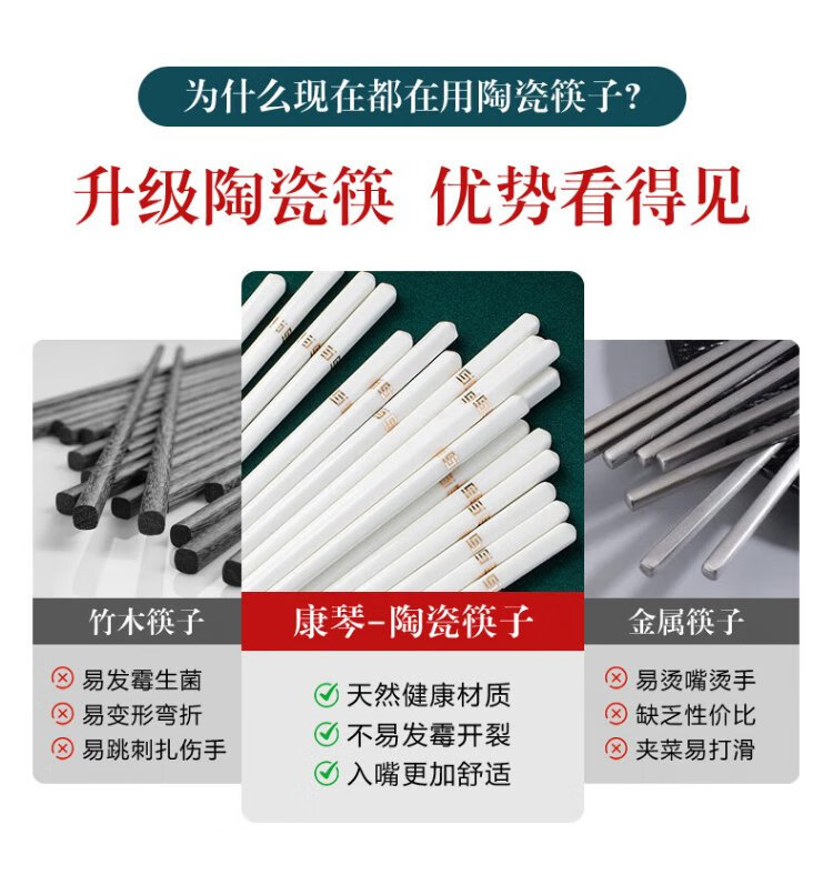 KANGQIN Douyin same style ceramic chopsticks Jingdezhen household high-end mildew-resistant, high-temperature resistant, non-deformable, simple 10 pairs