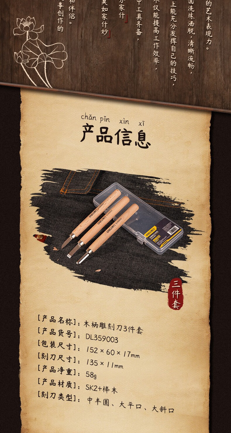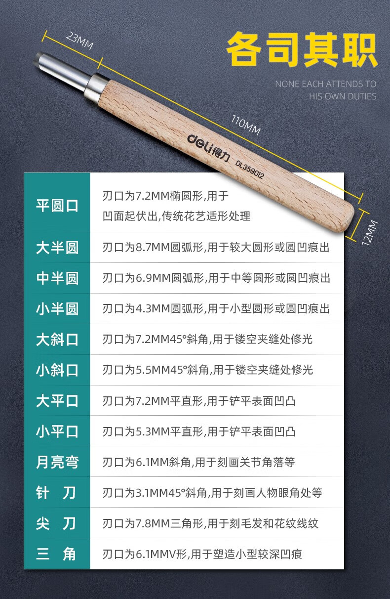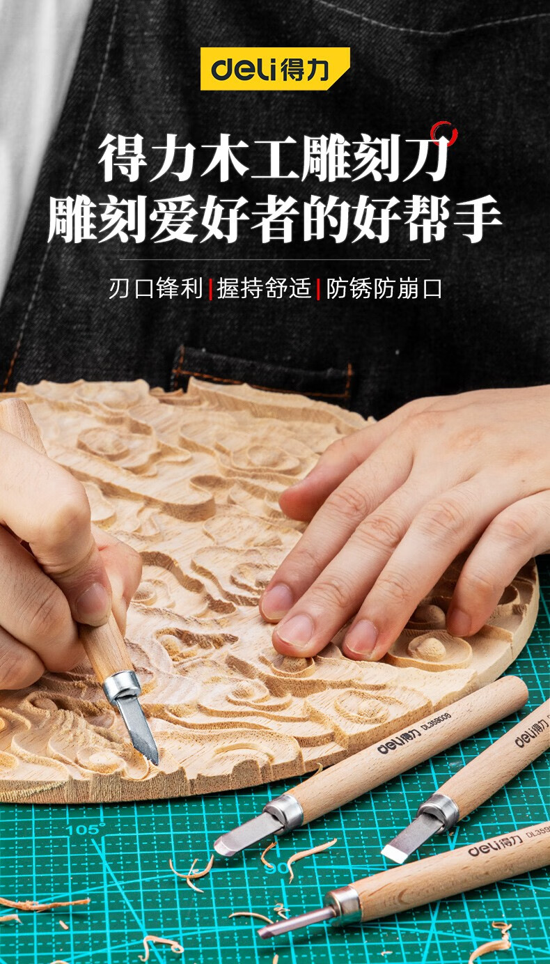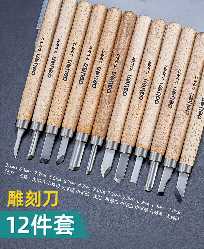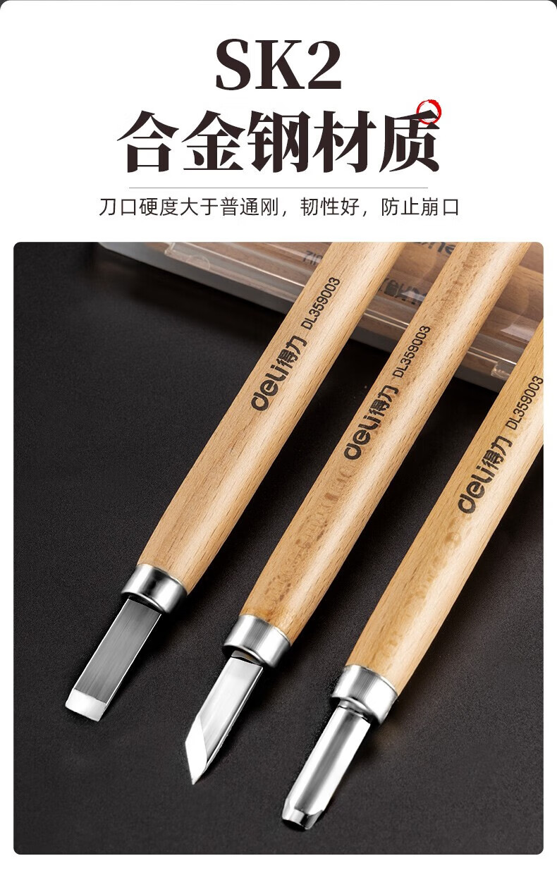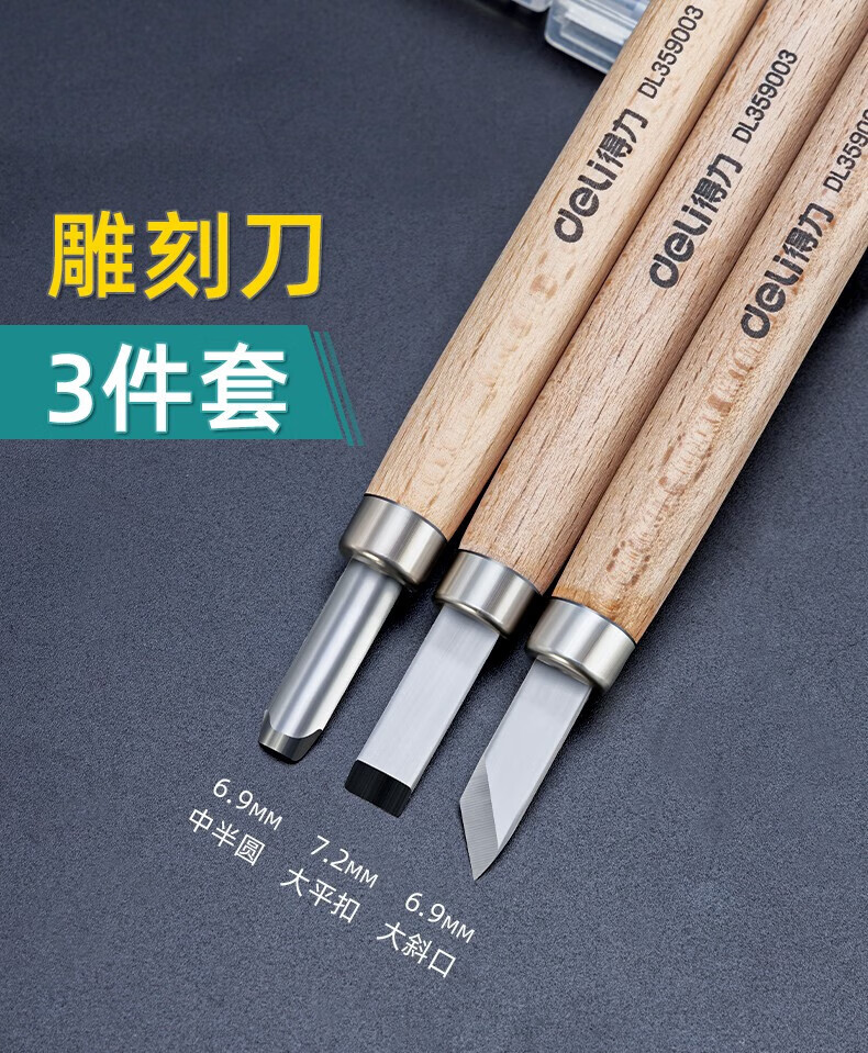 Deli Carving Knife Wood Carving Tools Woodworking Knife Set Carving Paper Knife Carving Pen Carving Knife Three-piece Set DL359003