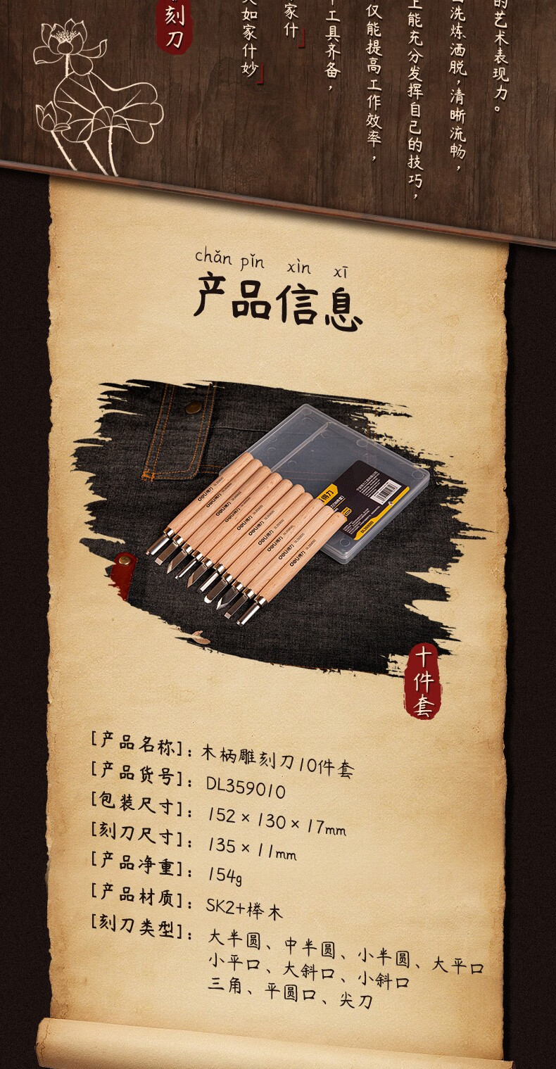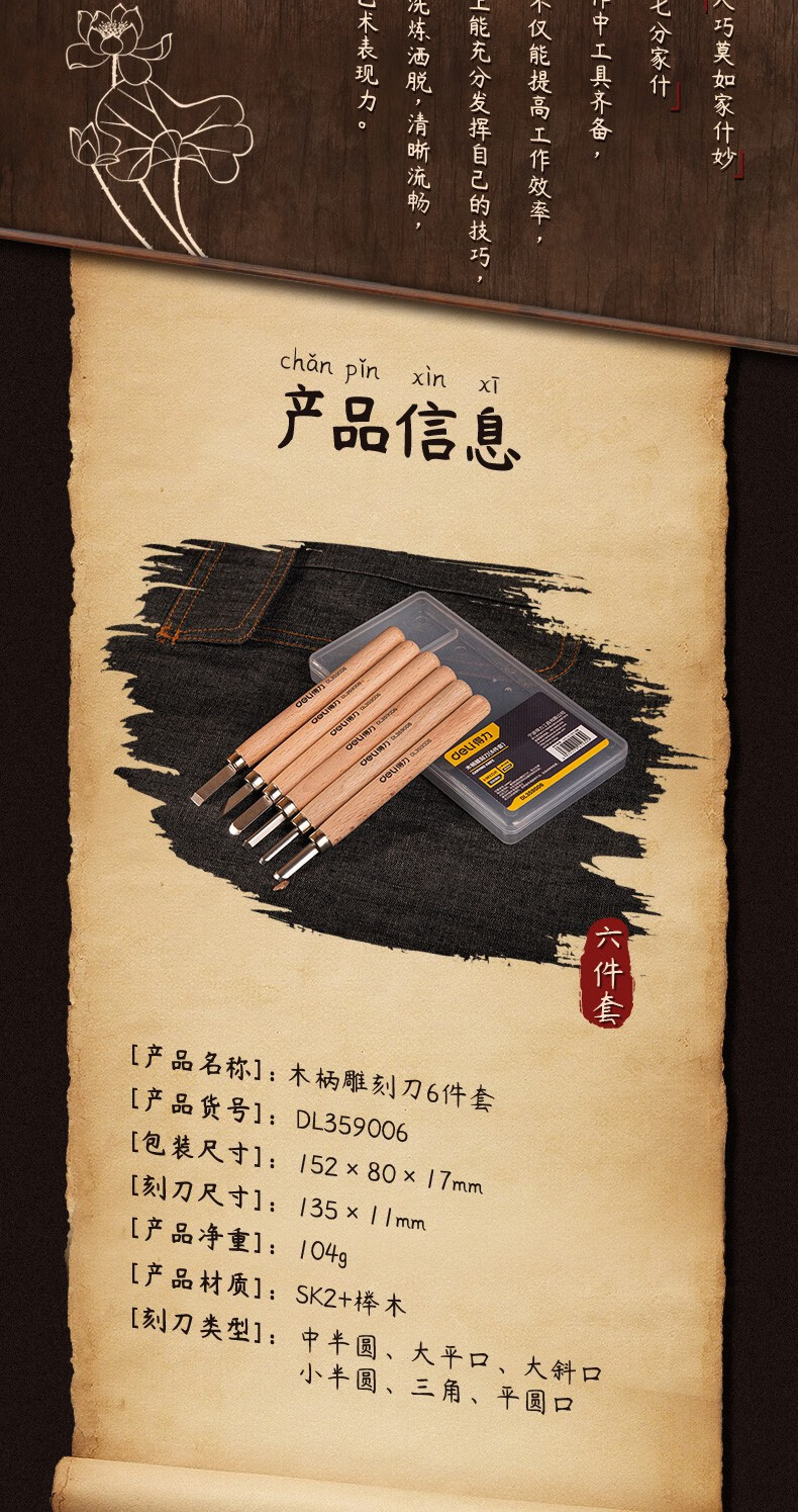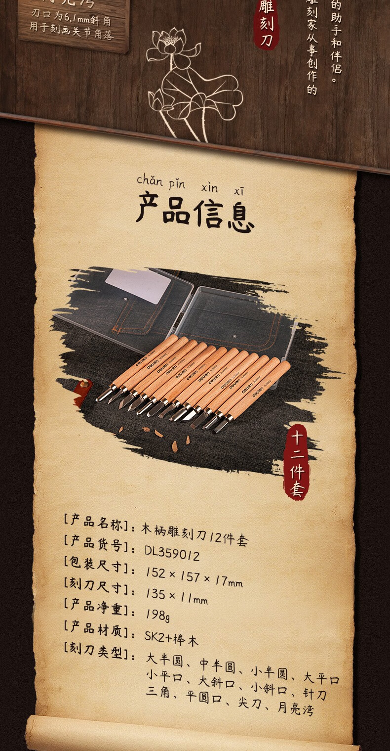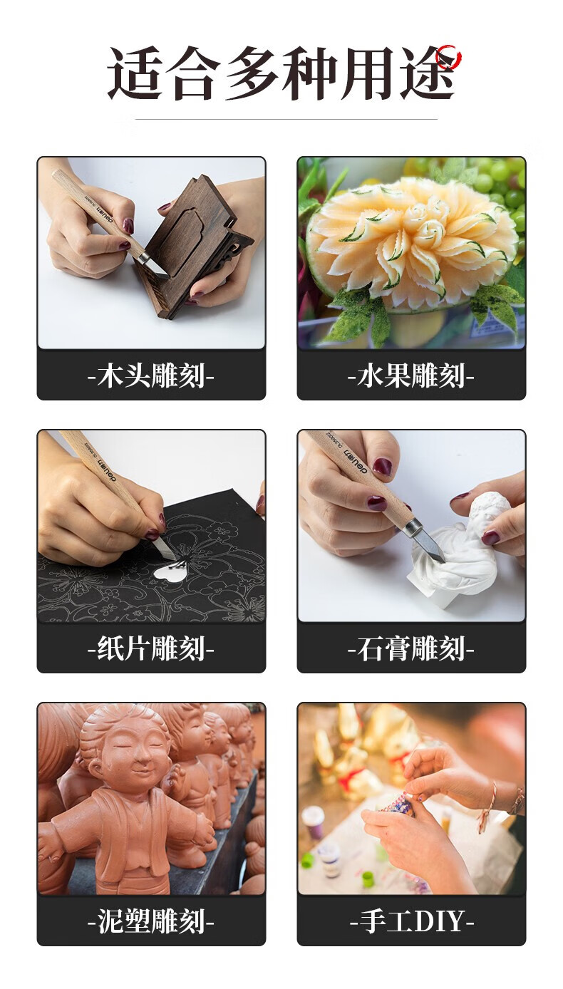 Deli Carving Knife Wood Carving Tools Woodworking Knife Set Carving Paper Knife Carving Pen Carving Knife Three-piece Set DL359003
