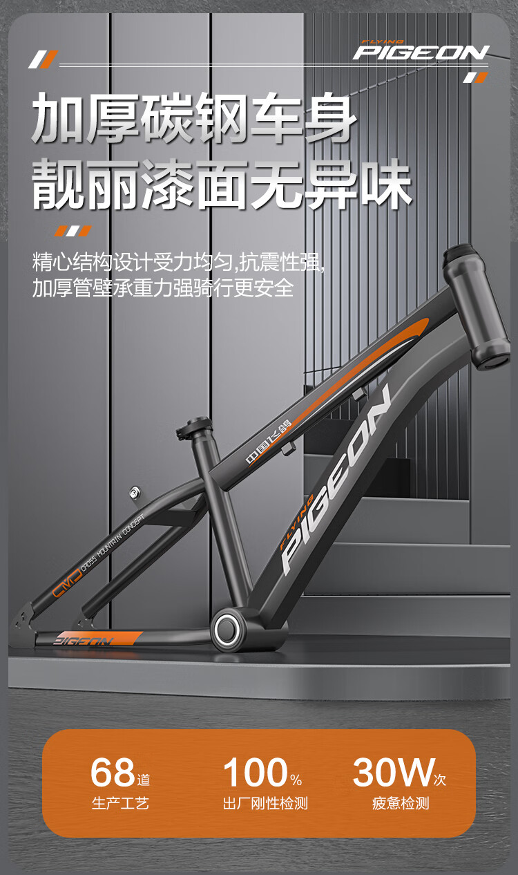 Flying Pigeon Youth Bicycle 6-12-18 Years Old Male and Female Student Competition Grade Mountain Bike Gray 24-inch Transmission Body