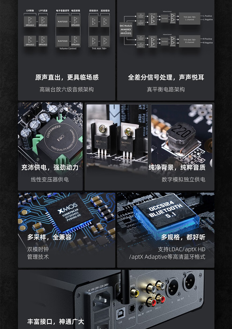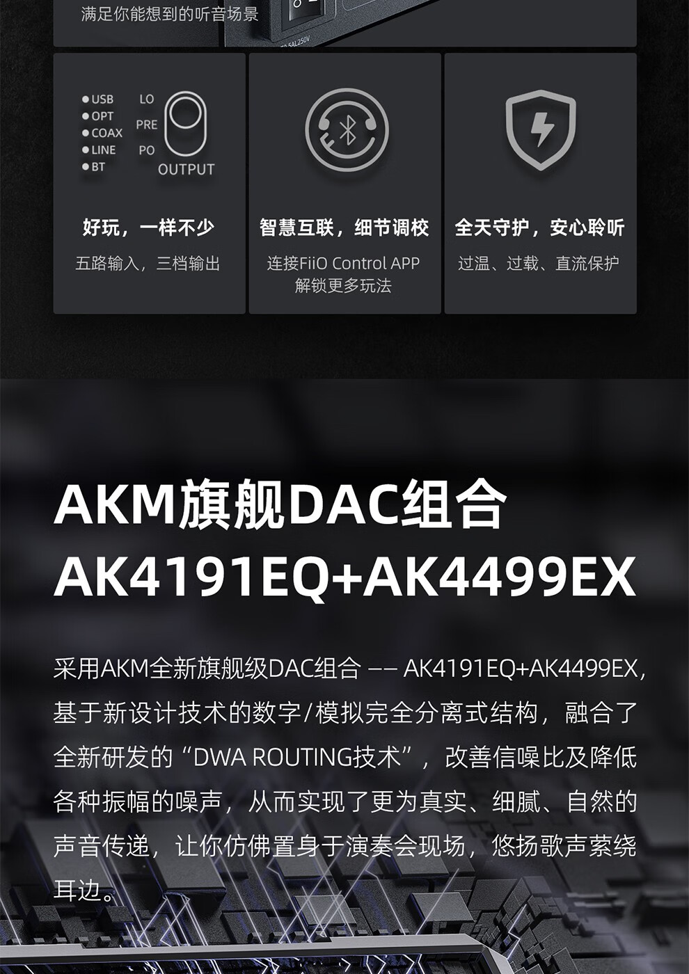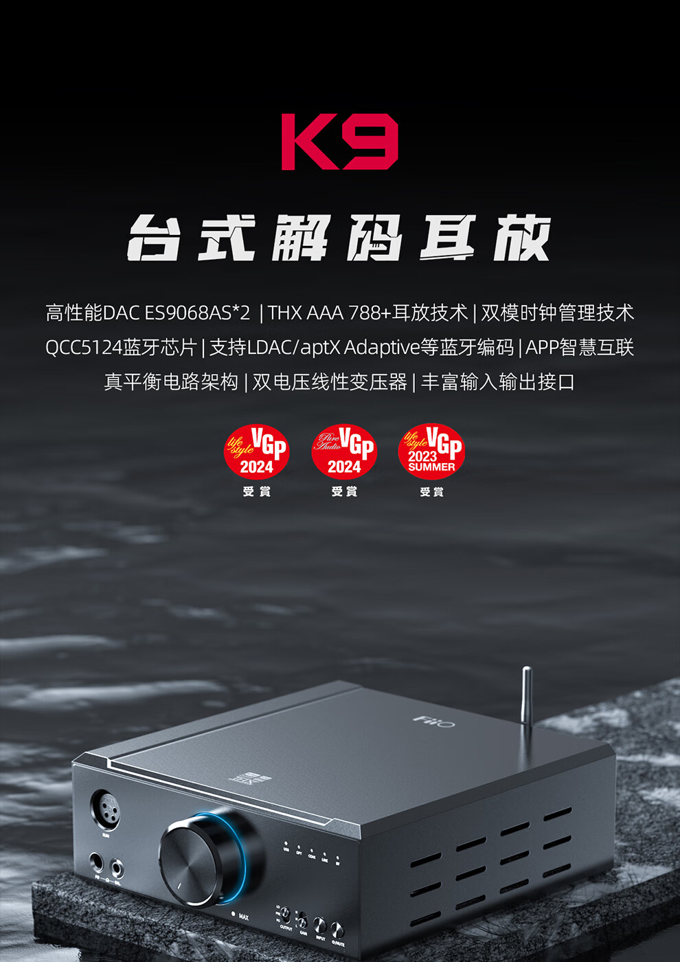 FiiO K9 desktop decoding headphone amplifier DSD decoding all-in-one headphone power amplifier HiFi decoder supports PS5 Switch Black Myth Wukong AKM version black