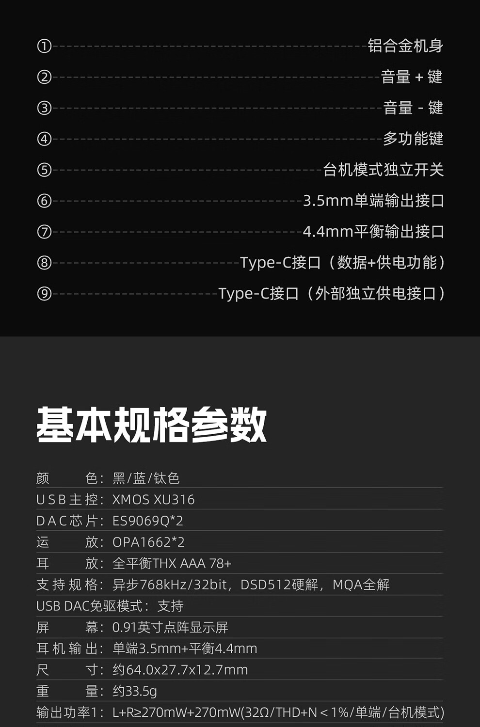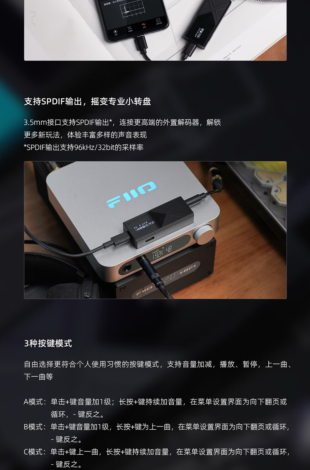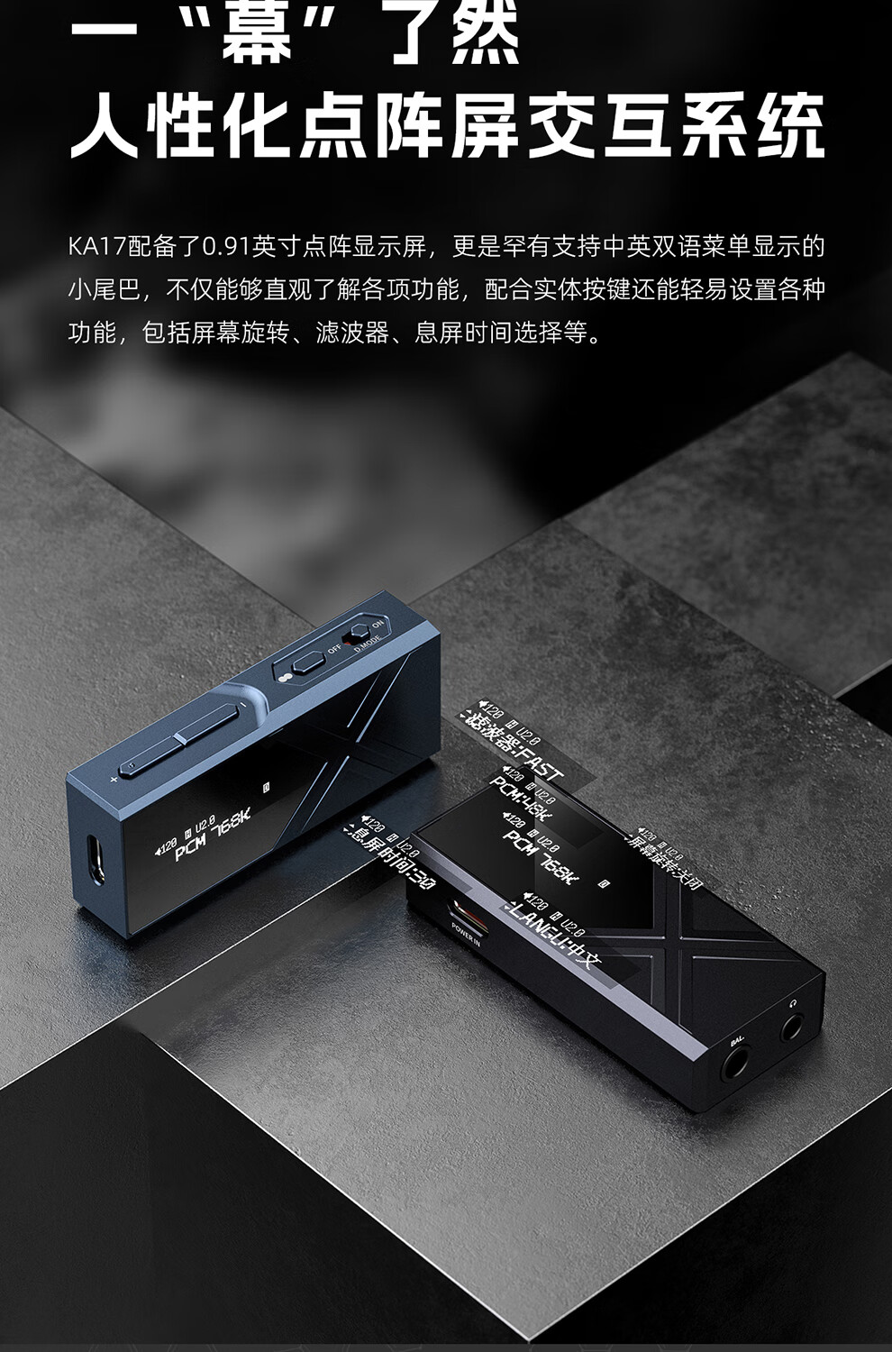 FiiO KA17 Flagship Decoder Headphone Amplifier HIFI Balanced 4.4 Computer Sound Card Android Phone Power Amplifier Portable Small Tail Adapter Cable Supports PS5 Titanium Color