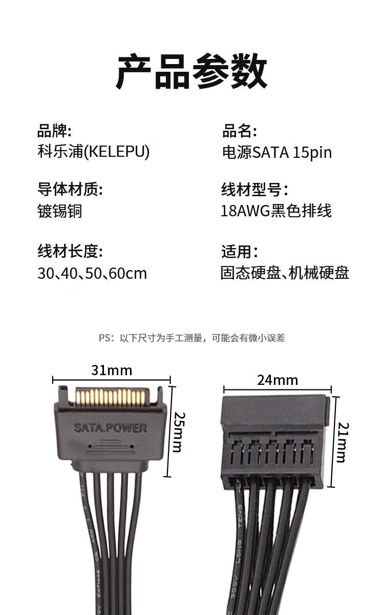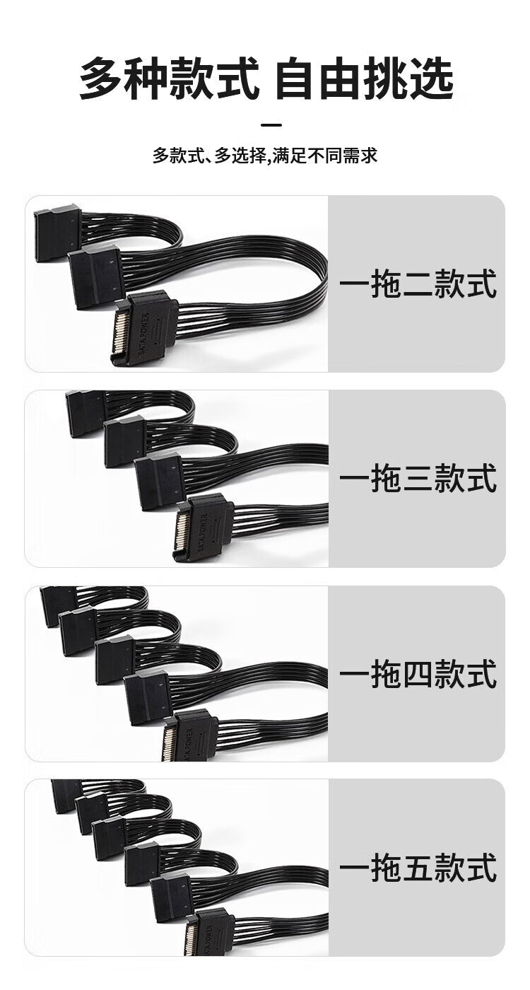 KELEPU SATA cable 15Pin hard drive extension cable one to four hard drive optical drive male to female power cord SATA 1 minute 4 male to female extension cable 50cm