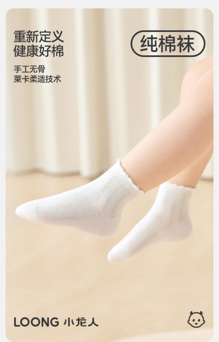 Xiaolongren Xiaolongren 100% cotton boneless baby socks spring and summer mesh thin section female baby pure cotton girls loose socks