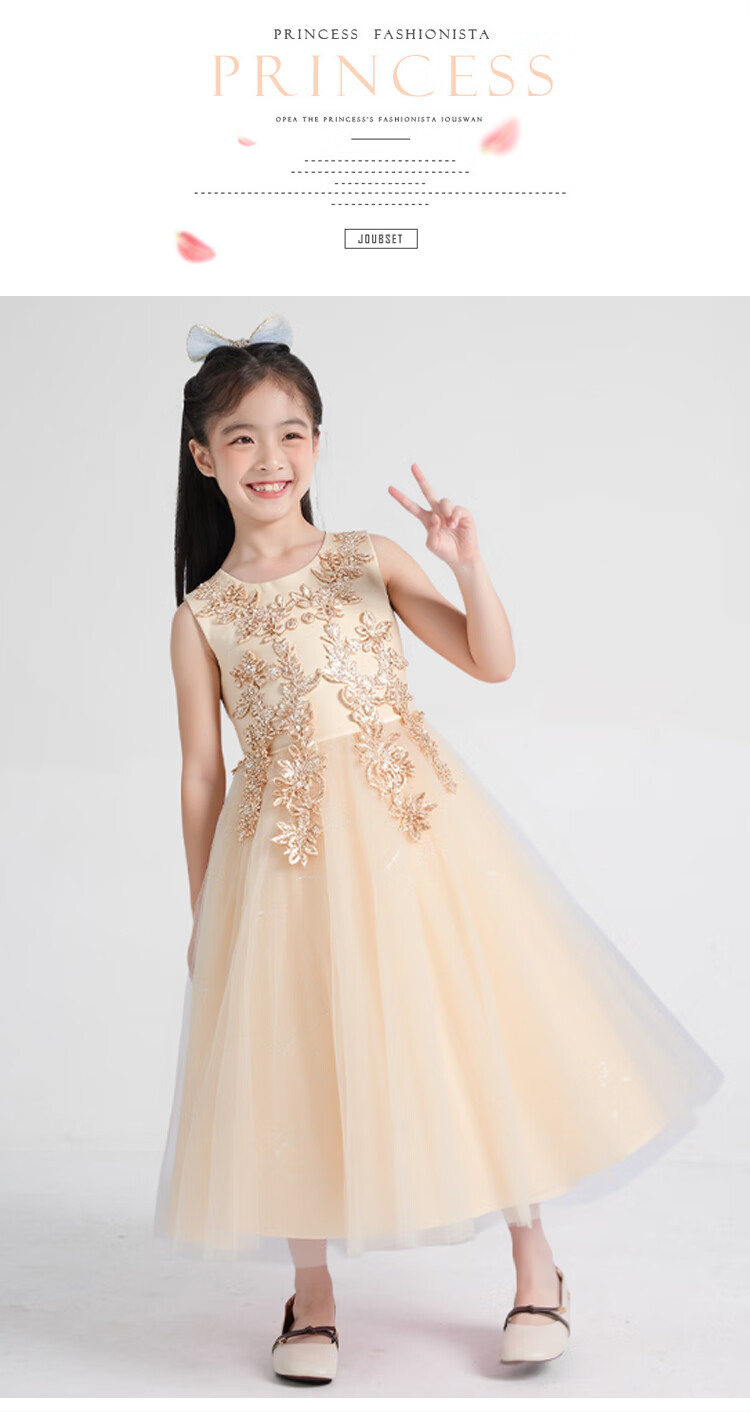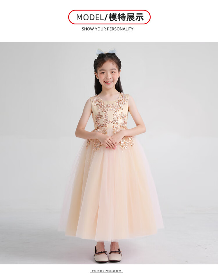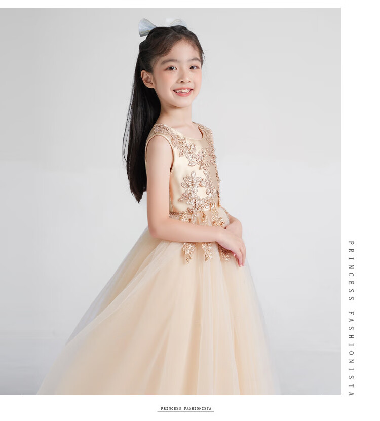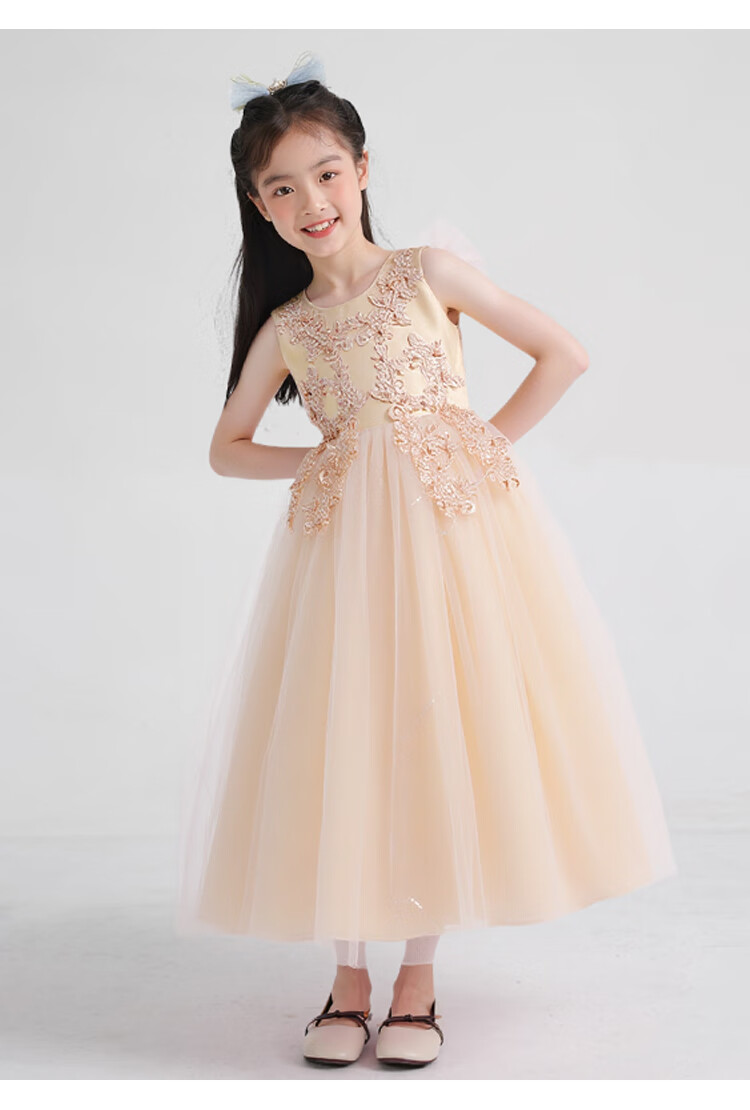 Carrot Beibei Children's Princess Dress Puffy Mesh Dress Skirt Girls Long Wedding Dress Piano Performance Costume Champagne 170