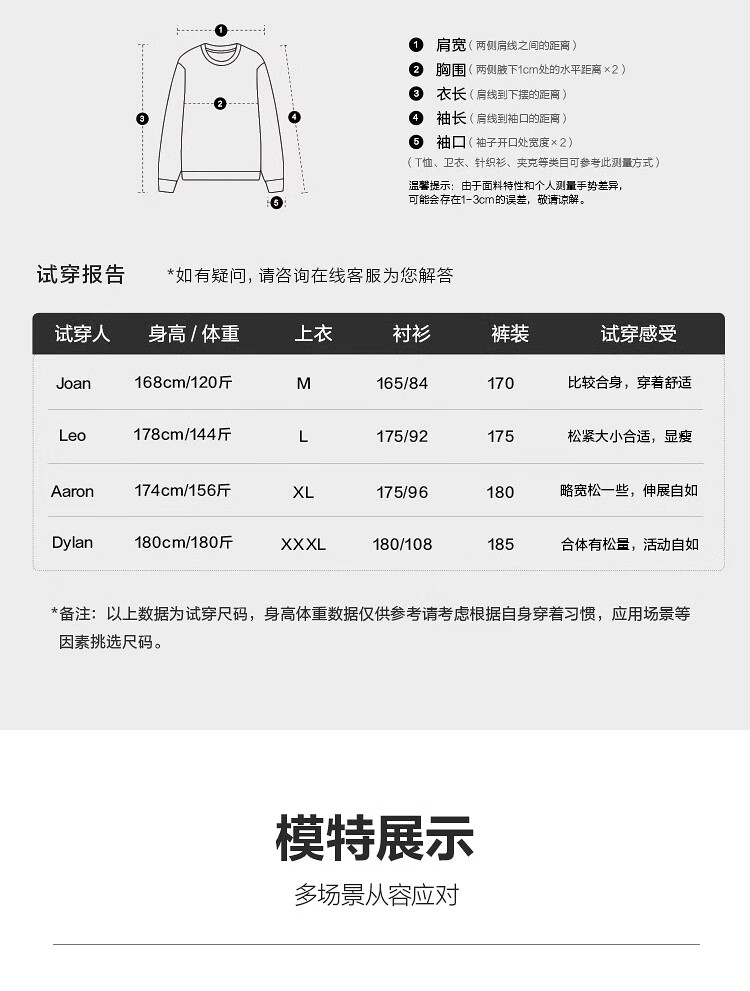 China (cm) 165 / 88-90 170 / 96-98 175 / 108-110 180 / 118-122 185 / 126-130
