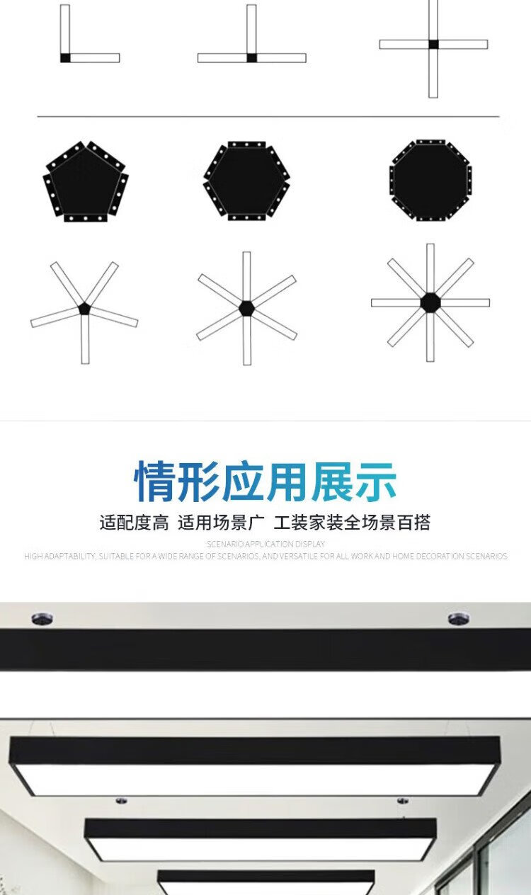 Beigong Chandelier LED Strip Light 120*30cm Conference Room Office Light Chandelier Light Office Building Shopping Mall Commercial Lighting White Right Angle 72W