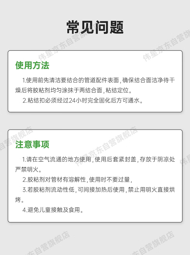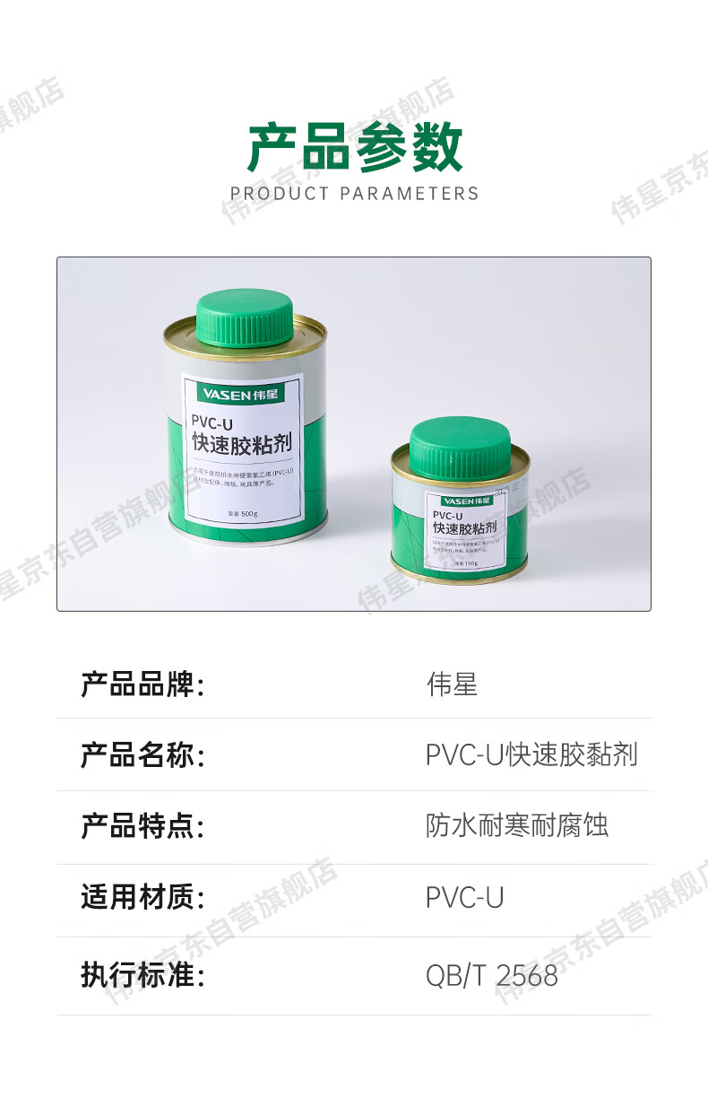 Weixing PVC glue 500g per jar high viscosity adhesive drainage pipe strong quick drying with brush head