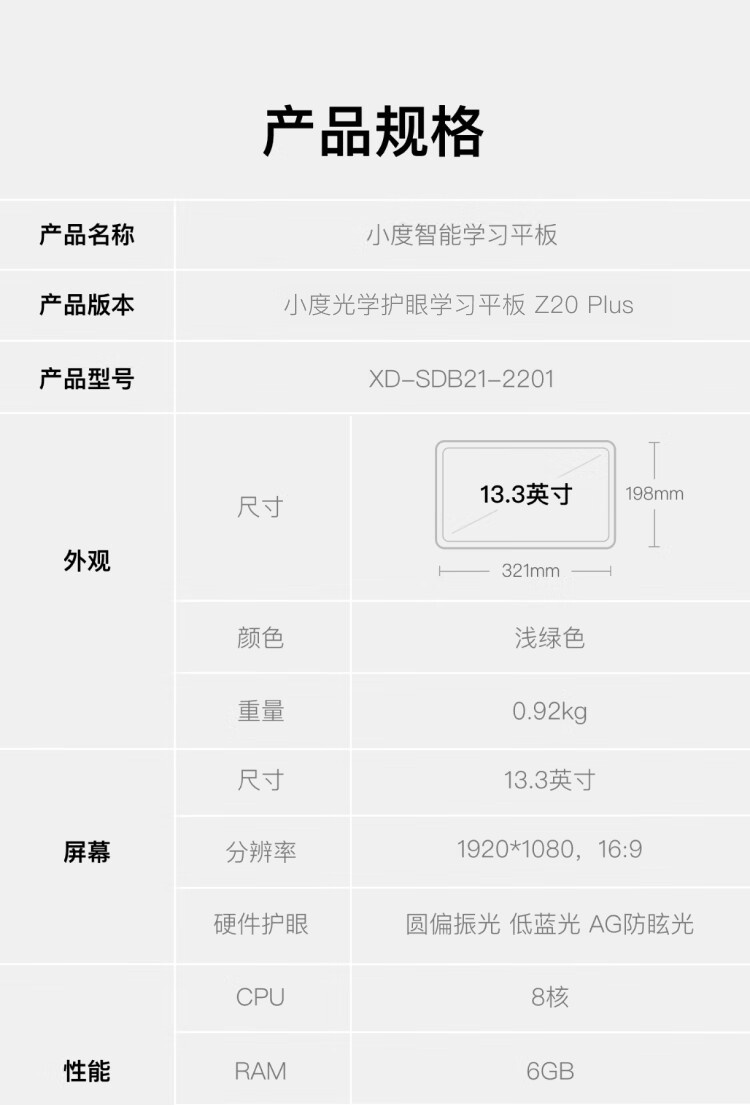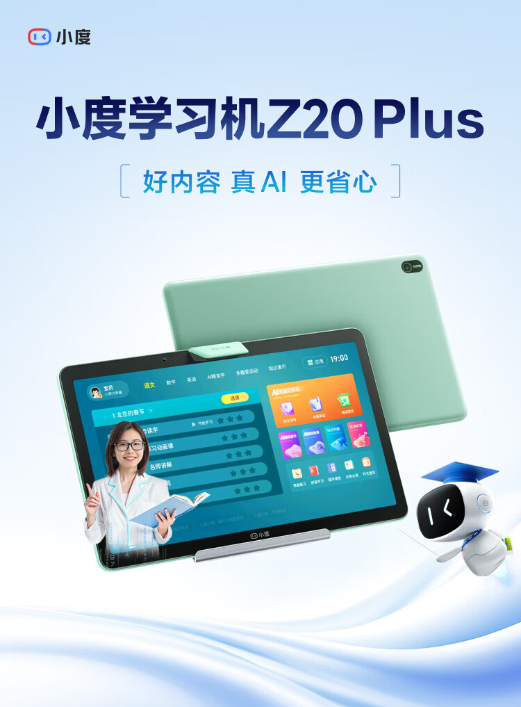 Xiaodu Z20plus learning machine for primary school, middle school and high school students, tablet English and mathematics for all ages, free learning 13.3-inch large screen tablet learning machine (6G+256G)